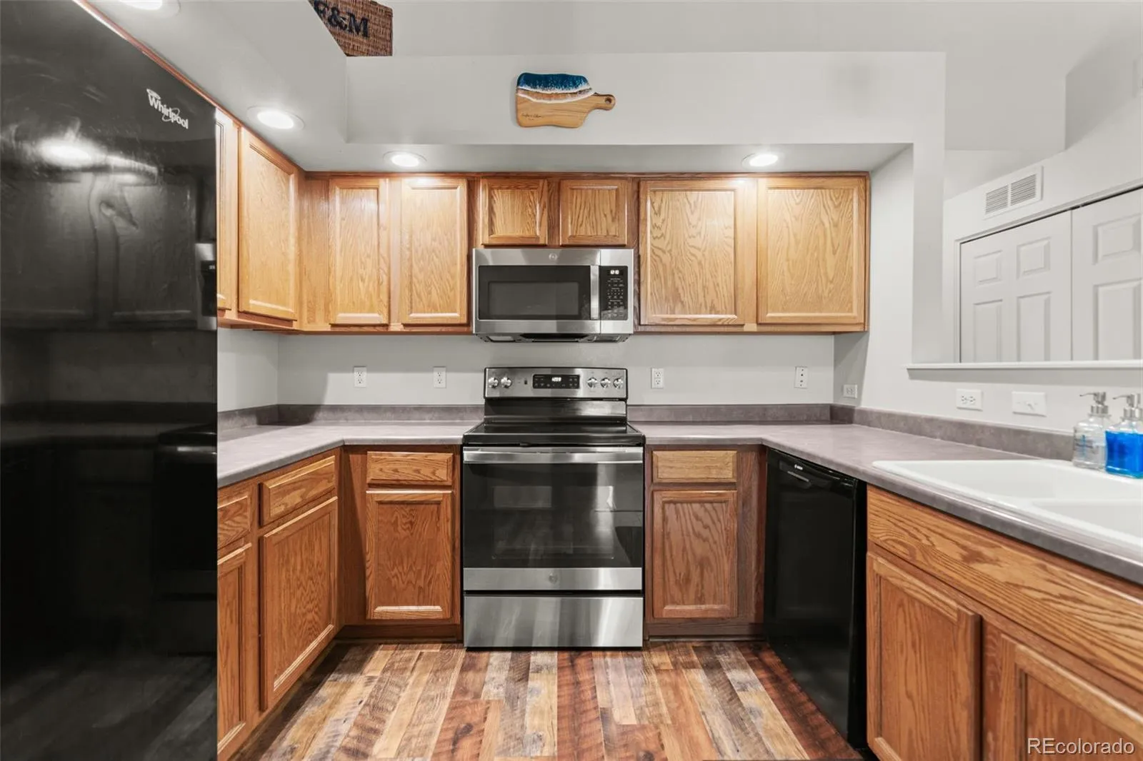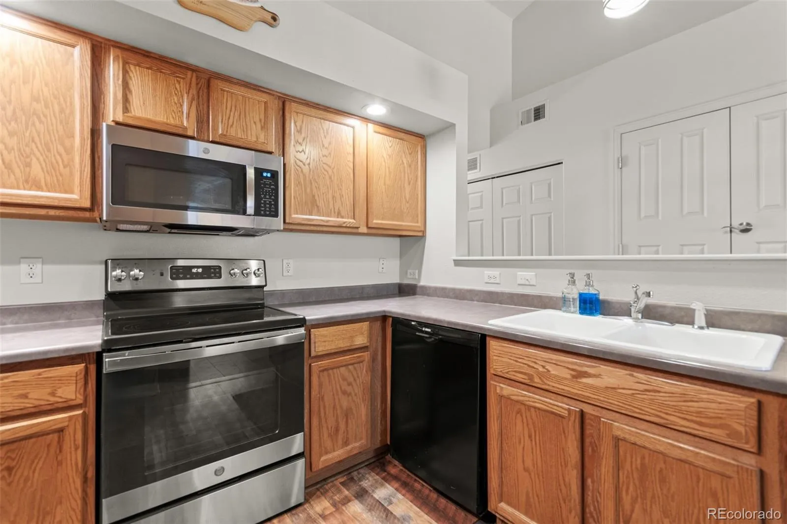 Welcome home to this well-maintained, charming 2-bedroom, 1-bath condo! Perfect for first-time homebuyers or investors! Conveniently located near E-470, offering easy access to shopping, dining, and commuting routes. This turnkey home features an open-concept living and dining area with a functional layout. The living room features newly added dimmable track lighting (2025), creating a cozy, modern space for relaxing or entertaining. Enjoy brand new LVP flooring (2024) in the entry, kitchen, and bedroom, plus a new range and microwave (2023), new roof (2023), new water heater (2023), new washer and dryer (2022), new dishwasher (2021), and a new air condenser (2021) – all the big-ticket items are taken care of. The downstairs bedroom is spacious and bright, while the second bedroom upstairs is ideal for a home office, guest room, or flex space. Enjoy low maintenance living with great community amenities including an outdoor pool, gazebo, and clubhouse. This location puts every need within reach. Don’t miss this move-in ready opportunity for affordable comfort and convenience!