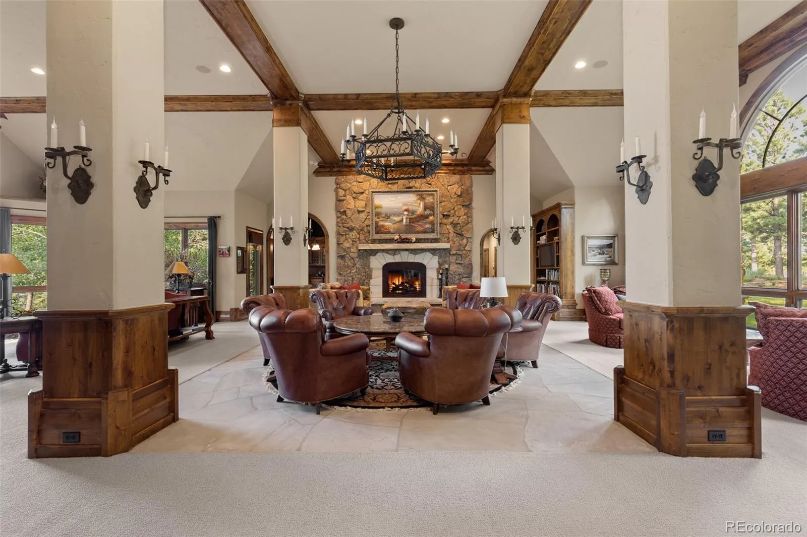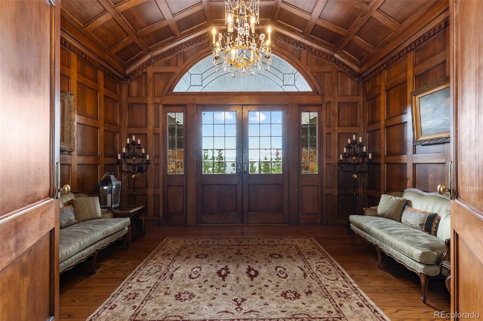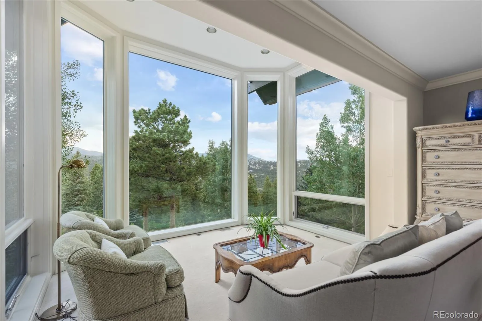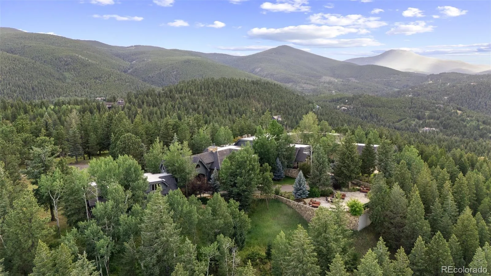 Perched atop two lots comprising 14.5 acres on the pinnacle of Soda Creek, 1275 Silver Tip Lane is the quintessential Colorado property. It offers the utmost in privacy and seclusion – an estate surrounded by mature foliage, bands of aspens and towering pines. Easy access to downtown Evergreen, an hour to top ski resorts or DIA and only 30 minutes to downtown Denver make this retreat ideal for those seeking all that Colorado has to offer. Ten private patios, tiered terraces, gas fire pit and fireplaces, an outdoor bbq and bar, and two fully fenced acres all offer views that are magnificent and seemingly endless. The home’s exquisite craftsmanship and unique features are unparalleled and inimitable – handcrafted pecan wood is a marvel, an indoor swimming pool and spa, full-sized tennis court with basketball hoop and viewing deck, classic bar with temperature-controlled wine cellar, home theater, gym, indoor water feature with waterfalls…the list goes on. The grand staircase in the great room leads to the primary suite, positioned to offer some of the best views on the property from the private balcony or sitting area with floor to ceiling windows. Relaxation is top of mind while soaking in the tub watching the sunset. Three additional bedrooms offer similar comforts, each with its own 5-piece ensuite bathroom, walk in closet, mountain views and private patio. A guest suite is a haven of its own, providing accommodations such as a full bathroom, sitting area, and private patio. The kitchen’s limestone counters are illuminated by a glass atrium above. Two sinks, a professional grade La Cornue range, extra spacious paneled fridge and freezer, a walk-through pantry, and large island add ease and elegance to daily life. Additional flex spaces offer room for work, leisure or anything in between. This property delivers in every realm and will impress even the most discerning buyers.