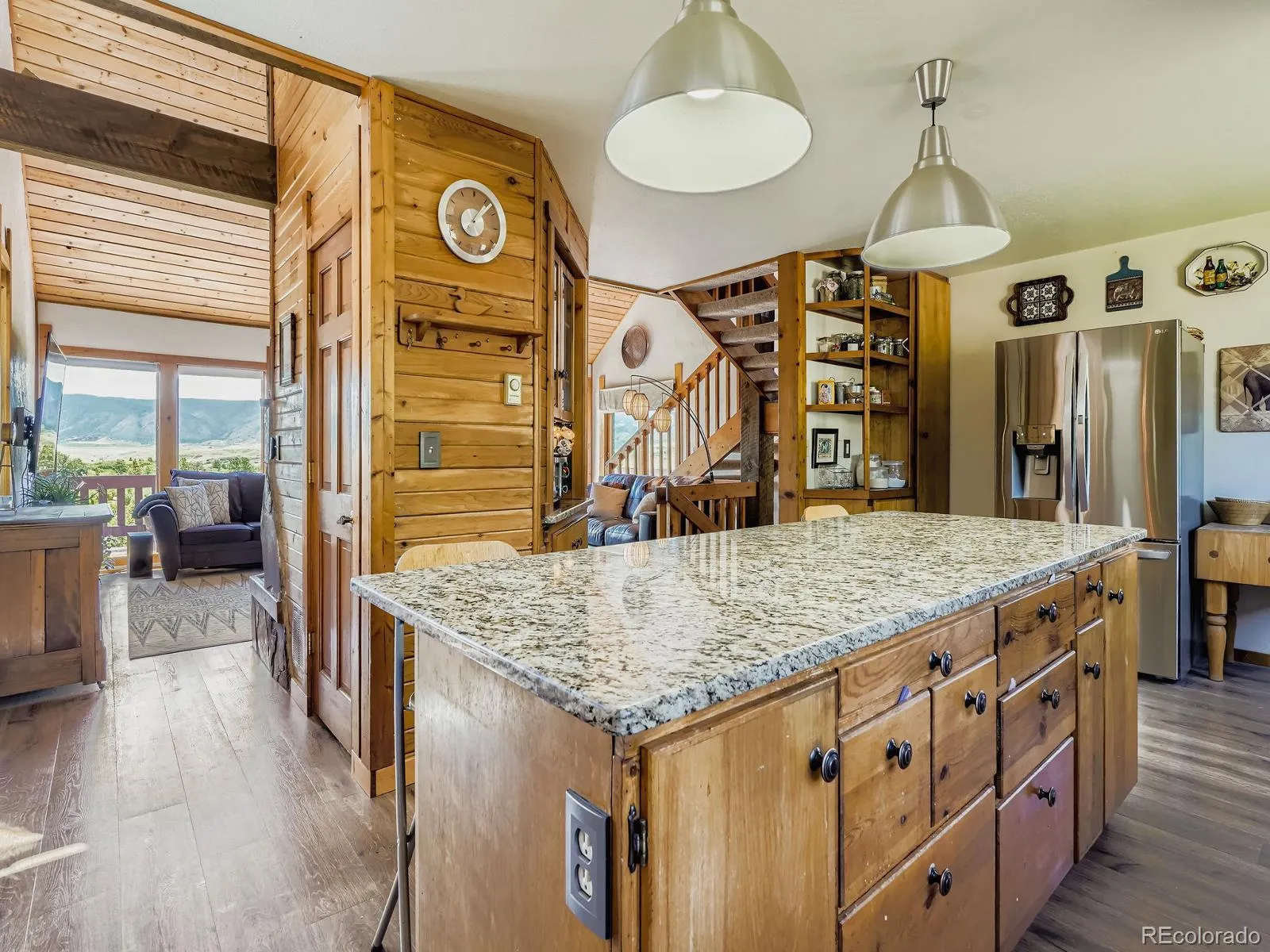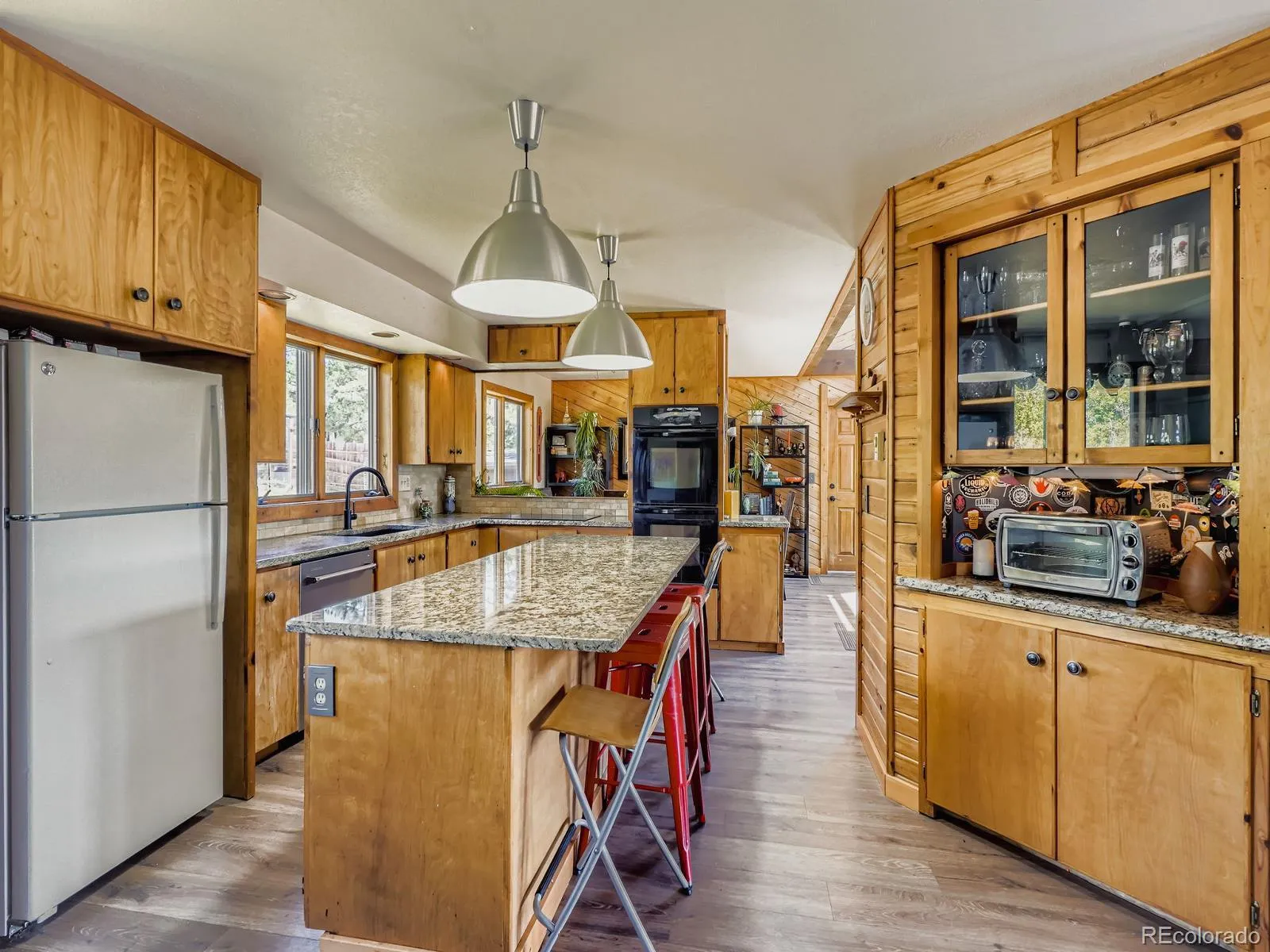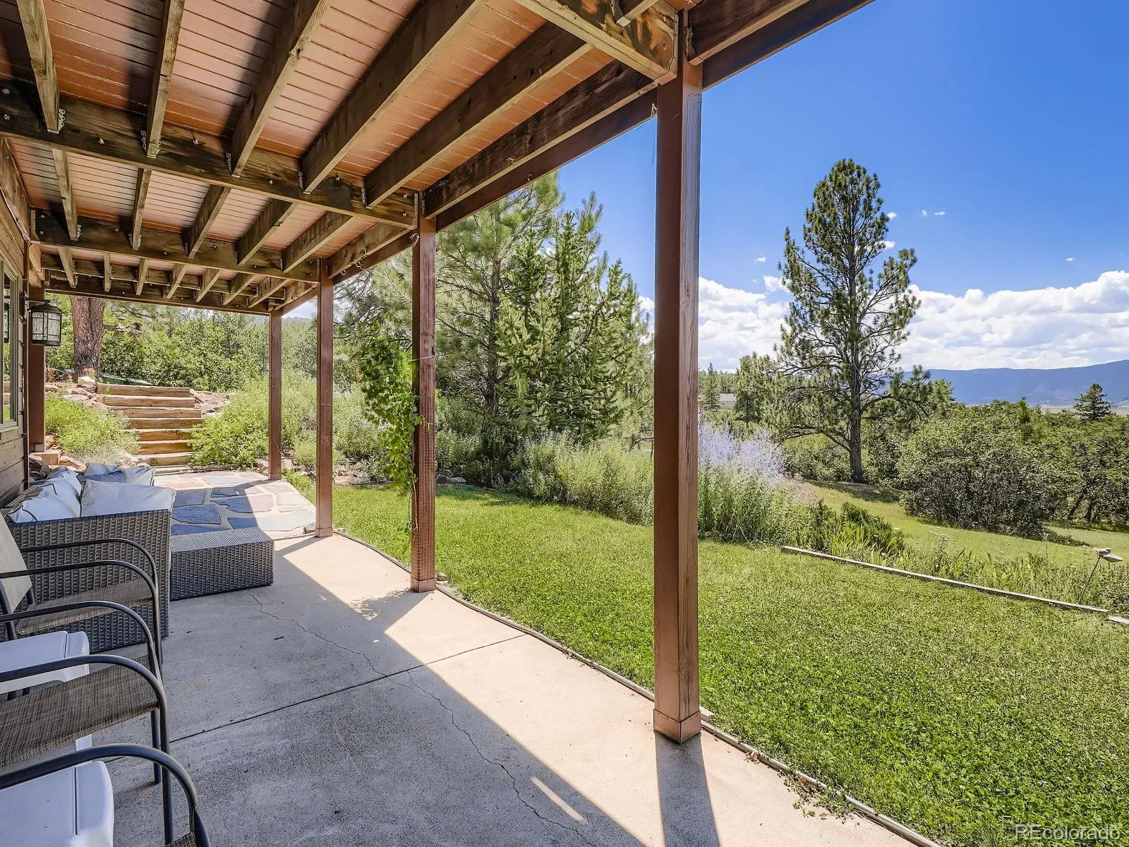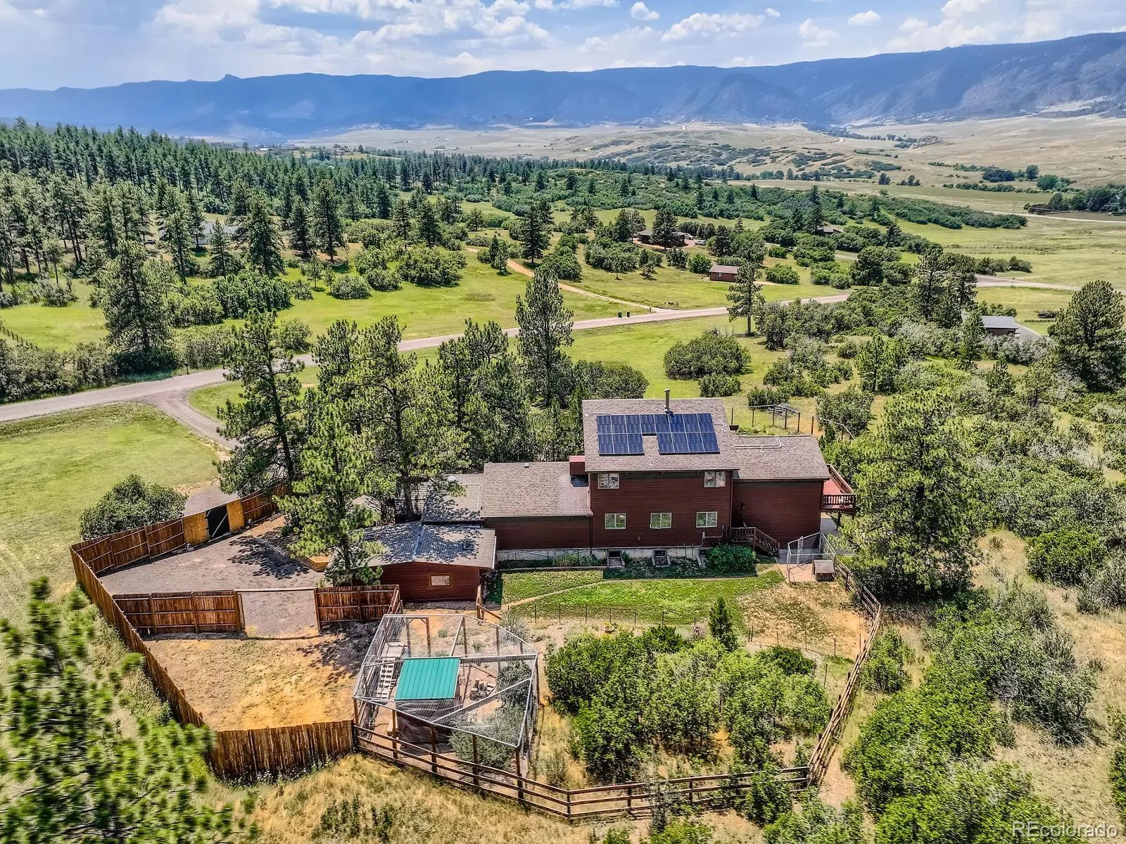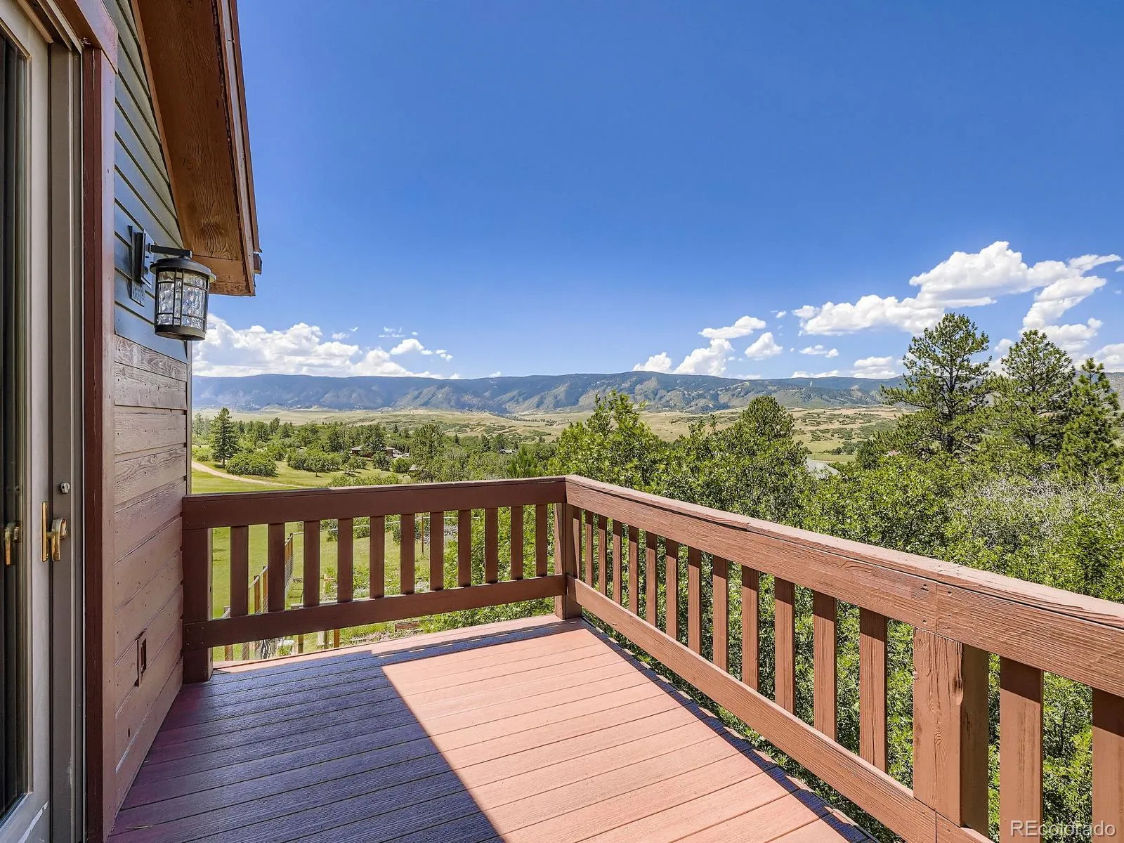Experience the beauty of Colorado living at its finest with this unique custom mountain home, just 20 minutes from Castle Rock. Nestled on 5.3 acres, this multi-level home features 4 bedrooms, a loft, and 4 bathrooms. The open floor plan invites you into the great room, where breathtaking mountain and valley views await, complemented by a two-story stone wood fireplace and charming tongue-and-groove pine accents. The updated kitchen boasts a large granite island, double ovens, and slab granite counters. Adjacent is a spacious dining room with a convenient pass-through to the kitchen. Unwind in the primary suite, complete with a private deck perfect for morning coffee or yoga. Additional highlights include two secondary bedrooms, a versatile loft space – perfect for office or library, and a finished walk-out basement with a family room, bedroom, kitchenette, and ¾ bath. Enjoy the outdoors with fenced areas for pets, gardens, and a chicken coop which includes the chickens. An attached two-car garage and a 1085 square foot multi-use addition provide ample space for all your needs. Plus, benefit from a $70,000 solar system fully paid by the seller at closing.