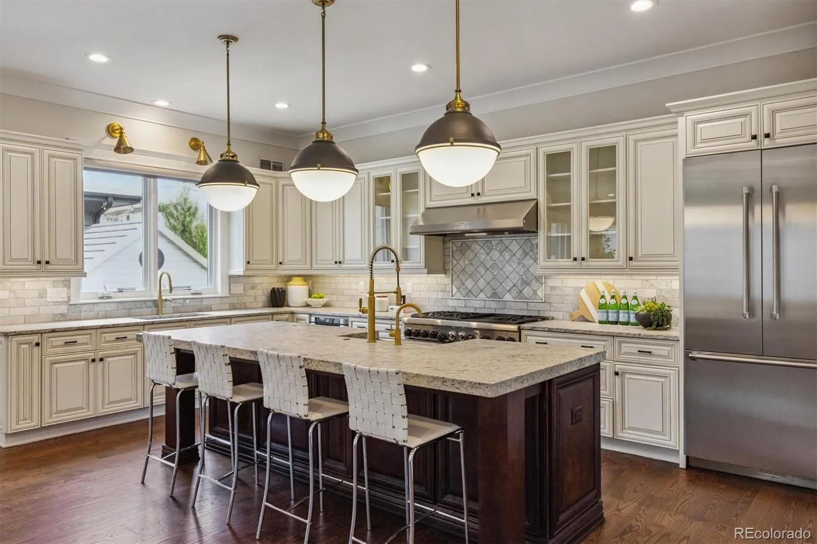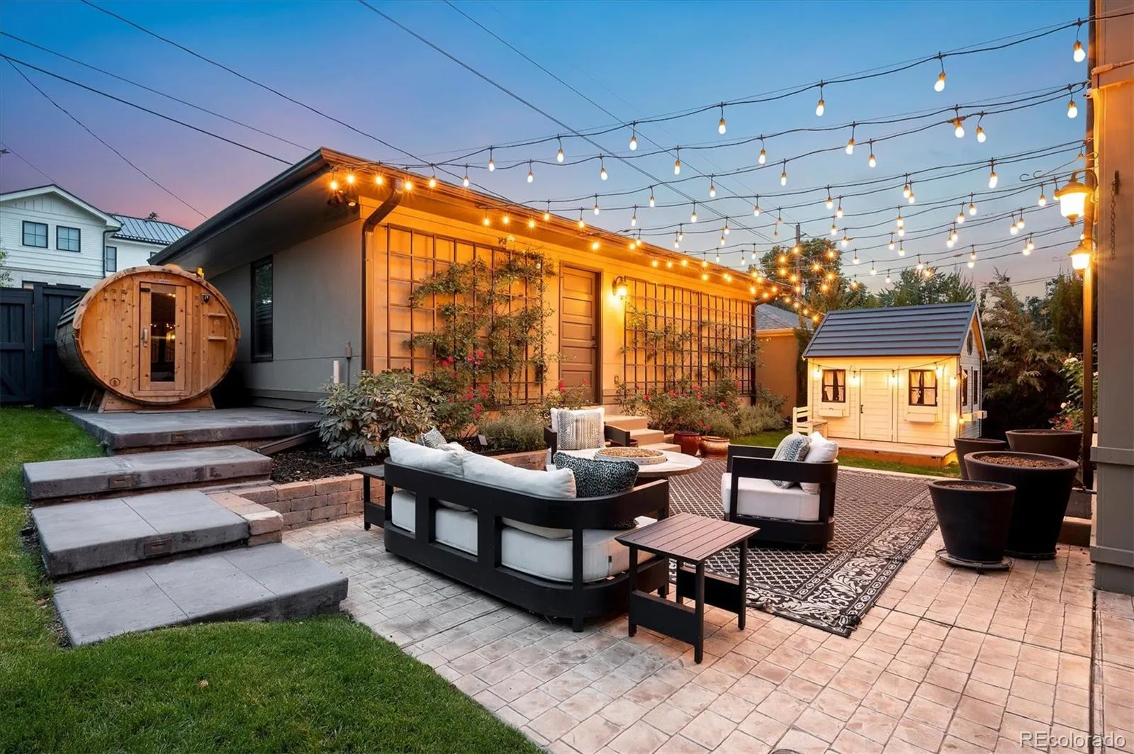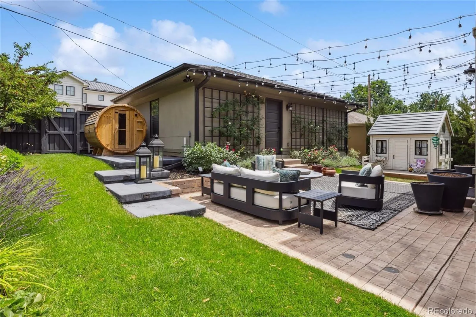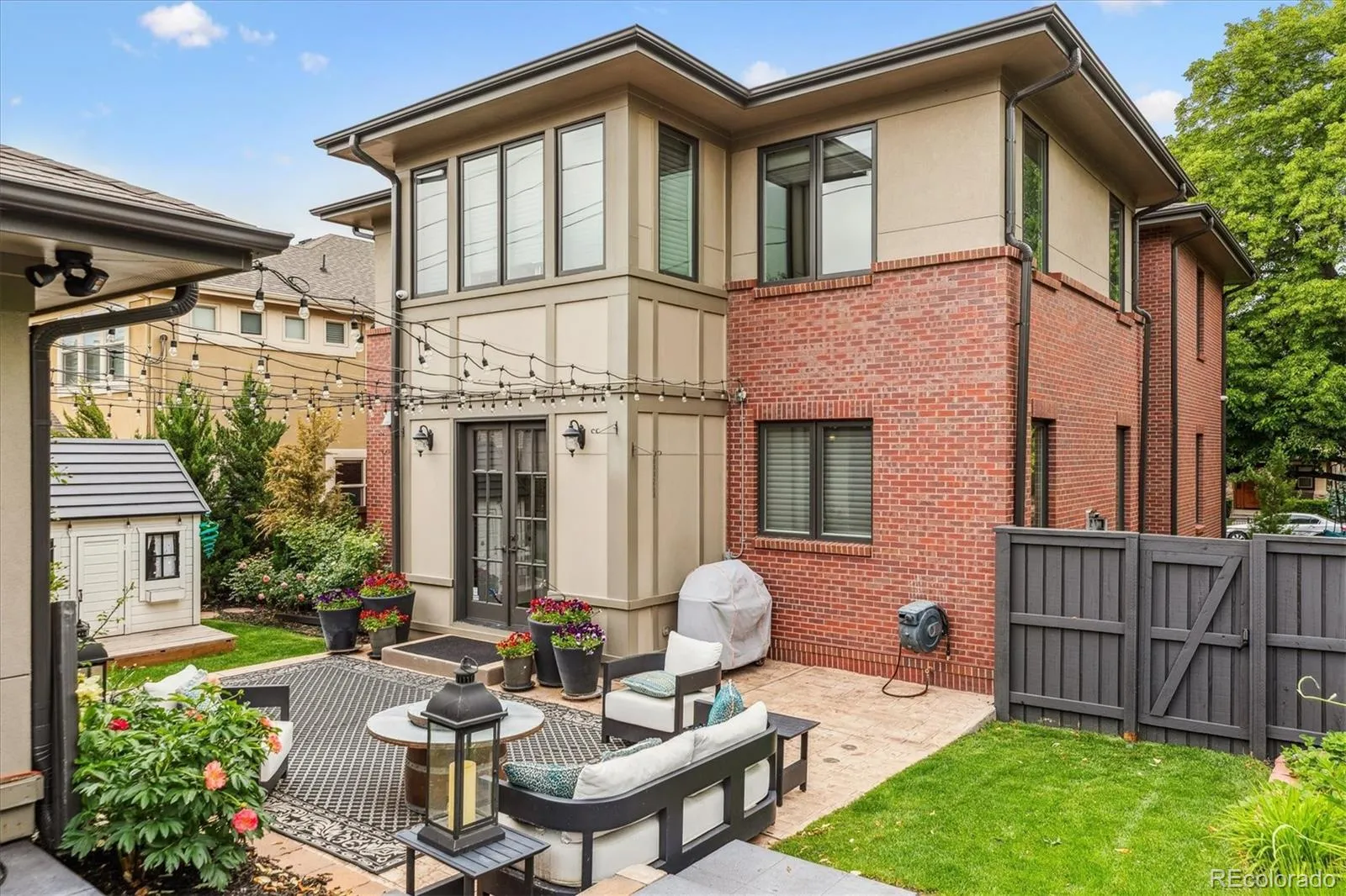 Situated on a spacious corner lot in the coveted Cory-Merrill neighborhood, this stunning 6-bed, 5-bath custom home blends timeless design with upscale finishes and thoughtful upgrades throughout. With soaring ceilings, abundant natural light, and seamless indoor-outdoor flow, the open-concept layout is ideal for both everyday living and entertaining. The main level features real hardwood floors, a bright home office (or 6th bedroom), formal dining area, and airy great room with gas fireplace. The designer kitchen is a chef’s dream-complete with Thermador appliances, professional-grade range, oversized island, and new brass fixtures in the kitchen and butler’s pantry. A well-appointed mudroom with built-ins leads to a private backyard oasis featuring a patio with iron trellis, climbing rose garden, landscape lighting, pro-installed string lights, 7 irrigated raised garden beds, custom playhouse, children’s strawberry patch & luxurious Sisu sauna (under 1 year old), plus hookups for a cold plunge. Upstairs, the serene primary suite offers a cozy sitting area, large walk-in closet w/ custom organization, and spa-like bath. Two additional en-suite bedrooms provide comfort and privacy for guests. The finished basement offers flexible space with a $60K Barco theater-grade projector, 108″ screen, surround sound, wet bar, two additional bedrooms (ideal for a gym or studio), & full bath. Additional highlights include: oversized 3-car garage with Elfa storage system, reverse osmosis and whole-house water filtration/softener, Hunter Douglas blackout shades in upstairs bedrooms, design-grade wallpapers and runners, upgraded gutters, and Deep Sentinel security system. Beautifully landscaped front yard features historic tree, seasonal blooms & over $80K in custom brick & ironwork fencing for enhanced privacy and curb appeal. Unbeatable location-steps to Cory-Merrill schools, local parks & minutes from Wash Park, Bonnie Brae, DU, light rail, I-25 & Colorado Blvd dining/shopping.
