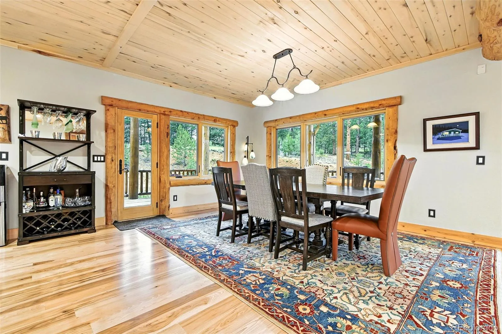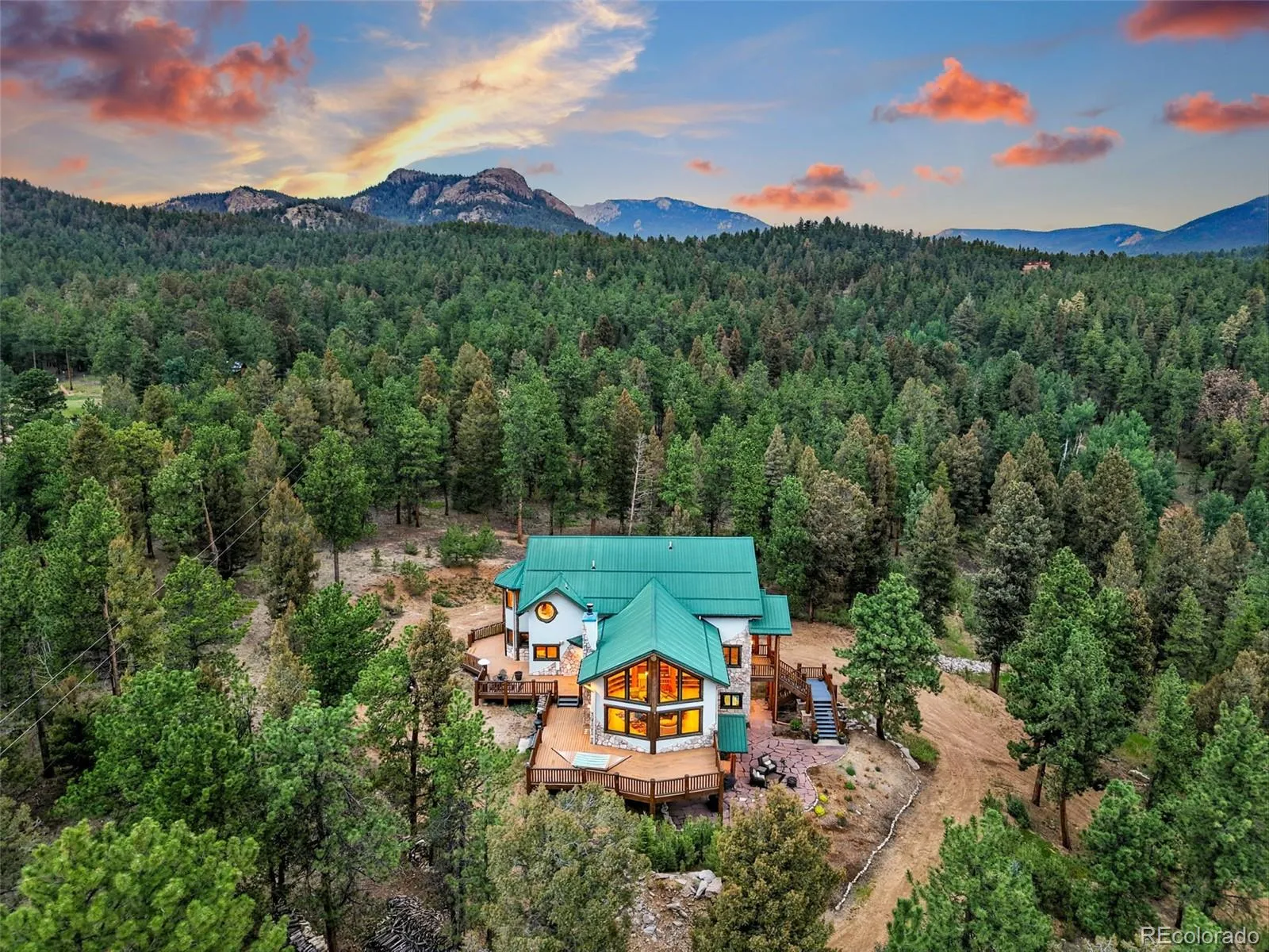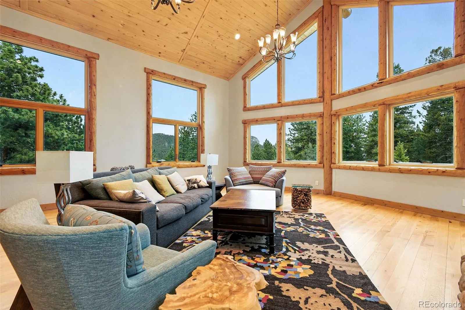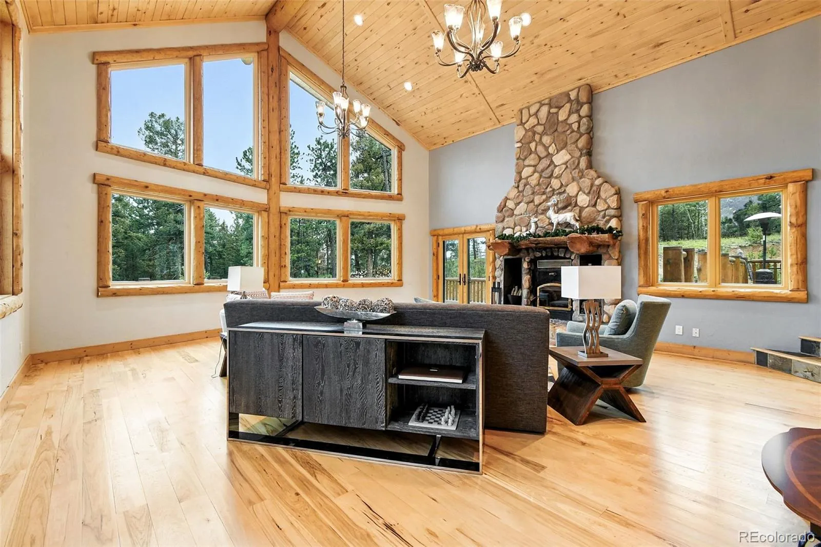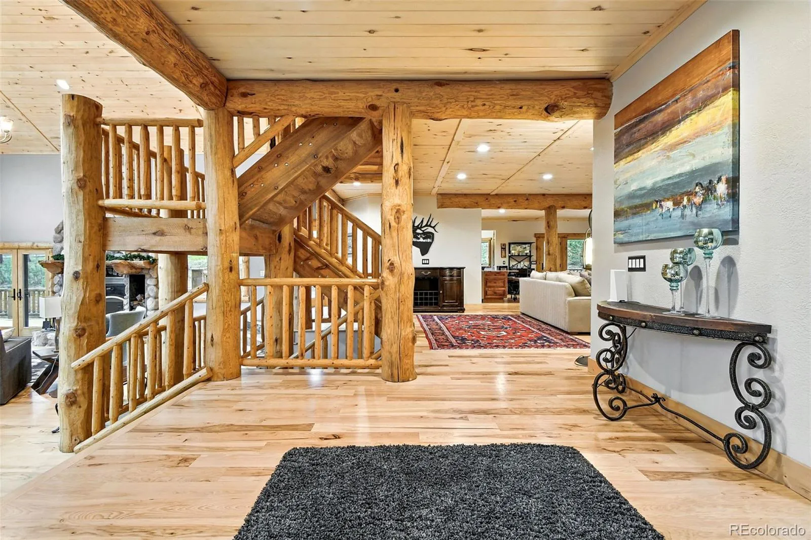 Live the Colorado dream in this stunning mountain retreat featuring rich log accents, custom wood trim, and a wall of windows that fills the vaulted living room with natural light. Cozy up by the moss rock fireplace or cook in the well-appointed kitchen with birch cabinets and granite countertops. Hickory floors, slate tile, and in-floor radiant heat add warmth and style. The spacious primary suite offers a luxurious five-piece bath with custom lead glass windows that offer a spectrum of colors to fill your soaking tub and a private 2,400 sf redwood deck for serene mountain views. This is a treed lot that was home to a horse family in the past and has the old stable to refinish or make into a diva den or sweat box sauna. The lower level has plenty of storage, a home gym, and space for a home theatre.