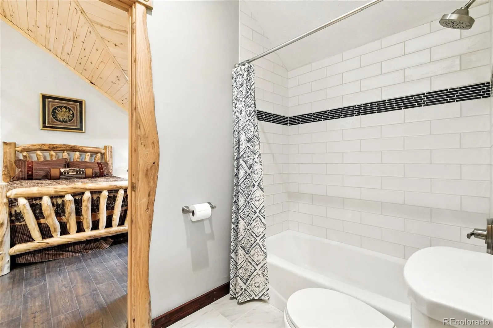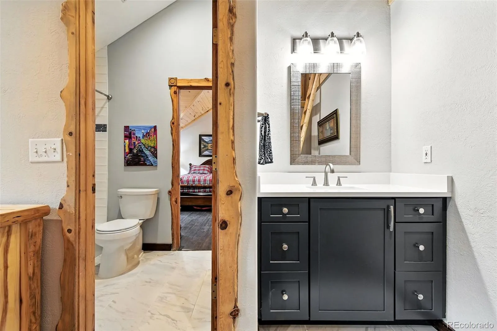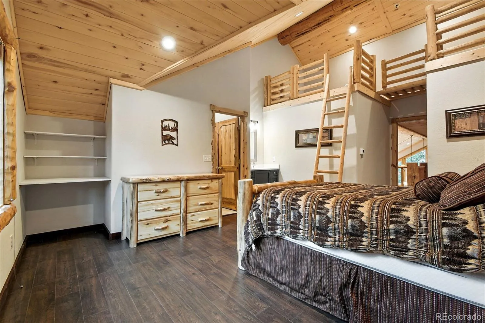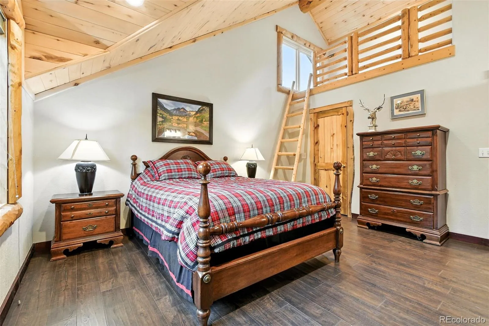 Live the Colorado dream in this stunning mountain retreat featuring rich log accents, custom wood trim, and a wall of windows that fills the vaulted living room with natural light. Cozy up by the moss rock fireplace or cook in the well-appointed kitchen with birch cabinets and granite countertops. Hickory floors, slate tile, and in-floor radiant heat add warmth and style. The spacious primary suite offers a luxurious five-piece bath with custom lead glass windows that offer a spectrum of colors to fill your soaking tub and a private 2,400 sf redwood deck for serene mountain views. This is a treed lot that was home to a horse family in the past and has the old stable to refinish or make into a diva den or sweat box sauna. The lower level has plenty of storage, a home gym, and space for a home theatre.