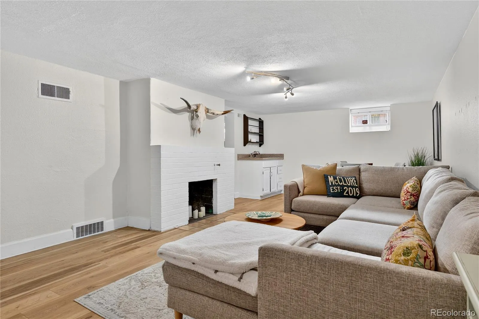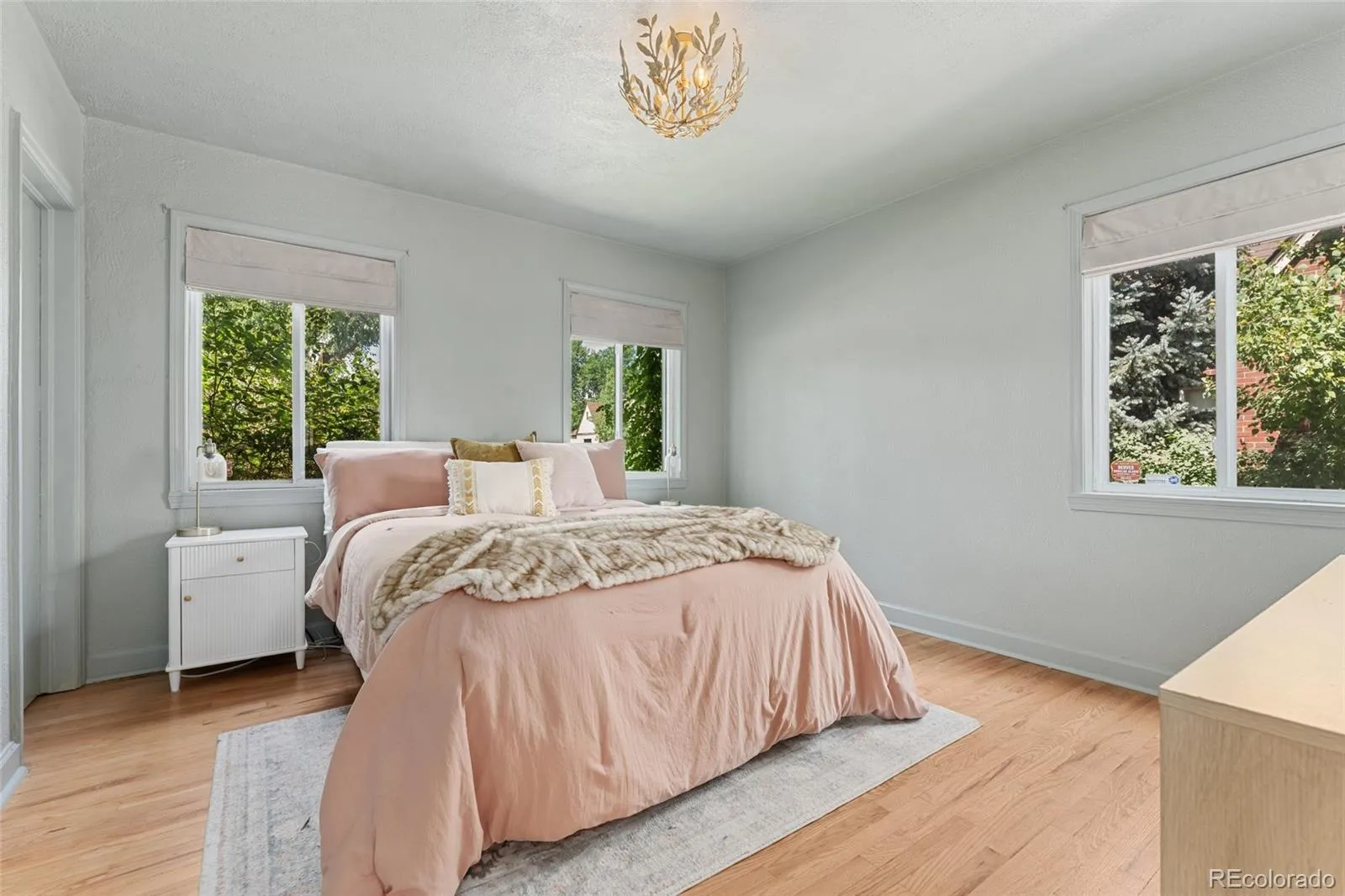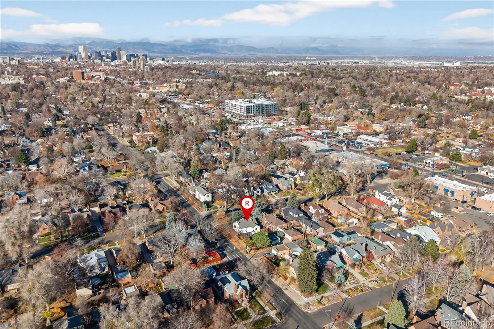 Welcome to this cozy brick ranch home on a spacious corner lot in the highly sought-after Mayfair community, featuring three bedrooms plus a large office that can serve as a fourth bedroom. Fabulous location to be a successful mid-term rental (MTR) through sites such as Airbnb, VRBO, and Furnished Finder. High walk score to a variety of trendy restaurants, Starbucks, King Soopers & Sprouts groceries, and close proximity to Rose Medical Center, medical facilities & office, City Park, and The Denver Zoo! Brand new furnace and kitchen countertops in 2025 and new windows in 2024! Full of charm and character, this 1930s gem has been beautifully updated while retaining its original warmth, offering incredible natural light throughout. Arched openings, cove ceilings, and oak hardwood floors add timeless elegance, while the bright and cheerful chef’s kitchen impresses with stylish finishes, shaker cabinets, stainless appliances with gas range, quartz countertops, subway tile backsplash, and two garden windows above classic glass blocks. A separate dining room creates the perfect space for gatherings. The main level offers two sunny bedrooms. The finished basement expands your living space with a large family room featuring a wet bar and fireplace, a bedroom with a private en-suite bath, a second basement level bedroom or office, generous closet space, and a laundry room. The fully fenced backyard is both peaceful and private, with plenty of room to entertain or simply unwind. Additional recent updates include new basement floors (2022), a remodeled basement bath (2024), new water heater (2025).