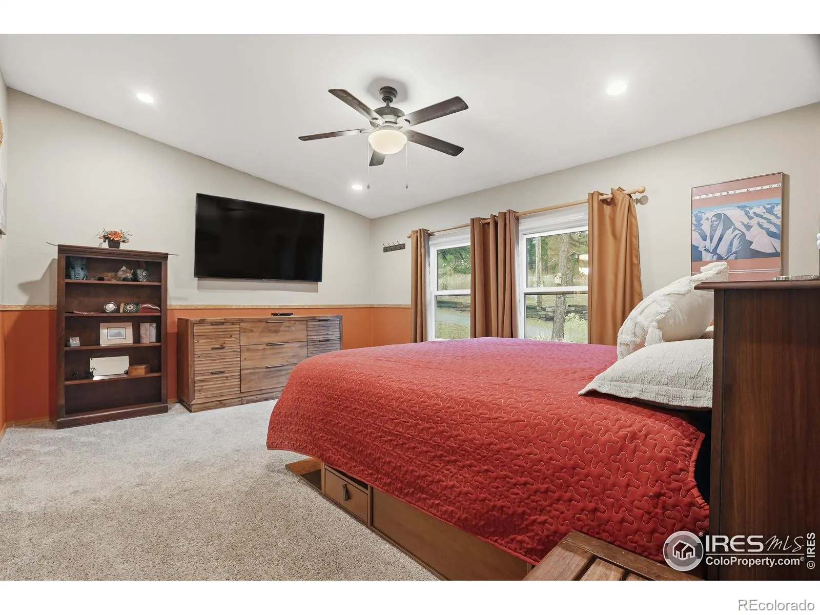HUGE price improvement! Nestled in the popular North Carter Lake Community, walking distance the lake, you will find this large multi-generational home with a walk out basement! This ranch home has 3 LARGE and private primary suites (two with their own living rooms!) and 5 bathrooms! The 5+car heated garage/SHOP, includes a car lift; the tallest garage door is 12 ft. Bring all your toys! The mountain views are amazing! Many updates throughout- very well maintained- you can buy with confidence! You’ll feel secluded yet only 15-20 minutes from Berthoud, Loveland and Longmont! Whole house generator, new windows, trees were just trimmed, new HVAC, newer roofs (House and Garage 2021), very efficient pellet stove and so much more. No HOA or metro tax. Check with the county about short-term rental possibilities. Large 12X10 shed and 12X8 loafing shed in the back. This is a must see!
