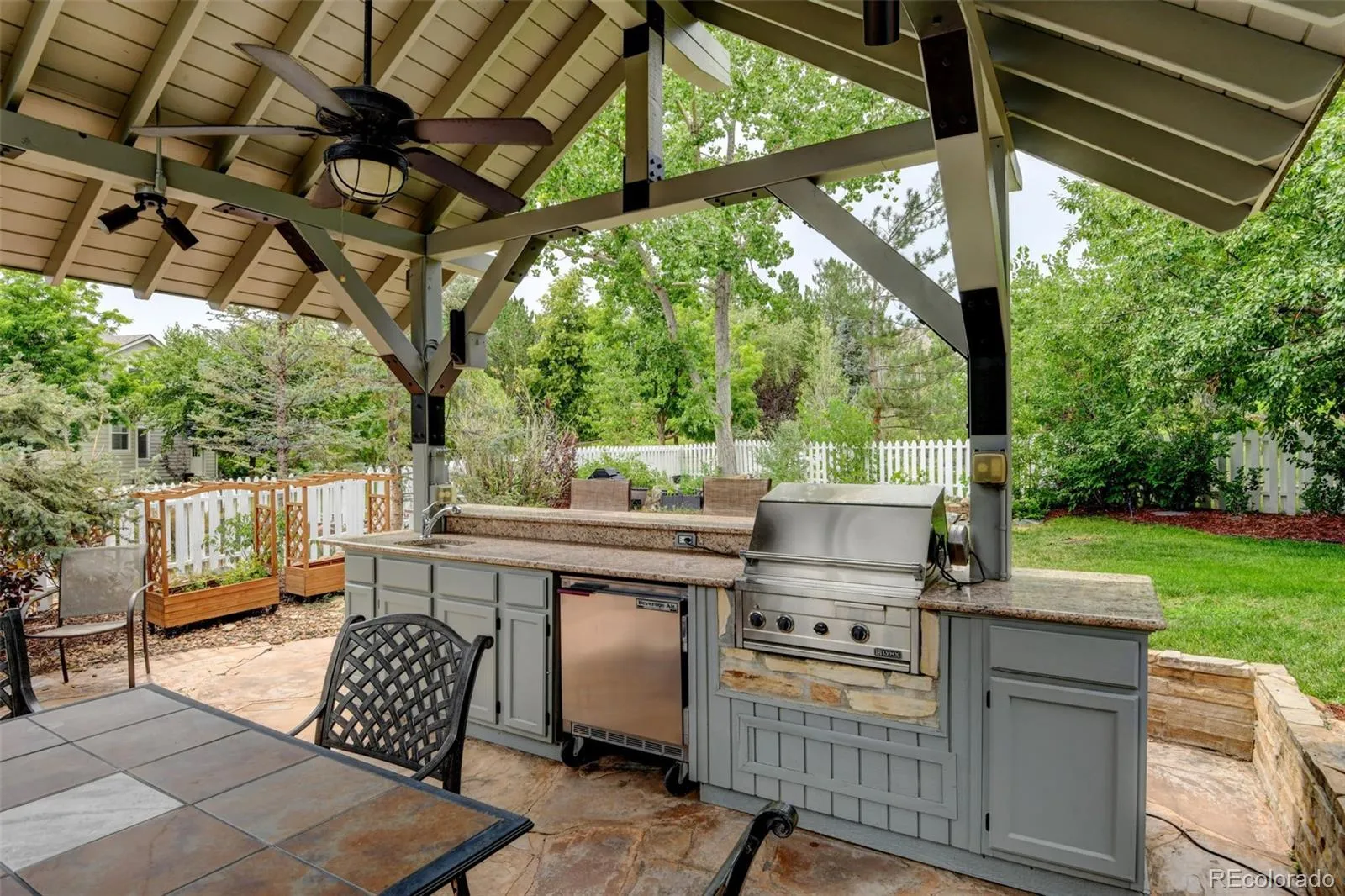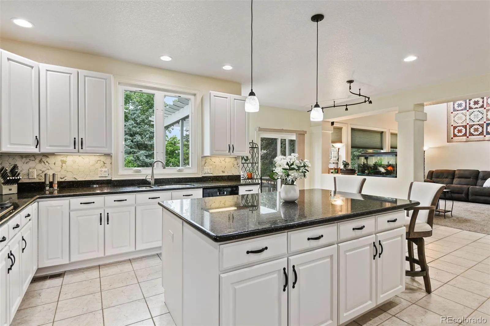 Set on a spacious cul-de-sac lot in the highly desirable Greenfield neighborhood, this home delivers incredible VALUE with over 4,000 finished square feet and room for everyone to spread out. The OPEN LAYOUT makes a great first impression with a sweeping curved staircase and elegant living and dining rooms, while the main-floor bedroom or office adds everyday flexibility. * The remodeled KITCHEN shines with white cabinetry, designer backsplash, black hardware, and tons of storage, and it flows seamlessly into the LARGE FAMILY ROOM with soaring ceilings and walls of windows overlooking the park-like backyard. Upstairs, you’ll love the oversized LOFT, perfect for a second living area, homework zone, or play space, plus three bedrooms including a huge luxurious primary suite with double-door entry, custom built-ins, and a refreshed five-piece bath. * Even more space waits in the FINISHED BASEMENT with a wet bar and plenty of room for movies, games, fitness, or hobbies. * Outside is an entertainer’s dream: OUTDOOR KITCHEN, multiple patios, hot tub, tranquil water feature, expansive lawn, and a backyard SHED for extra storage. The 3-CAR GARAGE even includes a 220 EV outlet for added convenience. * With its fresh updates, generous square footage, large private lot, and prime location, this beautiful home blends comfort, flexibility, and Colorado living, at a fantastic value for this size.