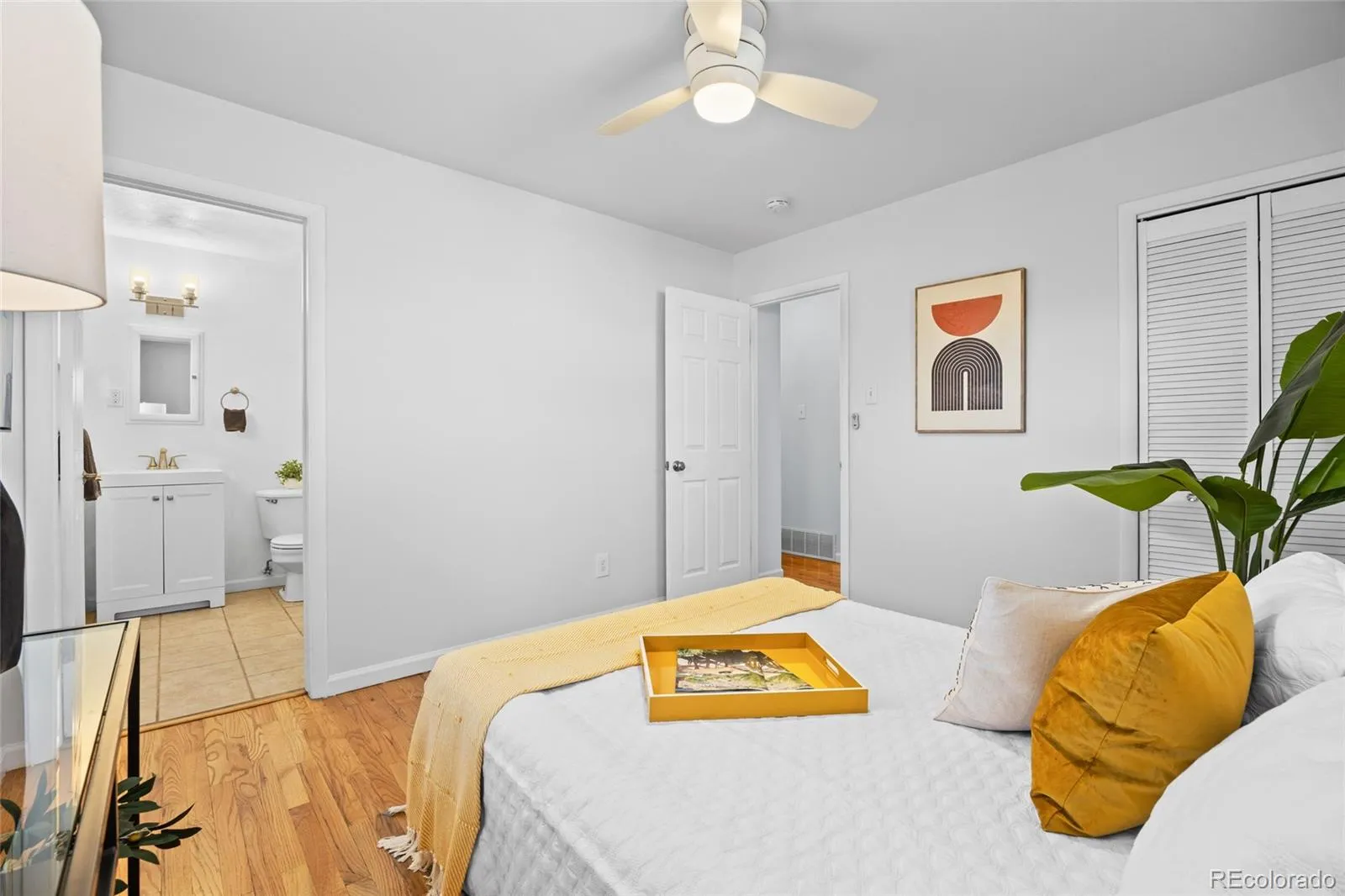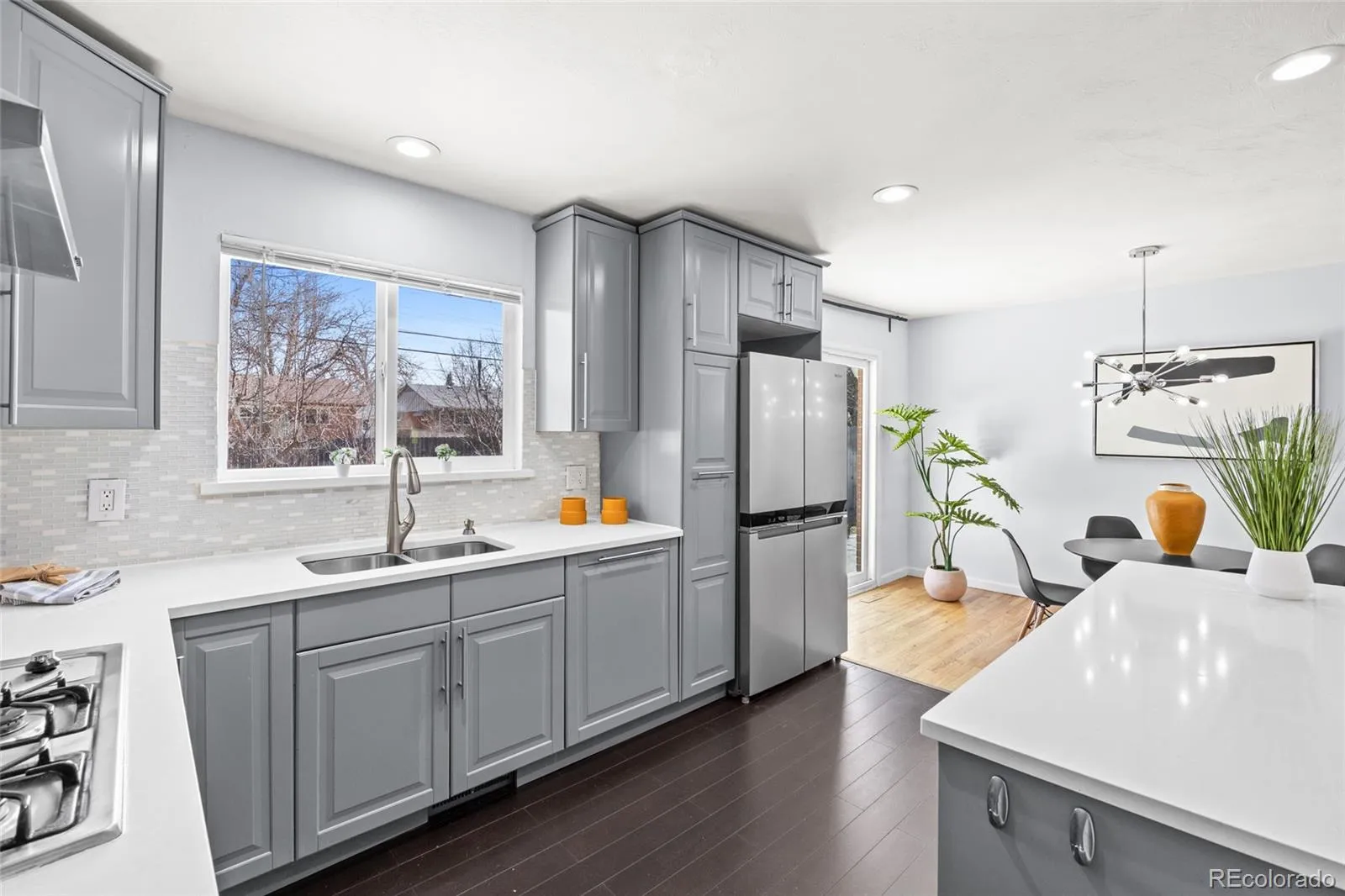 Welcome home to this amazing, mid-century inspired, 4-bedroom, 3-bath ranch-style home is nestled on a tree-lined street in Virginia Vale. Updated throughout, this light and bright home features an updated kitchen with quartz countertops, stainless steel appliances, cork flooring and ample cabinetry, all flowing into a spacious living area with hardwood floors and a spacious dining area that opens to the wonderful, enormous concrete patio and outdoor space. The main floor offers three bedrooms, including a primary suite with 3/4 bath, two generous sized secondary bedrooms and a remodeled full hall bath. The lower level offers a fully finished basement including an expansive, secondary, primary suite, complete with a luxurious five-piece spa-like bath and a large walk-in closet—perfect for guests or multi-generational living, bar area and additional rec room. Step outside to a large backyard adorned with numerous fruit trees with an expansive patio ideal for entertaining and area for a playset or garden beds. You can also enjoy sipping your morning coffee on the front patio and enjoy the beautiful flower beds. Conveniently located just minutes from the shopping, dining, and entertainment of Cherry Creek and also Downtown Denver. With a one-car oversized, attached garage and a location that can’t be beat, this home blends vintage charm with modern living in one of Denver’s amazing neighborhoods. All appliances are going to stay including the washer and dryer.