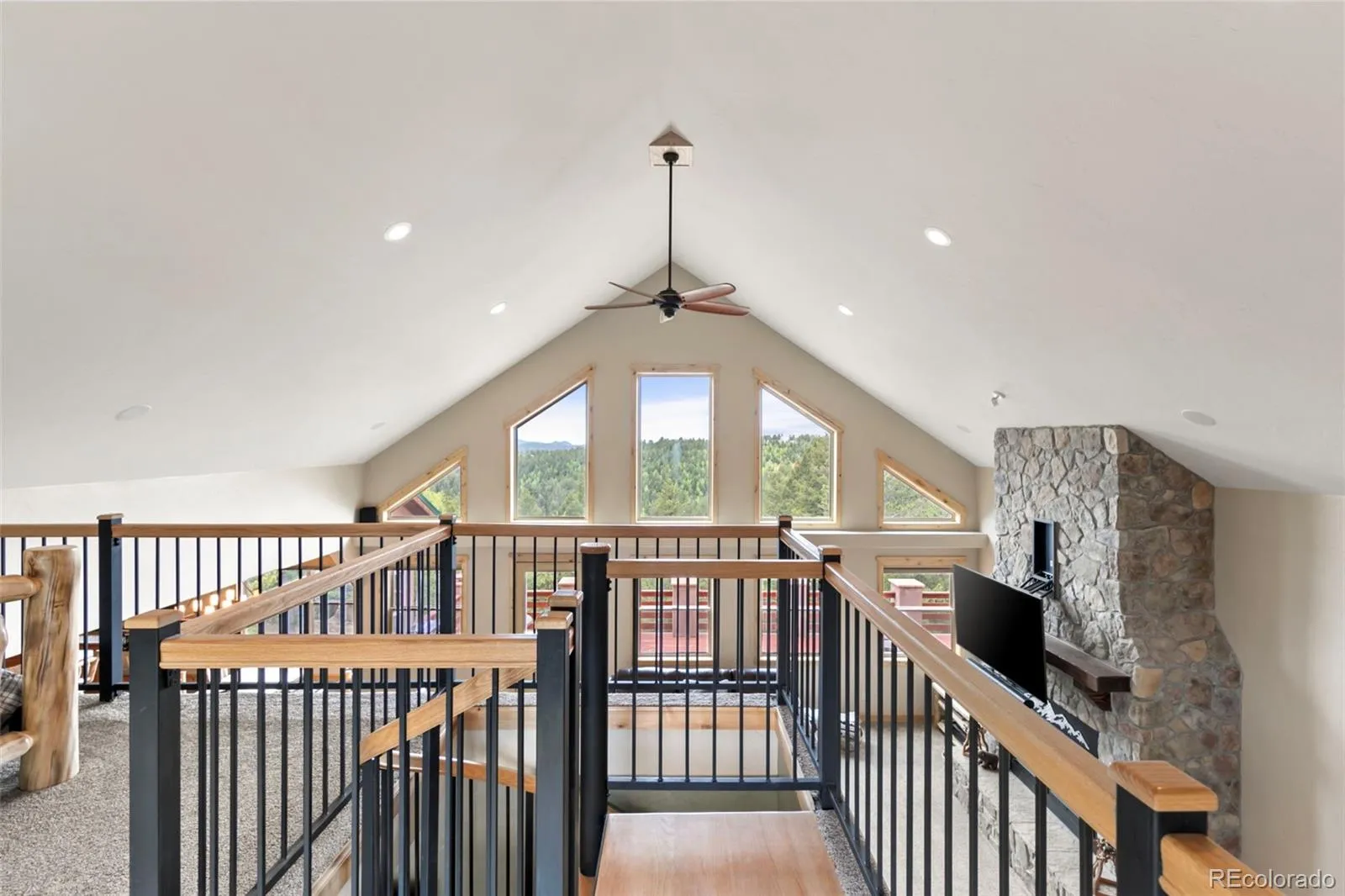 Discover your dream retreat just minutes from Pikes Peak, Cripple Creek, Mueller State Park, and the charming town of Woodland Park. Set on over 35 acres of scenic beauty, this exceptional home offers more than 8,000 square feet of thoughtfully designed living space, where mountain views stretch across nearly every window. Built in 2014, this five-bedroom, six-bathroom residence combines comfort, luxury, and functionality. The lower level offers a guest-friendly layout with each bedroom featuring its own private bath—ideal for visitors or extended family. The primary suite is a peaceful haven, complete with a cozy gas fireplace—perfect for quiet evenings in. For entertainment and relaxation, enjoy a state-of-the-art theater room, a quiet sitting room, and a spacious game room. One of the home’s standout features is the expansive bonus room with a full kitchen and loft. Whether you’re dreaming of a guest suite, creative studio, or multi-generational living area—this flexible space can do it all.