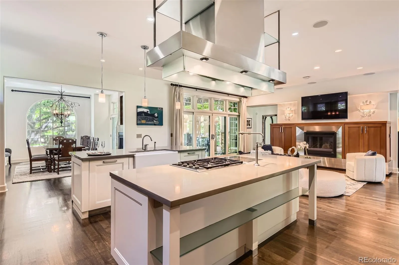 finishes that set the tone for the rest of this remarkable home. The gourmet kitchen is a chef’s dream with Wolf and SubZero appliances, dual ovens, induction cooktops, two dishwashers, a wine fridge, a farmhouse sink and a convenient
