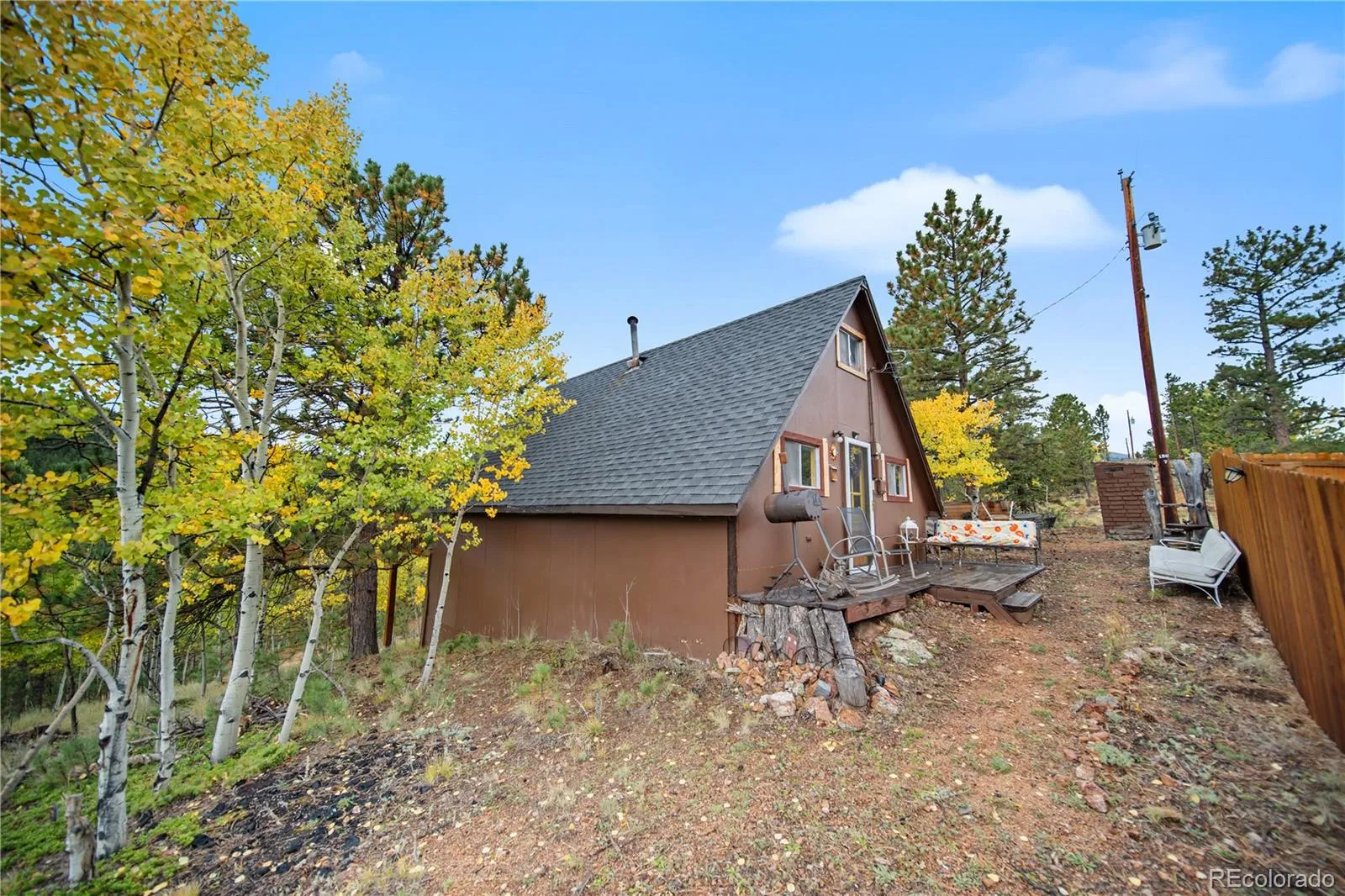 Amazing Potential to stay in the A-frame Cabin and build dream home on the adjacent 3 lots for a total of .76 acres! Or enjoy as a mountain retreat – or – year round access also gives you the option to stay here full time. This is 4 lots being sold as 1. Unobstructed views from the top of the property where you can build your home surrounded by trees. Or enjoy the views from the current deck! Harris Park has views of Pike National Forest and Mt. Evans Wilderness Area.
