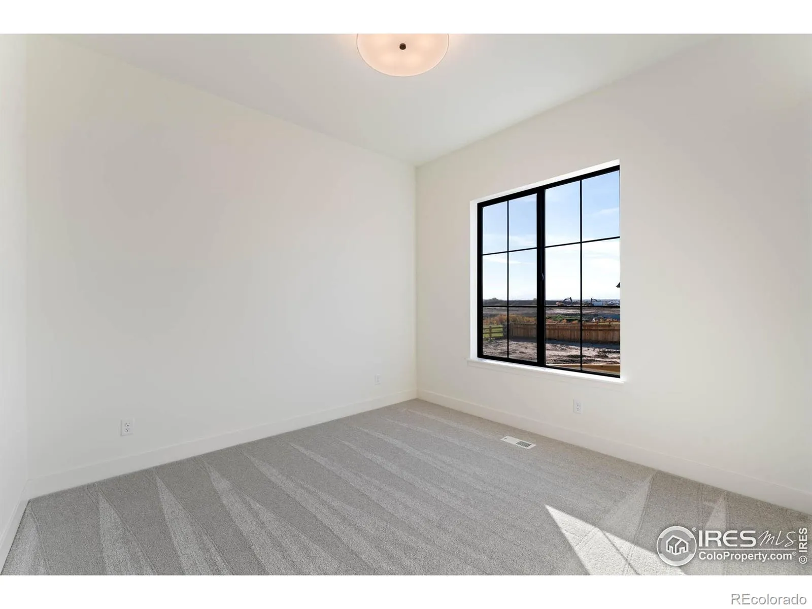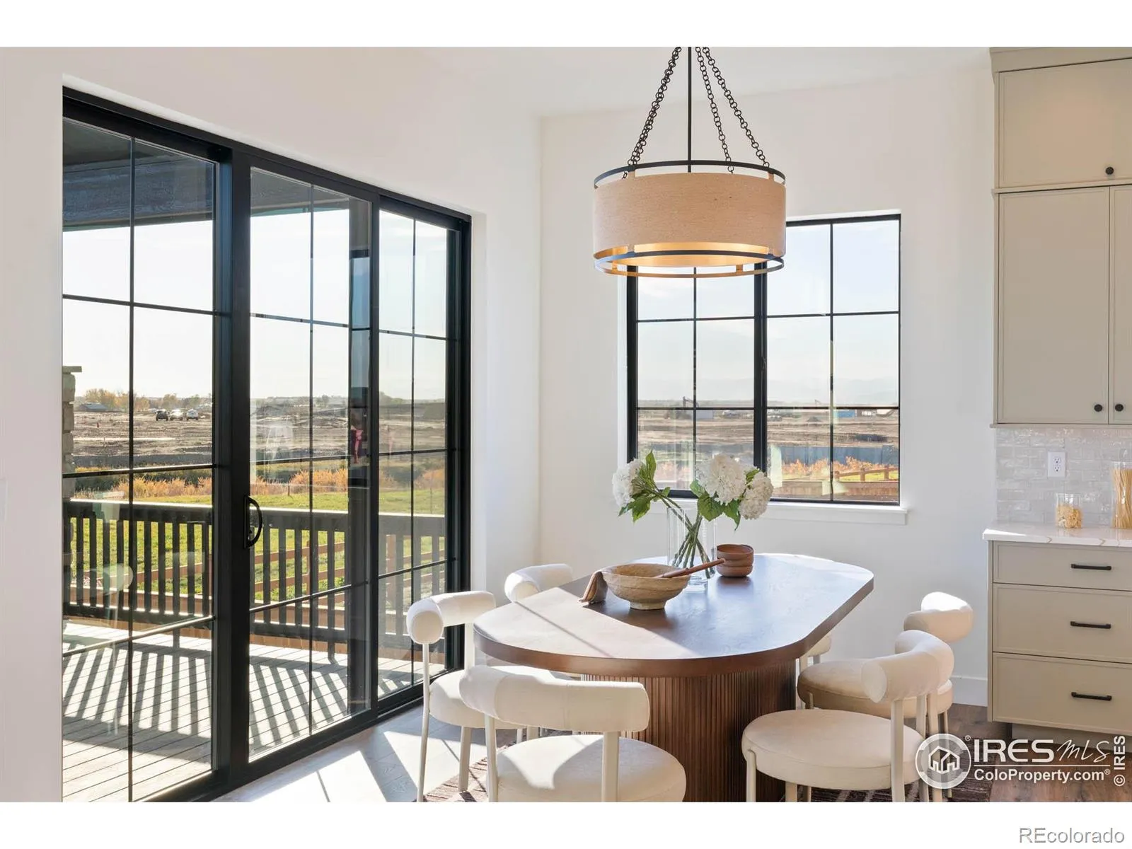 Step into effortless single-story living with the Quandary, a thoughtfully designed ranch-style home located in the highly sought-after Greenspire at Windsor Lake community. Positioned on a premium garden-level lot, this home backs to open space and offers peaceful views of the canal leading to Windsor Lake and the foothills. Blending upscale finishes with a bright, open layout, this home offers both style and comfort. Natural light fills the main level through expansive black grid windows that beautifully frame the surrounding landscape. Vaulted ceilings add to the open feel, creating an inviting and spacious atmosphere. The chef’s kitchen features custom cabinetry in a warm taupe-gray, complemented by quartz countertops, a sleek range hood, stainless steel appliances, and black fixtures throughout for a cohesive, modern look. The kitchen flows into the dining area and great room, where a floor-to-ceiling stone fireplace serves as a striking focal point for both relaxing and entertaining. Step outside to enjoy Colorado’s beautiful weather from the covered front porch or the spacious back patio. Enjoy scenic views of the water and foothills with the added privacy of no rear neighbors. The primary suite offers a luxurious retreat with a spa-inspired five-piece bath, including a freestanding soaking tub, walk-in shower, and dual sink vanity. A modern open railing leads to the finished basement, complete with a large recreation room, two additional bedrooms, a full bath, and a stylish wet bar. This versatile space is ideal for movie nights, hosting guests, or everyday living. Additional highlights include a professionally landscaped front yard and a location just minutes from Windsor Lake, scenic trails, and the heart of downtown Windsor. We can’t wait to welcome you home to Greenspire at Windsor Lake, schedule your private tour today!