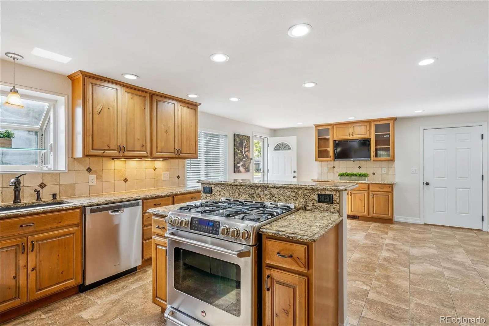 Sprawling retreat minutes from Olde Town Arvada! Meticulously expanded and loved family home on a large corner lot! Tranquil water feature and exquisite landscaping greet you at the front gate. An incredibly unique and welcoming front yard with custom stone paver patio, resort style fireplace and under step lighting. Kitchen has upgraded granite counters, cabinetry, stainless-steel appliances and large dining area. Walk out and enjoy your private back patio. Secluded luxury primary suite with stone accent wall, steam shower, jacuzzi tub, granite counters, upgraded cabinetry and even heated floors! Incredible primary walk-in closet with pocket door. The expansive second bedroom upstairs has vaulted ceilings, large windows and recessed lighting. The options for this space are unlimited! It is ideal for a large home office to run your business or a great room for entertaining your family. It includes a separate point of access with chairlift. Refinished hardwood floors, new interior paint and new blinds throughout. Newer windows and new cedar fence. Exterior of the home is brick and extremely durable James Hardie concrete siding. All the plumbing has been upgraded to copper. New sewer line installed in 2019. New roof and gutters in 2017. New HVAC ducting installed in 2021. Custom wrought iron fence with stone pillars. Beautiful landscaping, lilac bushes, flowers and trees surround the property with irrigation system. Large laundry room with utility sink. 2-car garage with 6 additional off-street parking spaces. Rare 60 ft RV or boat parking. Large exterior built-in shed behind garage. Close to everything! Just minutes to Olde Town Arvada, Arvada Ridge Light Rail Station, Ralston Creek Trail, Clear Creek Trail, the new Arvada Beer Garden, Flights Wine Cafe, King Soopers, Home Depot, Costco, Walmart and many others. 2 minutes to I-70. Move in ready! Set your showing for this unique property today!