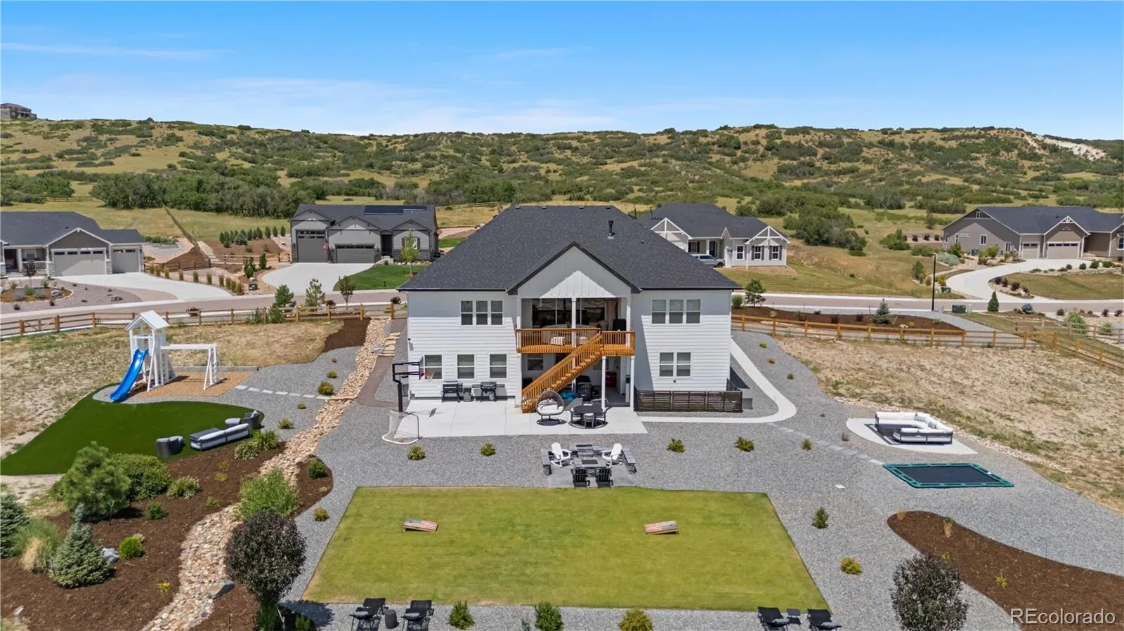 The finished basement offers a wet bar, large game room, and expansive family room—ideal for movie nights or hosting gatherings. Outside, enjoy a composite covered deck, in-ground trampoline, play structure, four-hole putting green with three chipping pads, and basketball hoop—all surrounded by grass, open space, and no rear or side neighbors.