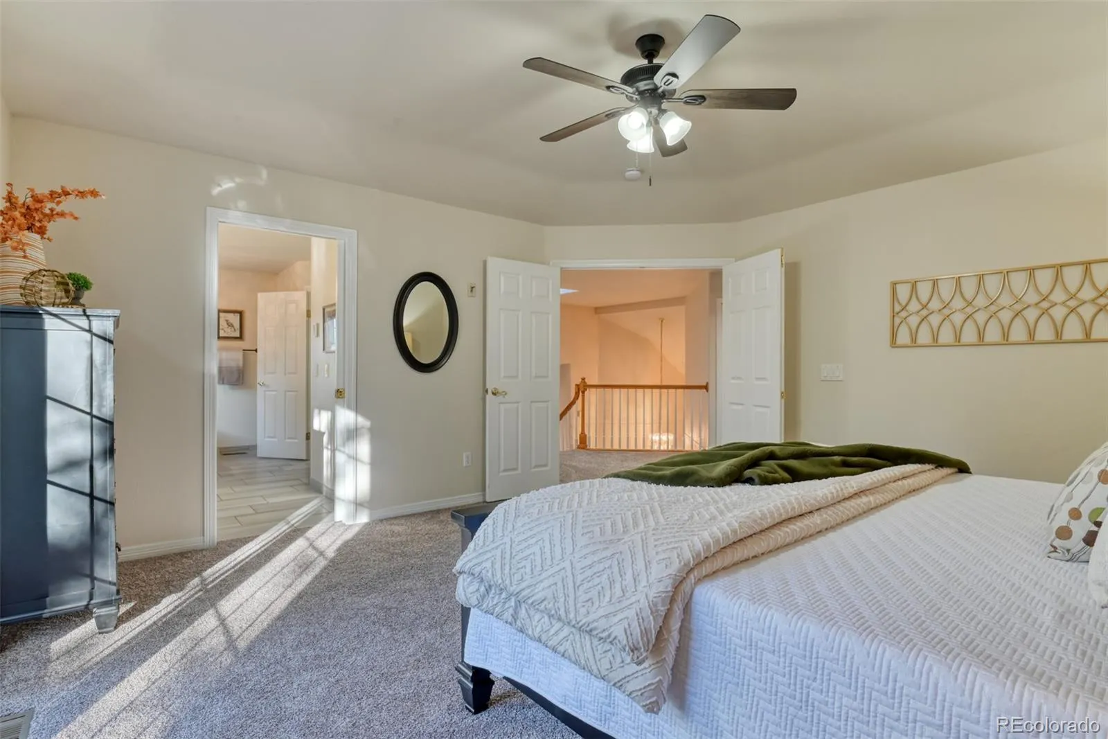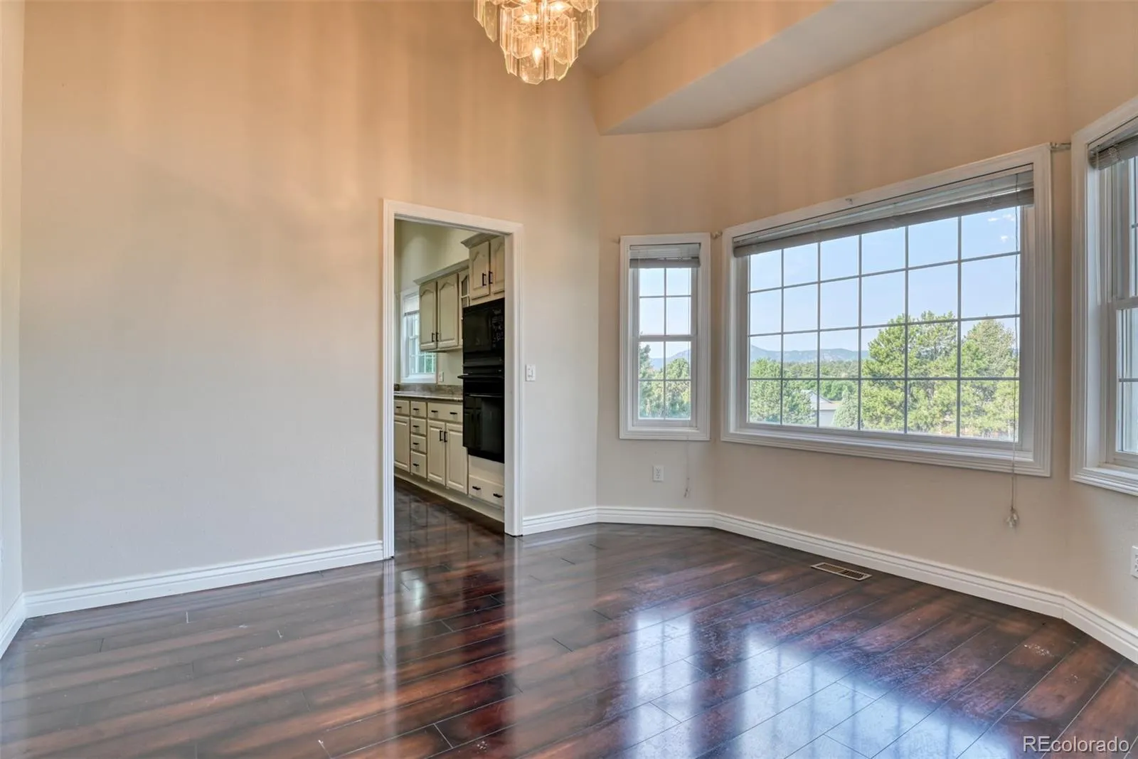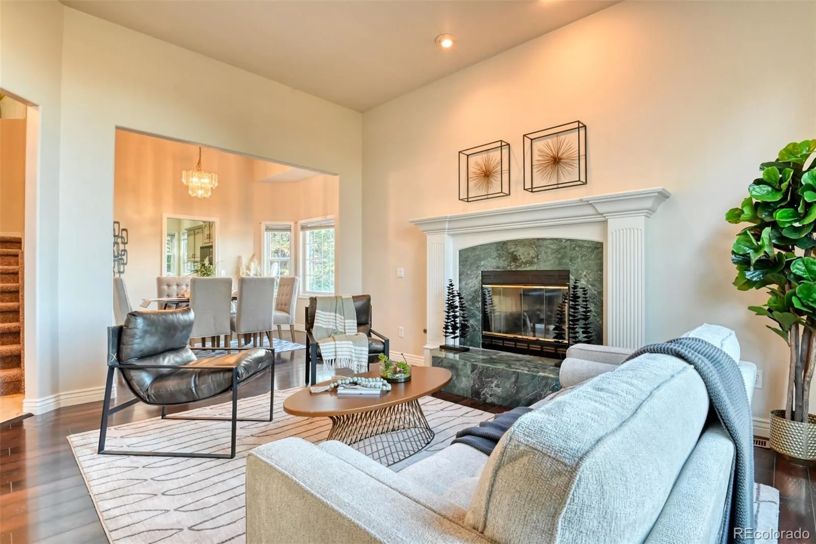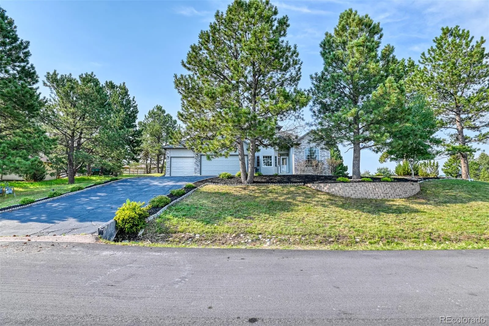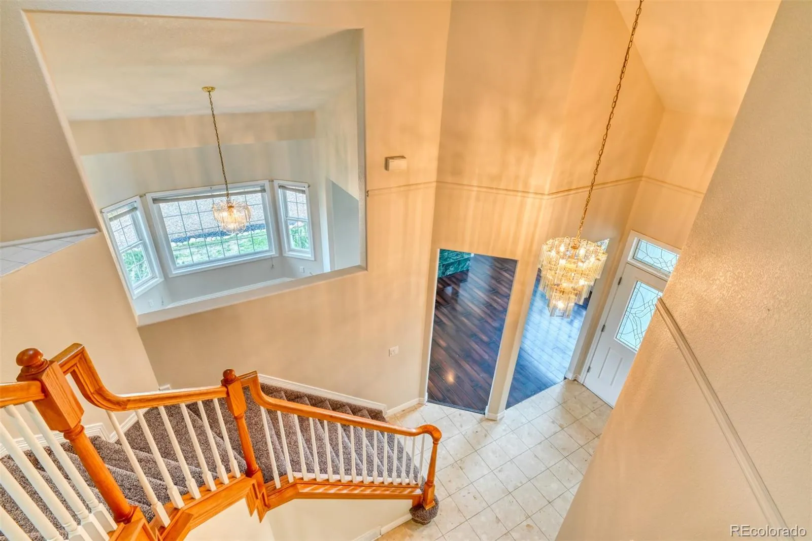 Set on nearly half an acre in a peaceful, treed corner lot, this custom home delivers upscale Colorado living with panoramic mountain views. The elegant marble entry, dramatic cascading staircase, and soaring vaulted ceilings create a truly grand first impression.