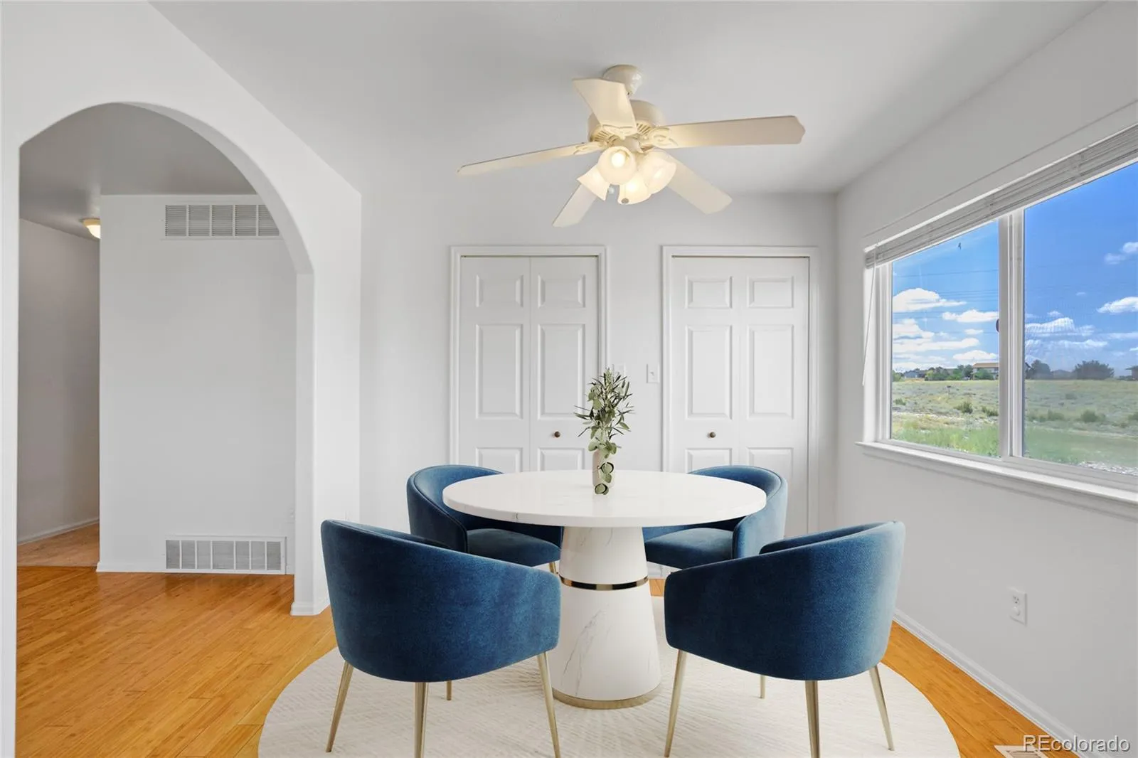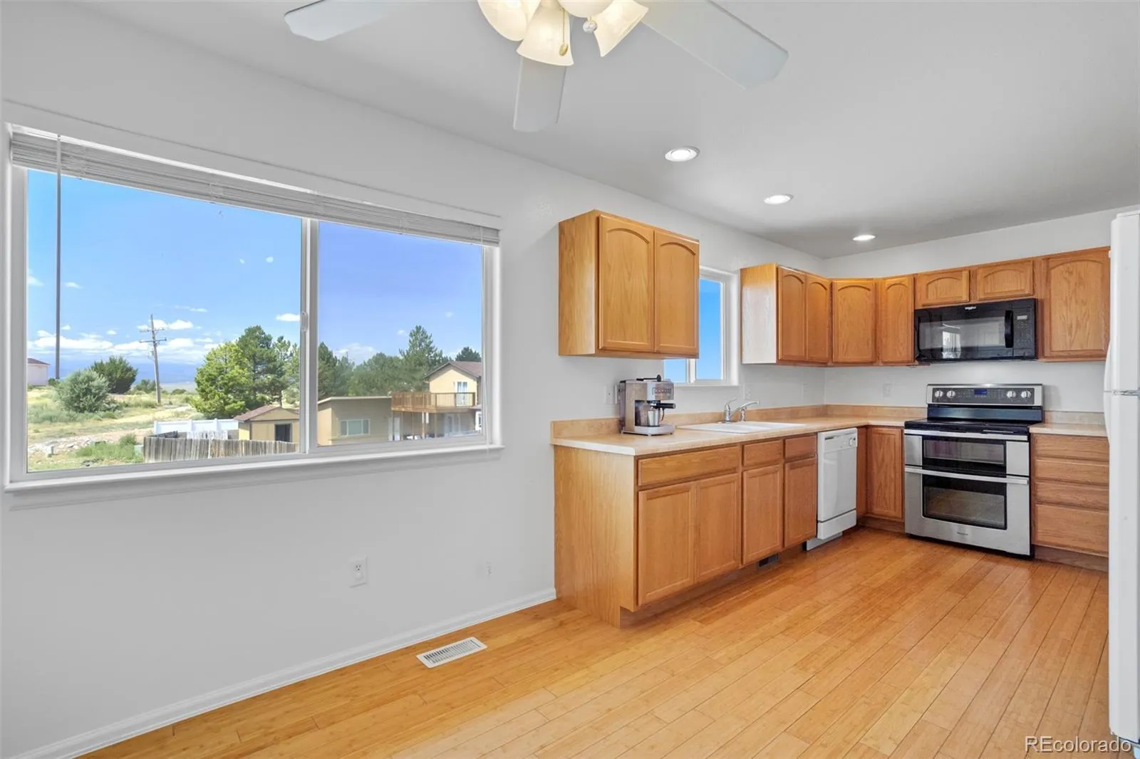Well-appointed on a serene cul-de-sac in the desirable Acorn & Harmony neighborhood of Pueblo West, this incredible split-level home offers one of the most spacious & open designs you’ll find! Vaulted ceilings & dramatic double arches framing the upper-level dining room, make a bold statement while creating a warm, welcoming atmosphere. An impressively scaled living room with soaring ceilings sets the tone, while the open layout flows seamlessly to the kitchen & dining areas above. The kitchen features beautiful bamboo flooring, a breakfast nook with mountain views, a double pantry, abundant cabinet & counter space, & a window above the kitchen sink perfectly positioned to take in the scenic backdrop. The expansive primary suite features a 5-piece bath & large walk-in closet & is tucked away for a private retreat! A half-bath adds guest convenience to this level. The lower-level family/rec room walks out to a covered patio, perfect for entertaining & is adjacent to a hot tub pad ready for relaxation under the stars! Two generously sized bedrooms, a full bathroom, & a dedicated laundry area (washer & dryer included!) complete the home. Situated on a 0.50-acre lot, this home also features a 3-car garage with a service door to the side yard, a storage shed, & an owned solar panel array for added efficiency. All major mechanical systems, including air conditioning, have been updated within the past five years. All this home needs is a new owner…and that should be YOU!
