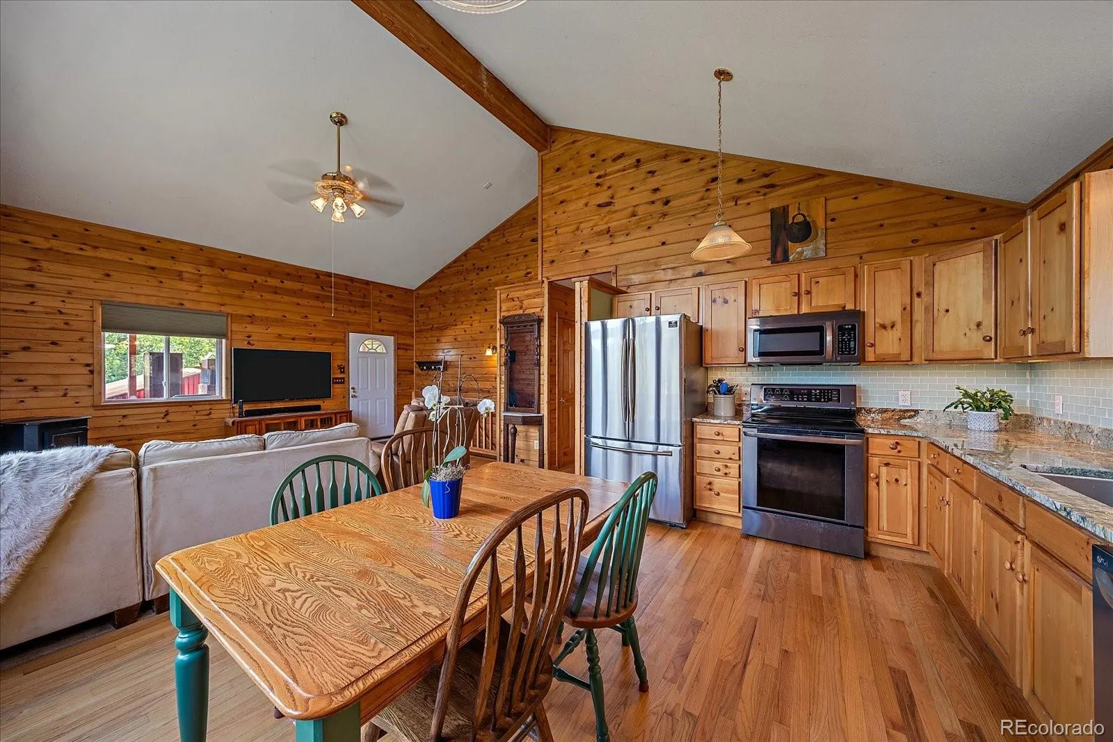 Nestled amid the stunning scenery of aspens and pines, this charming home offers a perfect blend of comfort and practicality. Offering a comfortable 1,792 square feet, this home features three spacious bedrooms and two bathrooms. The open floor plan creates a welcoming atmosphere, complemented by a pellet stove and picture windows that frame impressive, far reaching mountain views that will make you stop in awe. Step into the well-appointed eat-in kitchen, fully equipped and ideal for culinary enthusiasts. The lower level promises versatility with a kitchenette, large family room – again with amazing views, and walk-out access, making it an excellent space for guests or additional entertaining. Imagine multi-generation living with their own access. The living space extends to an inviting outdoor deck (built in 2021), perfect for enjoying the natural beauty surrounding the 1.13-acre lot. With private outdoor space on two decks, plenty of off-street parking, and a large storage shed for all your needs, this property combines modern amenities with the serenity of mountain living. Access to two private stocked lakes! Don’t miss the opportunity for fishing, hiking, and exploring within minutes. Discover the charm and convenience that make this property a true gem.