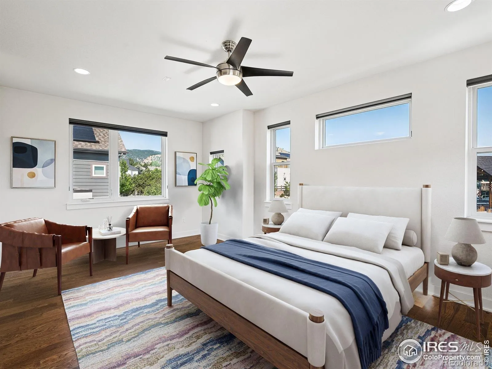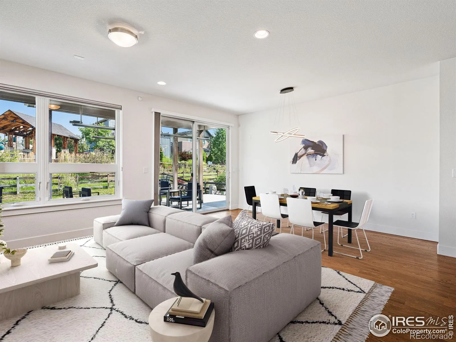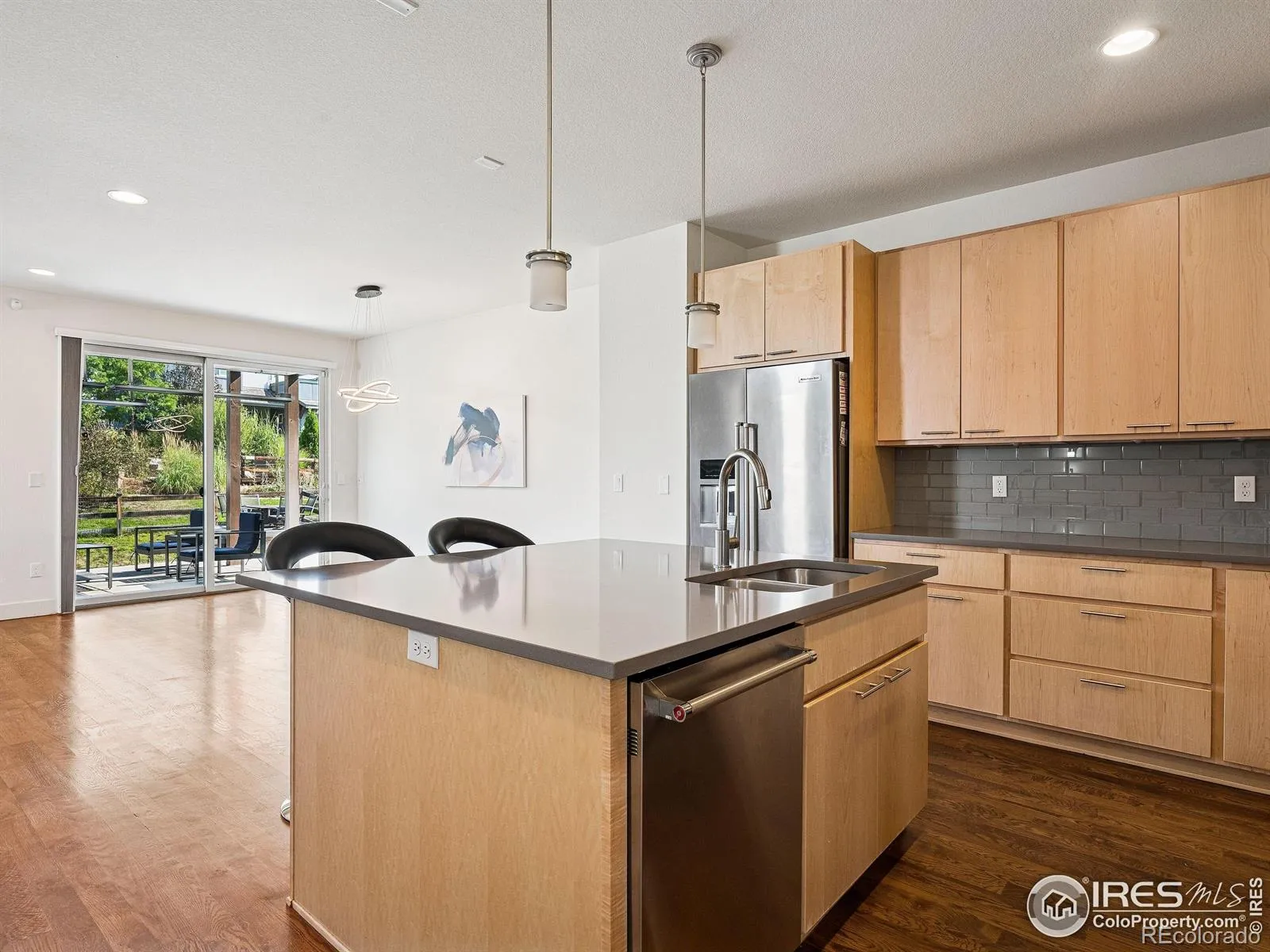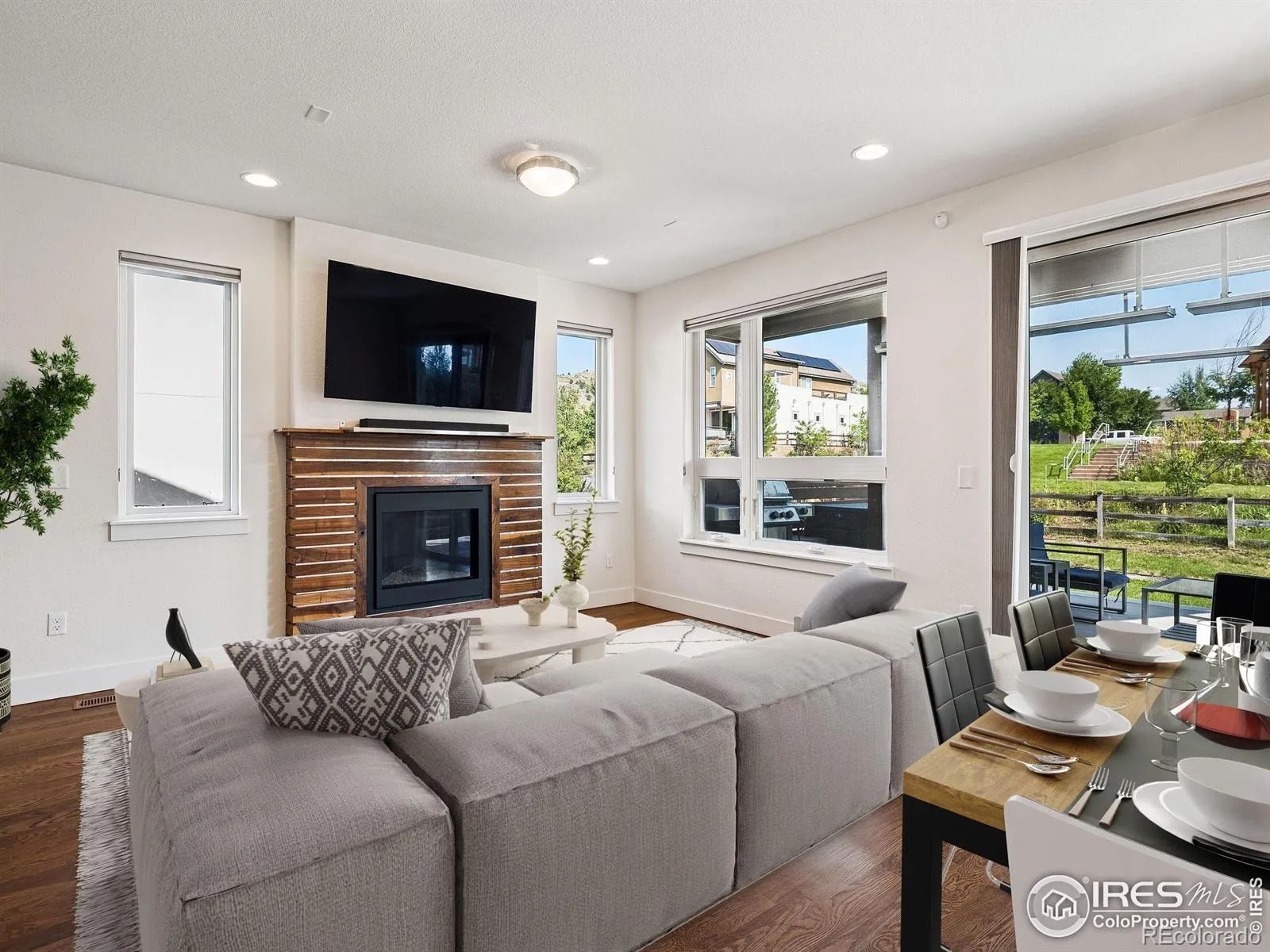 Step into the heart of North Boulder living with this sleek and sophisticated 4-bed, 4-bath residence in Trail Crossing. Designed with a modern urban aesthetic and custom features throughout, this 2,982 sqft home impresses at every turn. An open floor plan welcomes you with natural light, a dramatic slatted wood accent wall, and a show stopping kitchen featuring quartz countertops, stainless steel appliances, a glass backsplash, oversized island, and contemporary lighting.The main living area flows effortlessly, centered around a custom fireplace -perfect for cozy evenings or chic entertaining. Upstairs, a luxurious primary suite offers a private retreat with spa-like bath, oversized shower, soaking tub, sitting area, and direct access to a private deck and hot tub with breathtaking Foothills views.A flexible non-conforming bedroom on this level doubles as a home office, creative space, or yoga studio. The finished basement features a full bar, recreation area, guest bedroom, and full bath-ideal for hosting or relaxing.Outside, enjoy a spacious backyard with a covered patio, built-in heaters, and a raised fire pit area-all backing to private open space and a neighborhood park. Additional highlights include a main-level office/guest suite with Murphy bed and attached 3/4 bath, and an oversized 2-car attached garage.With direct access to NOBO’s best restaurants, shops, and trails, this home effortlessly blends style, function, and location. Welcome to your perfect Boulder lifestyle.