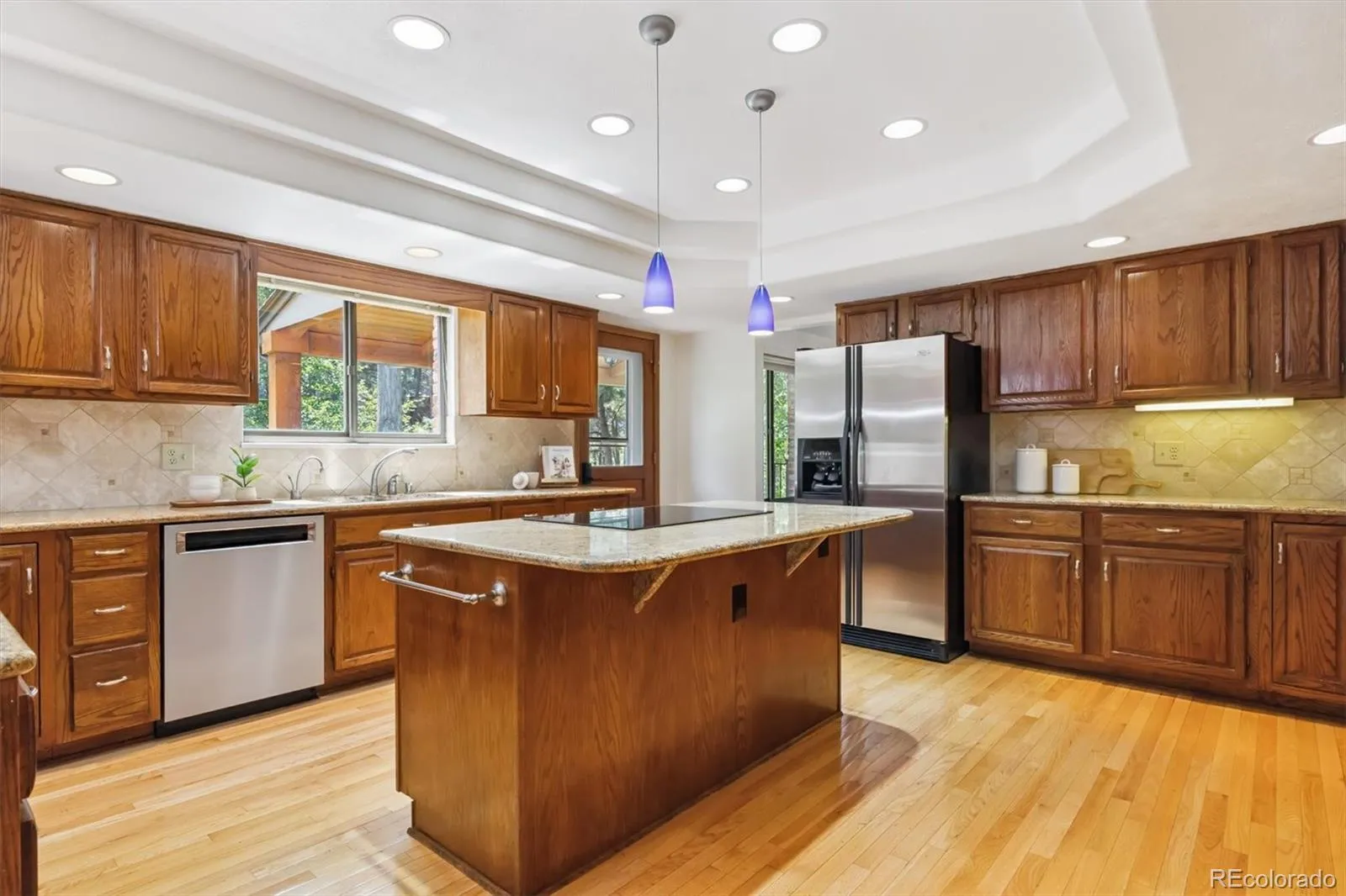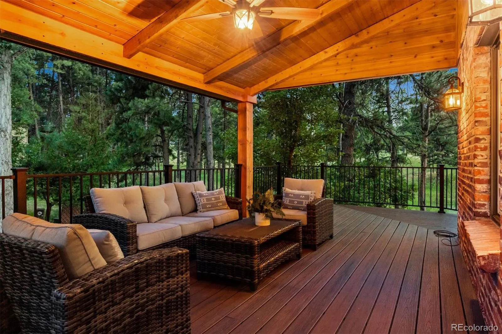 Gracefully situated in the prestigious enclave of The Pinery in Parker, this exquisite 5-bedroom, 4-bathroom residence offers a refined blend of timeless charm and sophistication. Resting on a meticulously landscaped lot, the home captivates from the curb with its inviting wraparound front porch—an idyllic spot for morning coffee or tranquil evenings. Inside, you are welcomed with warmth and elegance to the thoughtfully designed layout. Sunlight pours through expansive windows, illuminating dual living areas and formal and informal dining spaces—perfect for both intimate family moments and grand entertaining. The upper level features three generously proportioned bedrooms, complemented by a sumptuous primary suite. This serene retreat showcases a spacious footprint, a walk-in closet, and a fireplace to cozy up to, during those winter months. Downstairs, the fully finished basement presents an expansive additional living area—ideal for a home theater, game room, or lounge. Walk out to your incredible backyard that backs to untouchable landscape. The oversized three car garage provides both functionality and flexibility. Outdoors, the serene backyard oasis features a wraparound deck for alfresco dining during those quiet evening nights. Tucked within one of Parker’s most sought-after communities, residents enjoy access to scenic parks, acclaimed golf courses, and top-rated schools. Marrying thoughtful architecture with exceptional amenities, this remarkable home embodies Colorado living at its finest.