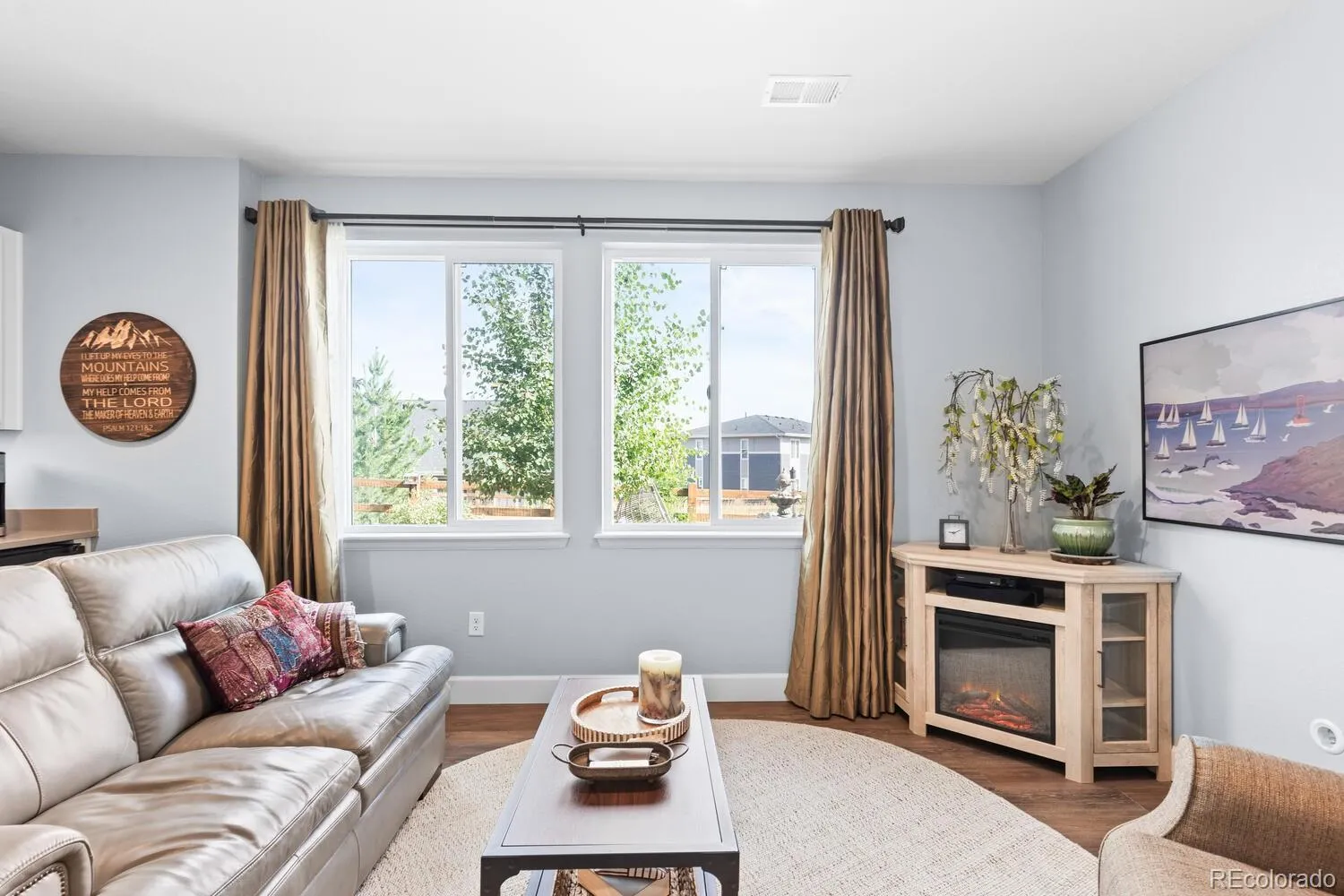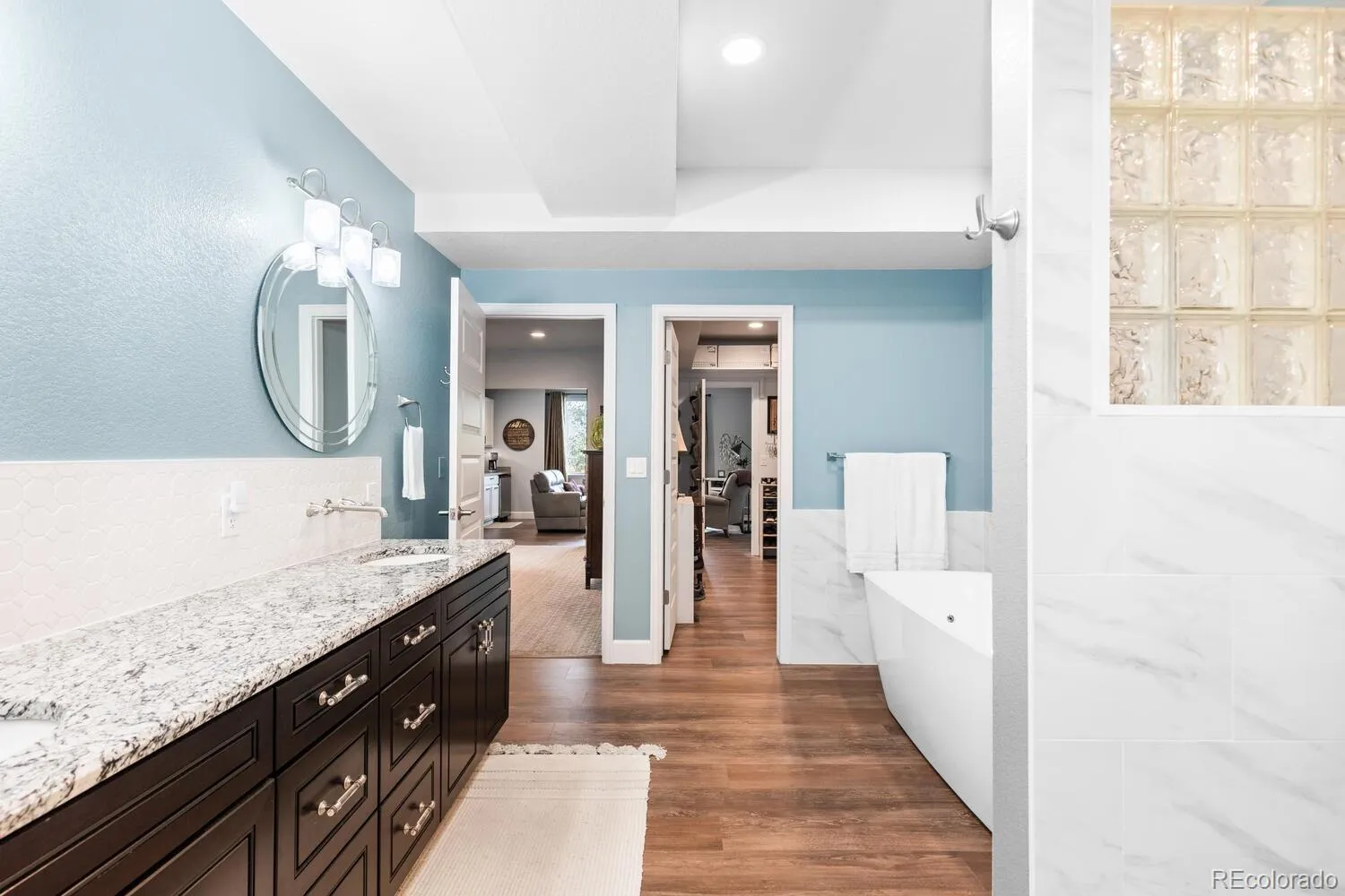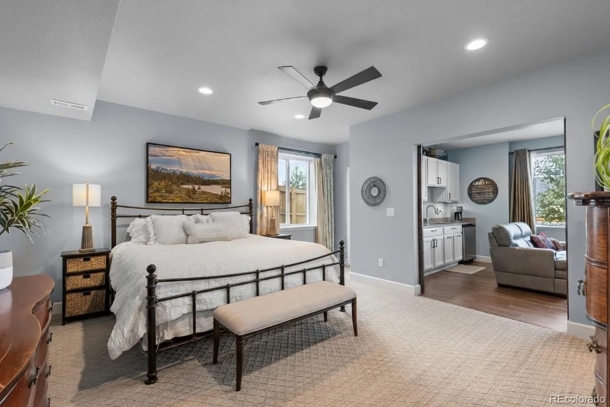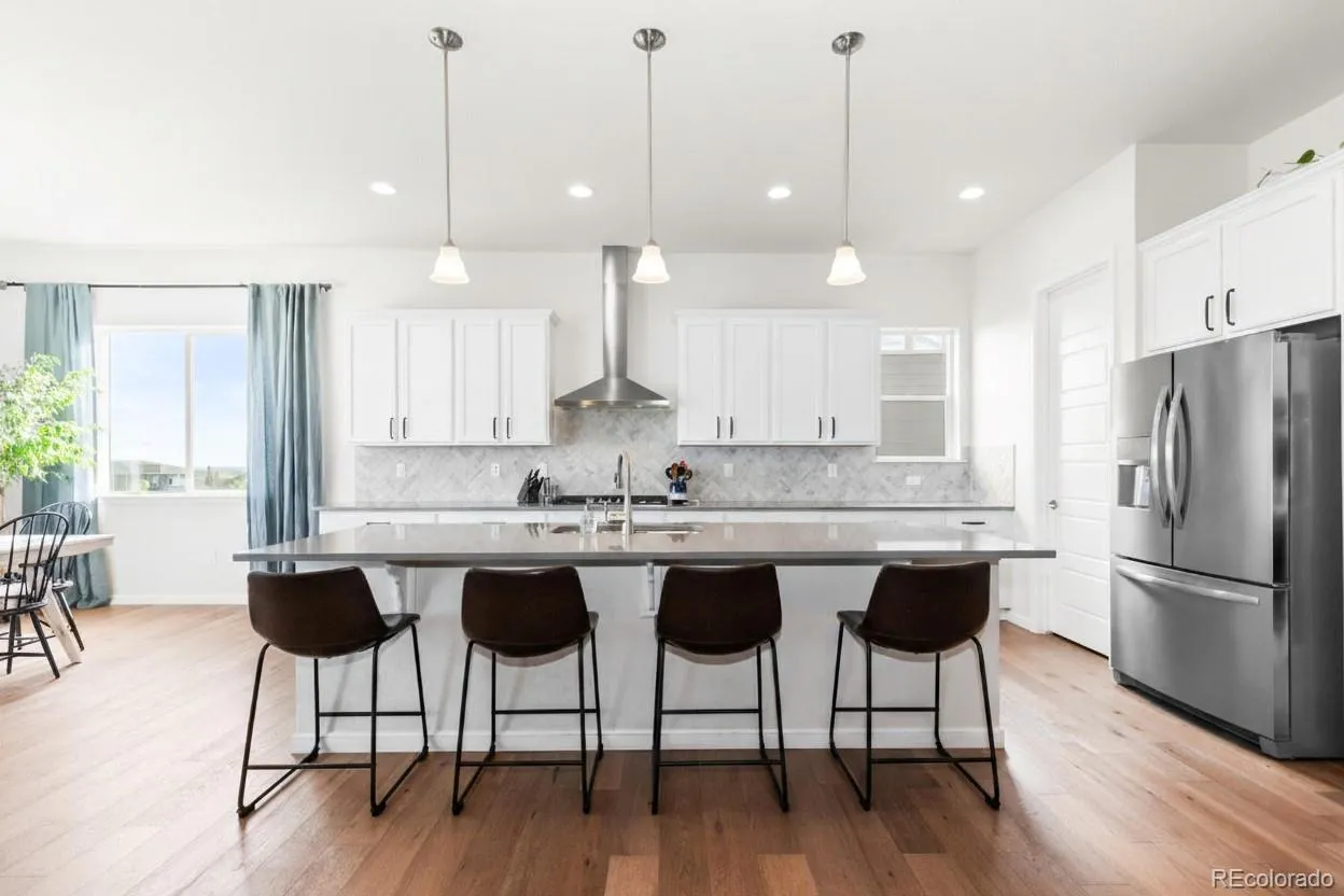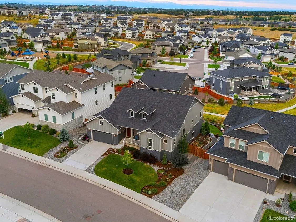 Meticulously crafted 6-bedroom, 5-bathroom residence — a sanctuary designed for seamless multi-generational living, with lush green space views just steps to a charming pocket park. Built in 2021 and enhanced recently with fresh interior paint and updated flooring throughout, the wide-plank hardwood flooring and soaring 10′ ceilings set a tone of grandeur. The expansive great room beckons with a gas fireplace & custom mantle, offering a perfect place to unwind or entertain. Chef’s kitchen — boasts quartz countertops, an oversized eat-in island, herringbone tile backsplash, 5-burner gas range, ss appliances, & generous walk-in pantry. Enjoy meals in the eat-in dining area or outside on the covered deck overlooking beautifully landscaped raised garden beds with built-in irrigation. A dedicated office/library space awaits with floor-to-ceiling bookshelves & French doors. The main-floor primary suite with access to the covered deck and a spa-inspired bath with dual sinks, quartz countertops, walk-in shower w/ glass surround, soaker tub, linen closet, walk-in closet. Two other beds on the main level share a Jack-and-Jill bathroom with separate shower and toilet room. A mudroom leads into a spacious laundry room designed for effortless day-to-day functionality. Downstairs, the newly built and professionally finished basement adds substantial living space — including two bright bedrooms, a full bath, & a private guest suite. This refined suite features its own living room, kitchenette, oversized bedroom, dual walk-in closets with custom built-ins, and a spa-style bath with granite countertops, jetted soaker tub, walk-in shower, and private water closet. Bonus: A massive walk-in storage room offers rare flexibility — easily convertible into a rec room, workshop, or fitness studio. Whether you’re hosting guests, accommodating extended family, or simply embracing peaceful luxury in a vibrant community setting, this home is a masterclass in thoughtful design and style.