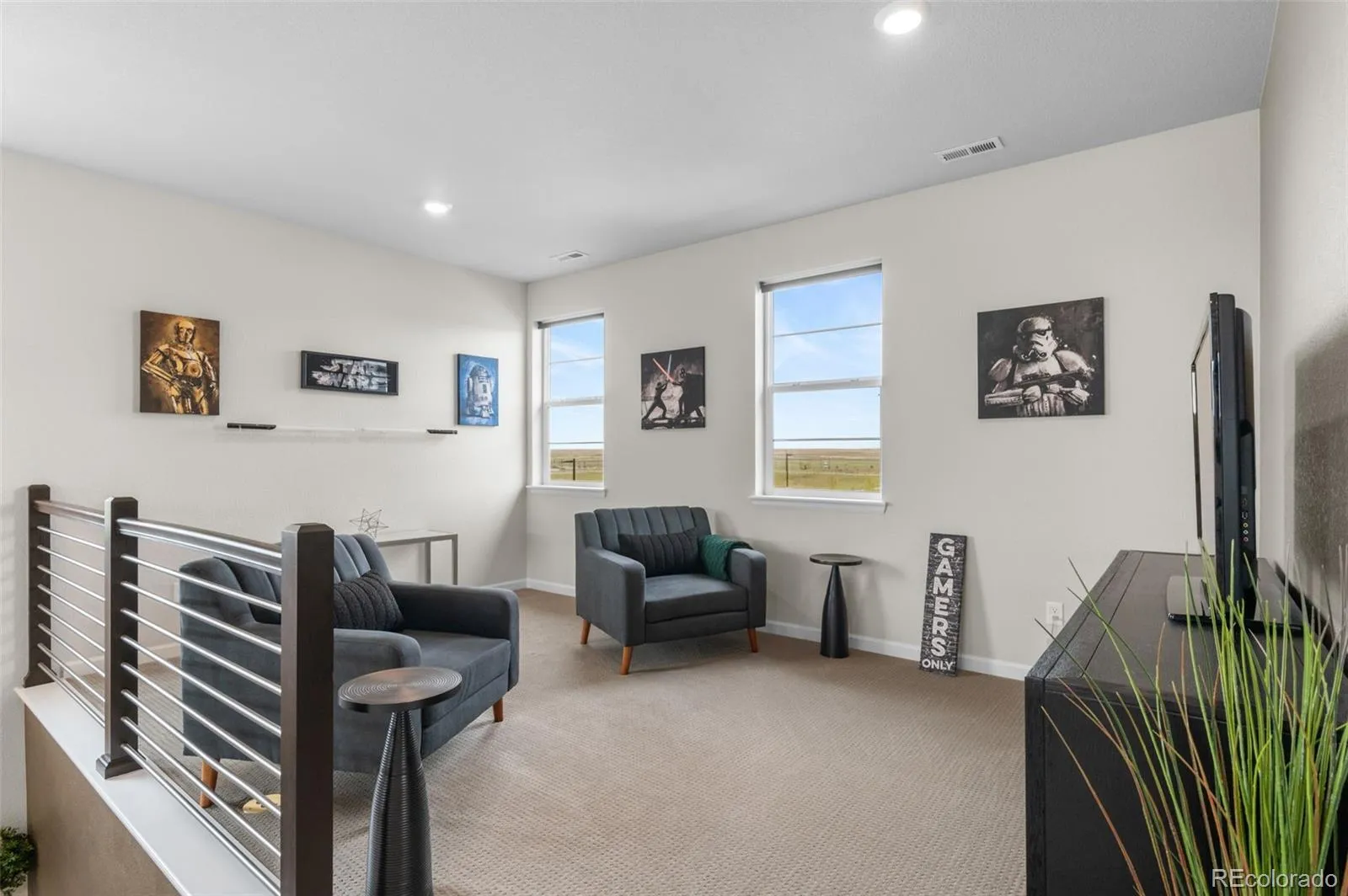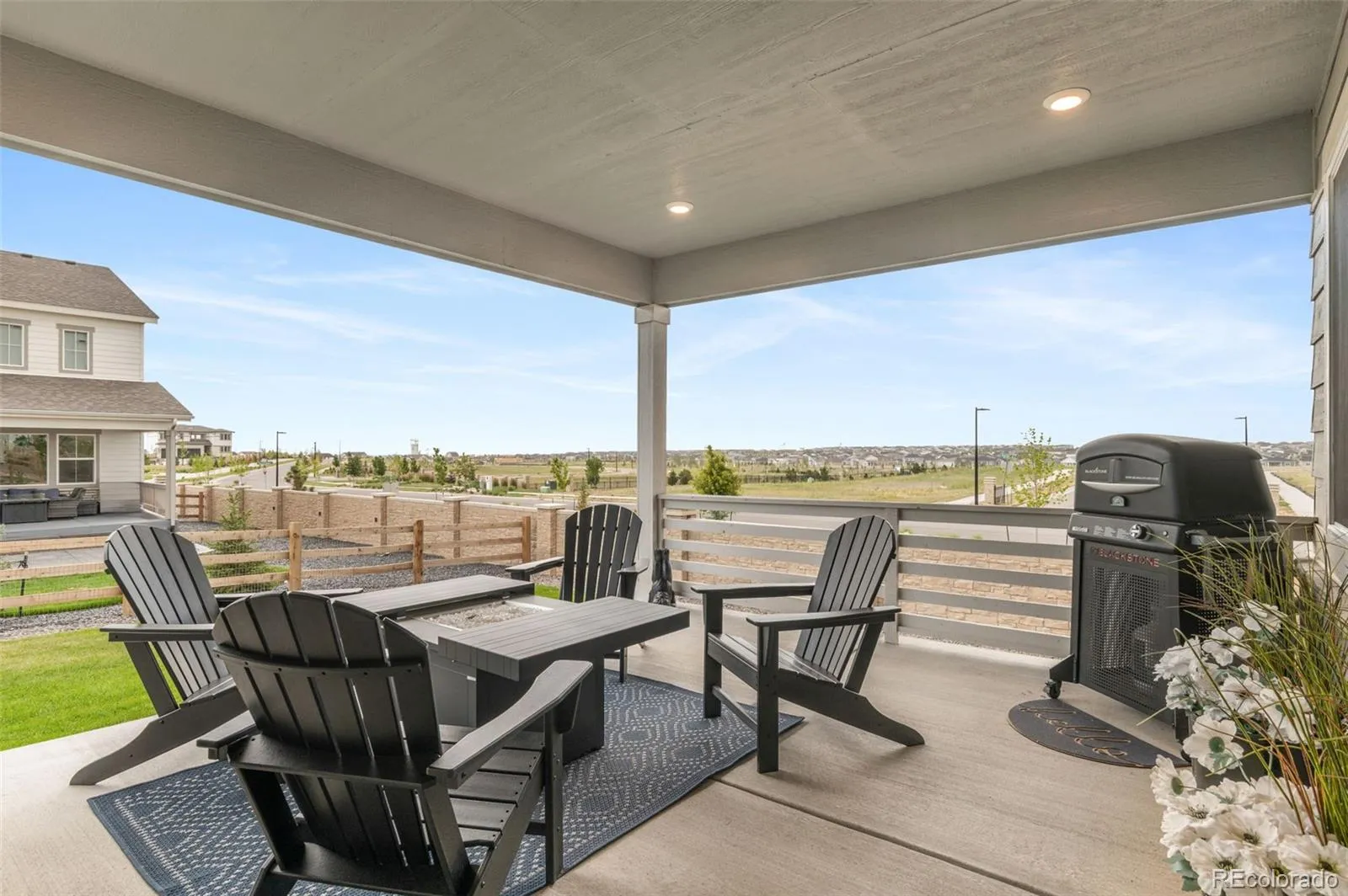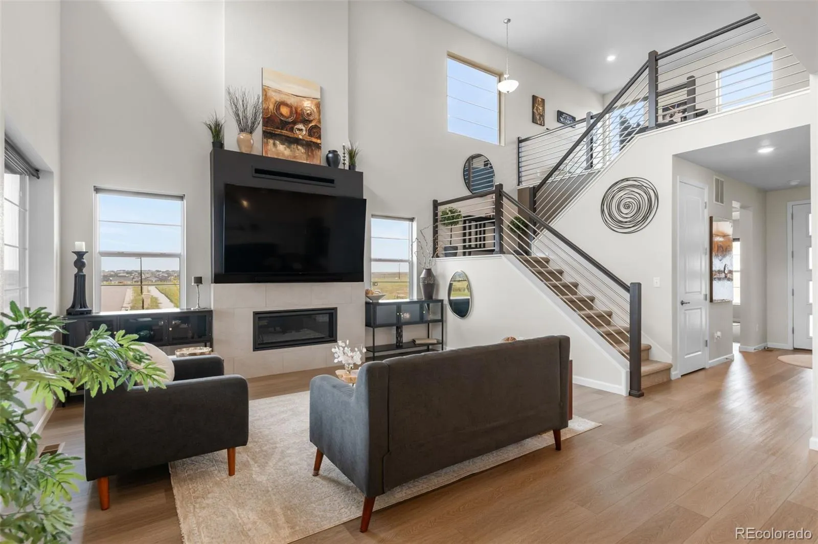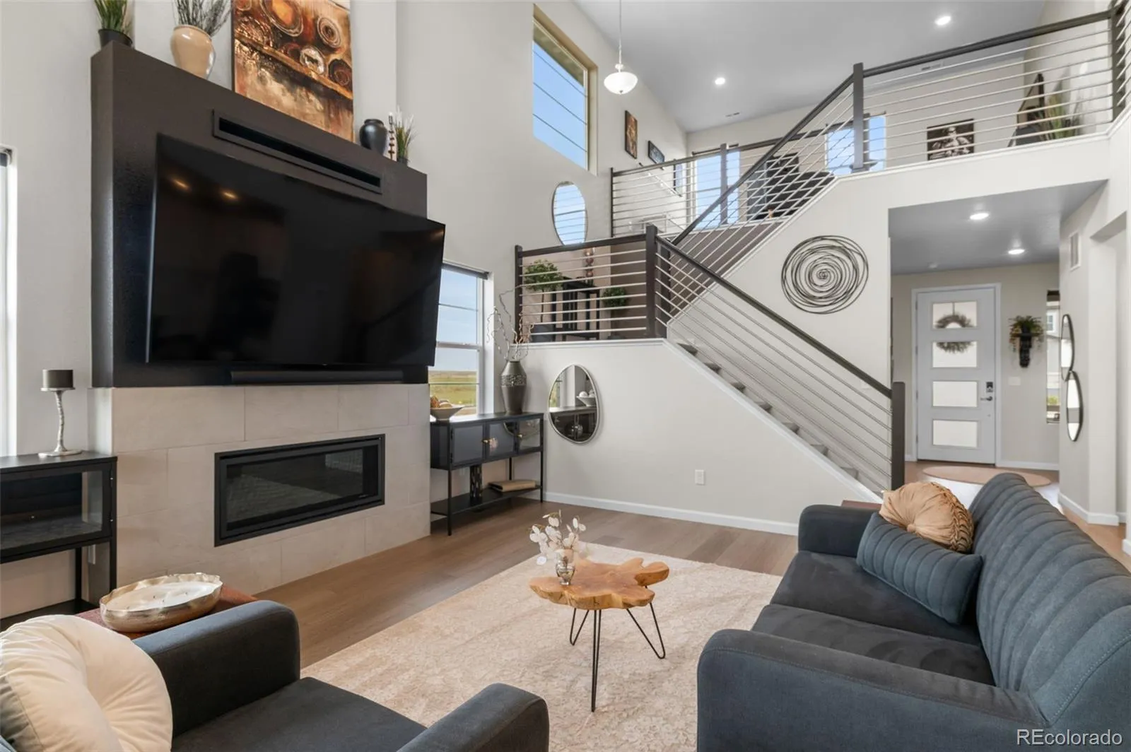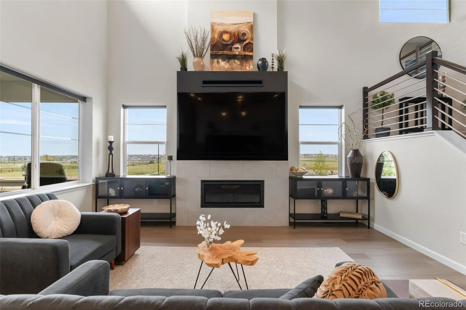 Are you ready to own a MODEL-HOME, presented exactly as seen online and in person? The sellers are offering this residence FULLY FURNISHED (every curated piece included), plus 1-Year of seller-paid Homeowners Insurance, 1-Year of HOA dues pre-paid, a free 1-Year Home Warranty, and a complimentary 2/1 interest rate buydown. Tucked privately at the end of a tranquil cul-de-sac, this distinguished property showcases a coveted model-home floor plan with sweeping mountain views and refined upgrades throughout. The oversized, landscaped lot is framed with mature trees, lush greenery, and a covered patio deck leading to a serene backyard retreat—perfect for quiet mornings or elegant entertaining. Inside, luxury vinyl plank flooring flows through the main level, connecting a home office, dining space, and soaring two-story Great Room with gas fireplace to a gourmet kitchen adorned with quartz counters, walk-in pantry, and designer cabinetry. A main-level guest suite with full bath provides versatility, while dual refrigerators, washer/dryer, and mounted TVs add immediate value. Upstairs, a flexible loft, upgraded staircase, and spacious primary suite complement two additional bedrooms and a full bath. The unfinished basement with plumbing rough-in invites future expansion, while a 4-car tandem garage ensures ample storage. Additional highlights include automated blackout blinds, high-speed internet setup, and a brand-new roof (May 2025) with transferable warranty. Situated in one of Colorado’s most dynamic communities, residents enjoy top-rated schools, close proximity to DIA, the Gaylord Resort, Buckley Airforce Base, light rail to downtown and DTC, and a network of parks and trails for outdoor living. Positioned on the edge of the planned “Aerotropolis” City, this home also represents a prime opportunity for exceptional long-term appreciation.
