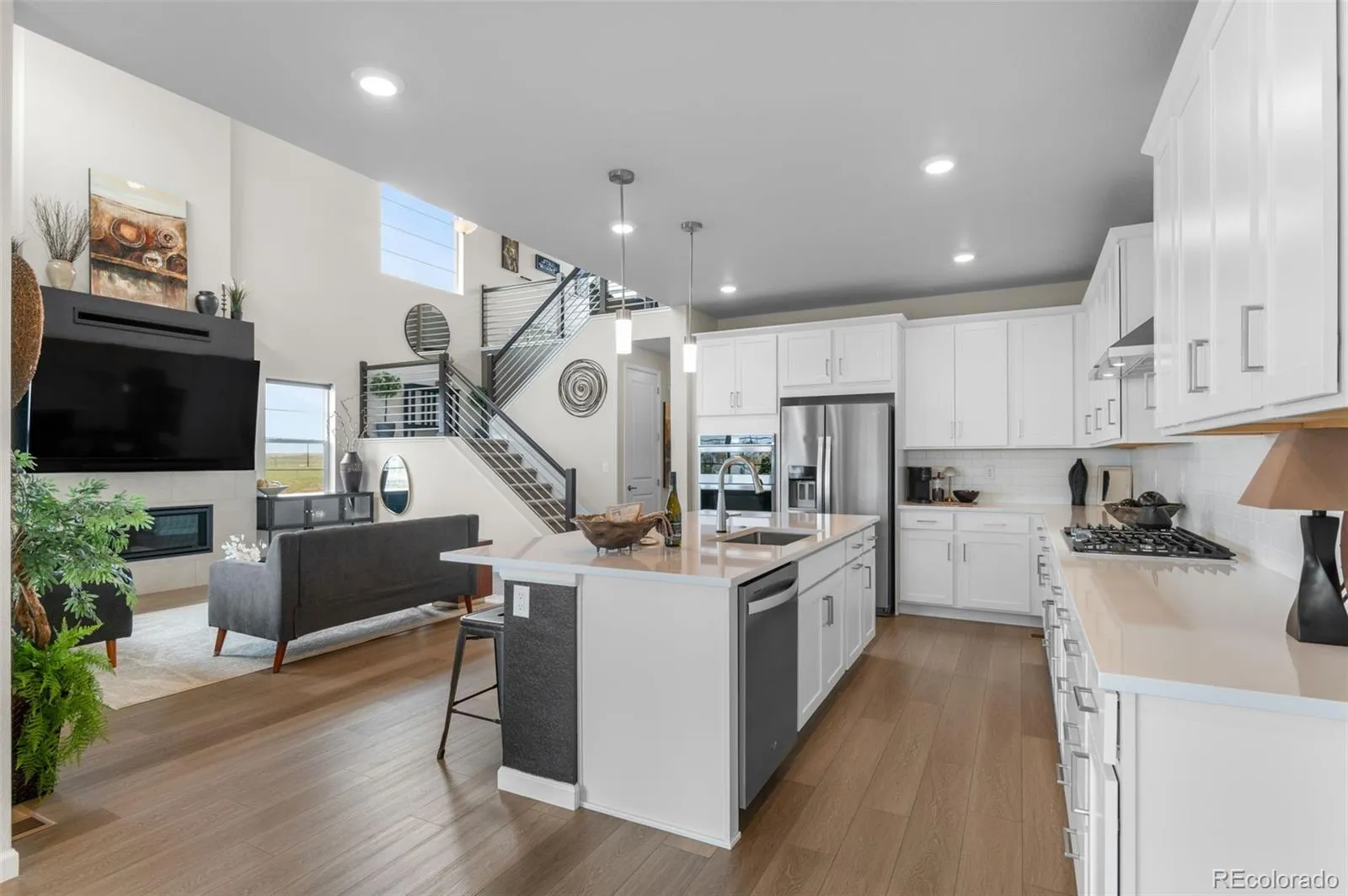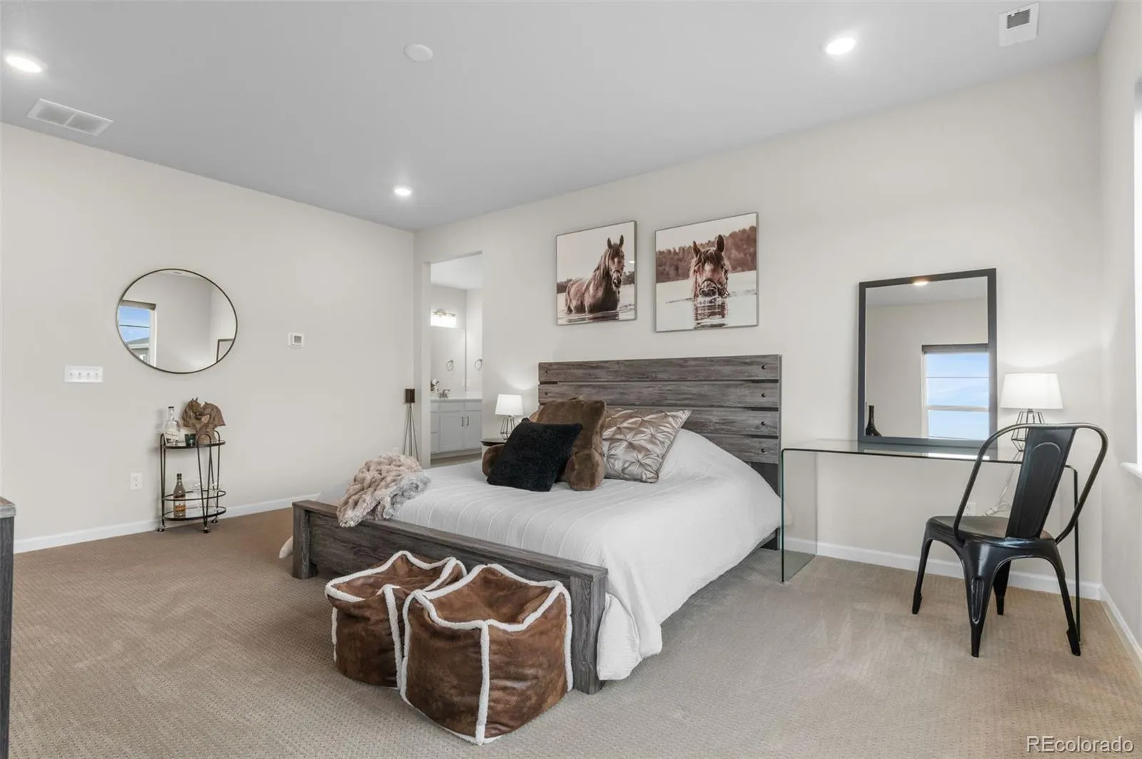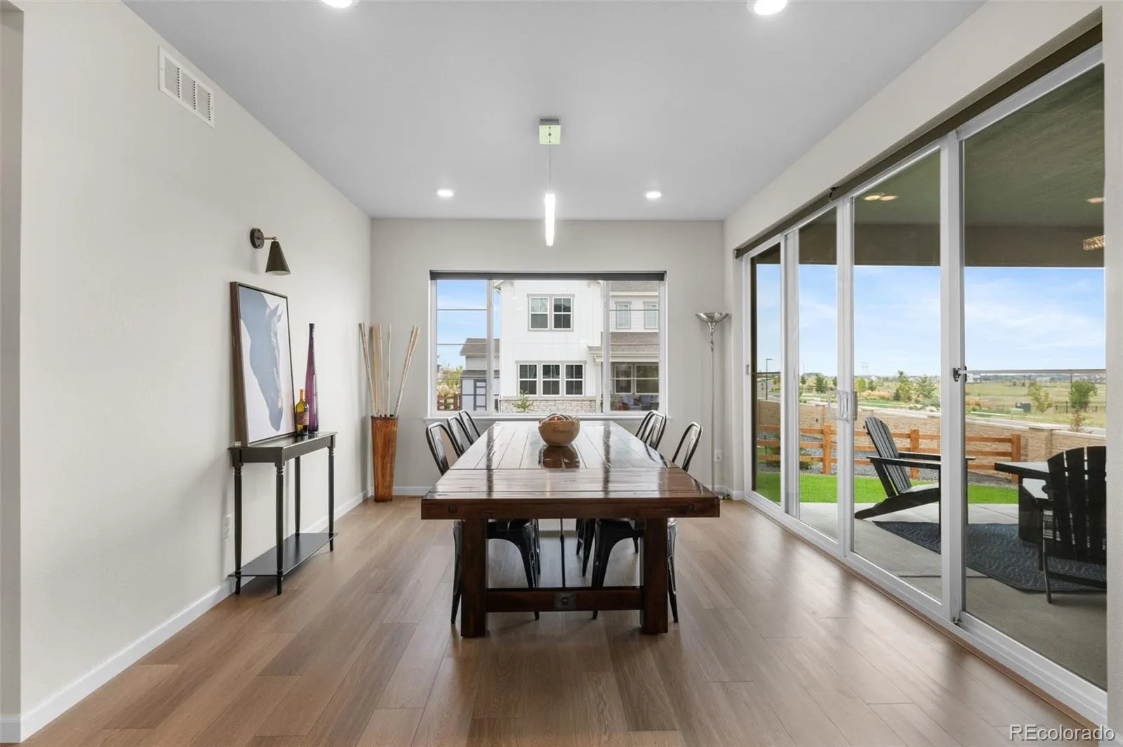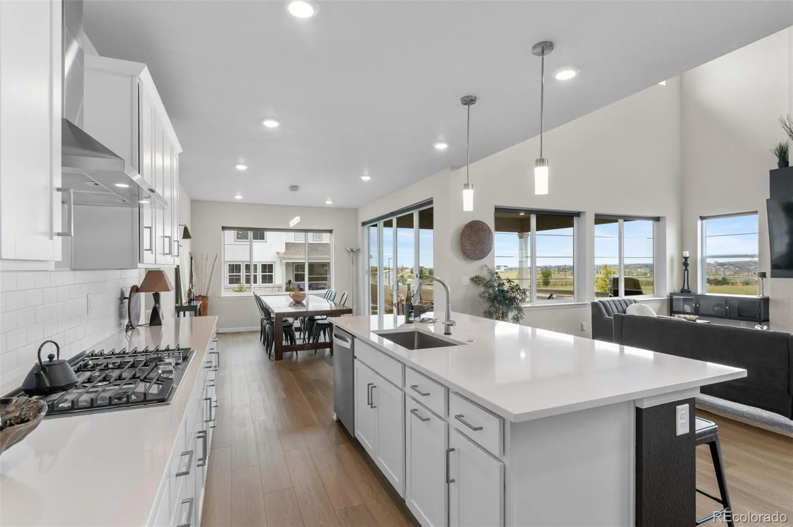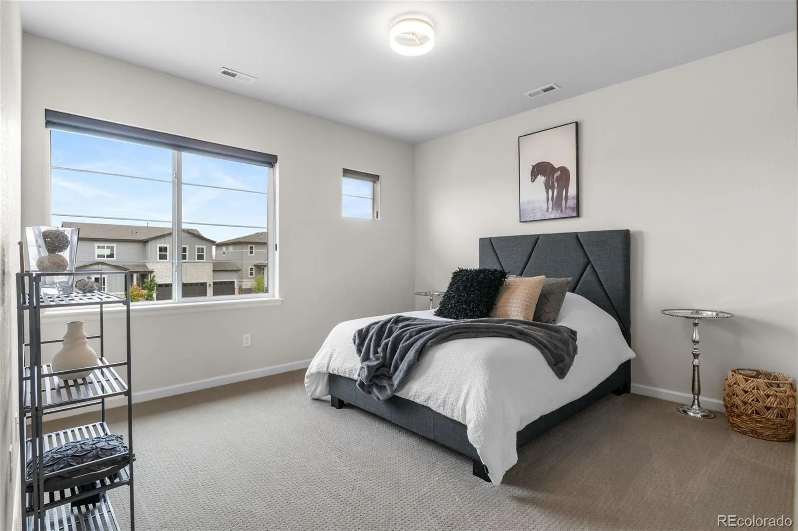 Are you ready to own a MODEL-HOME, presented exactly as seen online and in person? The sellers are offering this residence FULLY FURNISHED (every curated piece included), plus 1-Year of seller-paid Homeowners Insurance, 1-Year of HOA dues pre-paid, a free 1-Year Home Warranty, and a complimentary 2/1 interest rate buydown. Tucked privately at the end of a tranquil cul-de-sac, this distinguished property showcases a coveted model-home floor plan with sweeping mountain views and refined upgrades throughout. The oversized, landscaped lot is framed with mature trees, lush greenery, and a covered patio deck leading to a serene backyard retreat—perfect for quiet mornings or elegant entertaining. Inside, luxury vinyl plank flooring flows through the main level, connecting a home office, dining space, and soaring two-story Great Room with gas fireplace to a gourmet kitchen adorned with quartz counters, walk-in pantry, and designer cabinetry. A main-level guest suite with full bath provides versatility, while dual refrigerators, washer/dryer, and mounted TVs add immediate value. Upstairs, a flexible loft, upgraded staircase, and spacious primary suite complement two additional bedrooms and a full bath. The unfinished basement with plumbing rough-in invites future expansion, while a 4-car tandem garage ensures ample storage. Additional highlights include automated blackout blinds, high-speed internet setup, and a brand-new roof (May 2025) with transferable warranty. Situated in one of Colorado’s most dynamic communities, residents enjoy top-rated schools, close proximity to DIA, the Gaylord Resort, Buckley Airforce Base, light rail to downtown and DTC, and a network of parks and trails for outdoor living. Positioned on the edge of the planned “Aerotropolis” City, this home also represents a prime opportunity for exceptional long-term appreciation.