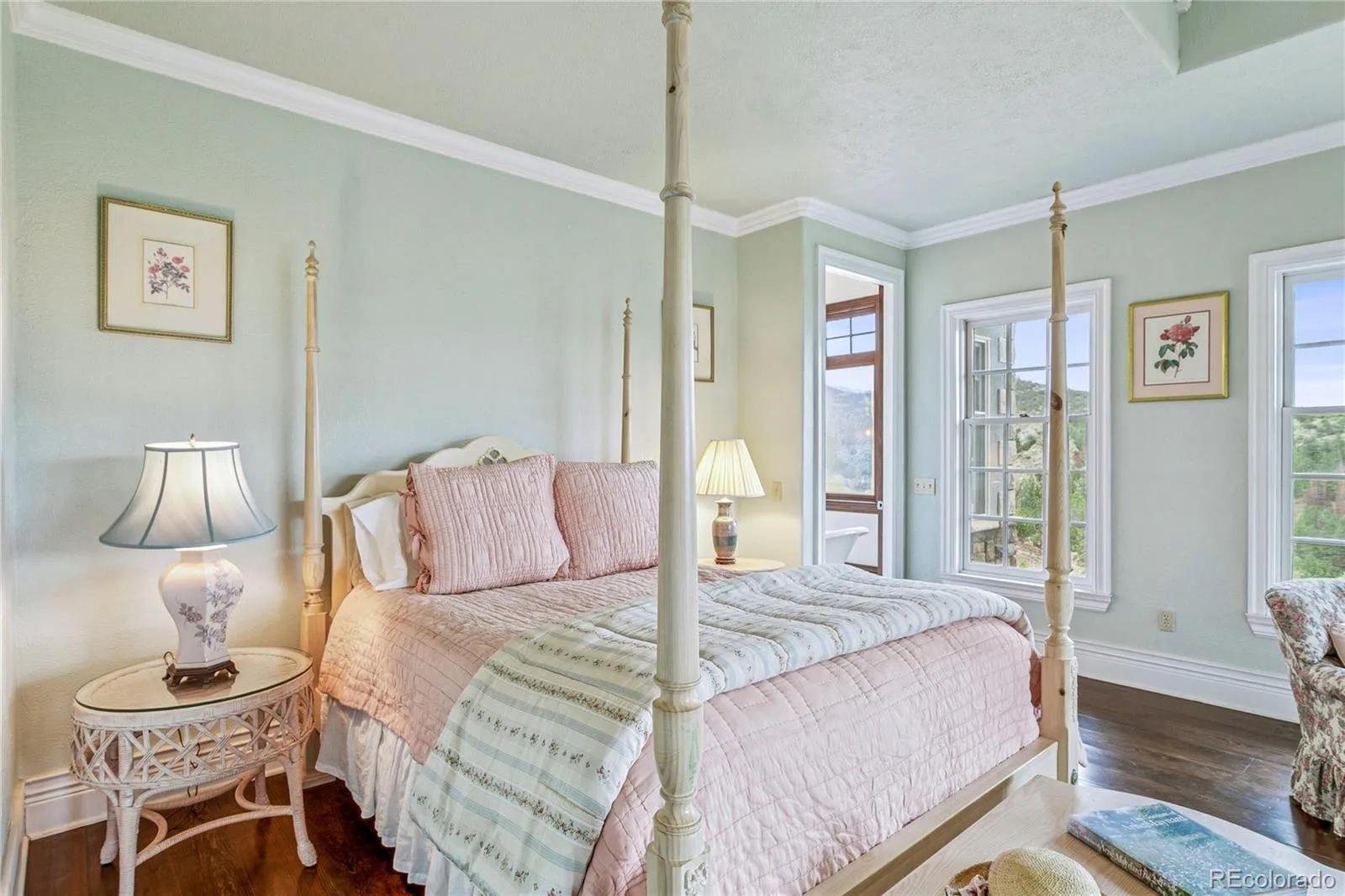 A separate drive leads to the custom garage barn with heated office, half bath, loft, horse stalls with auto waterers, and storage for vehicles and gear. An artesian well provides ample water. This is Colorado mountain living at its finest.