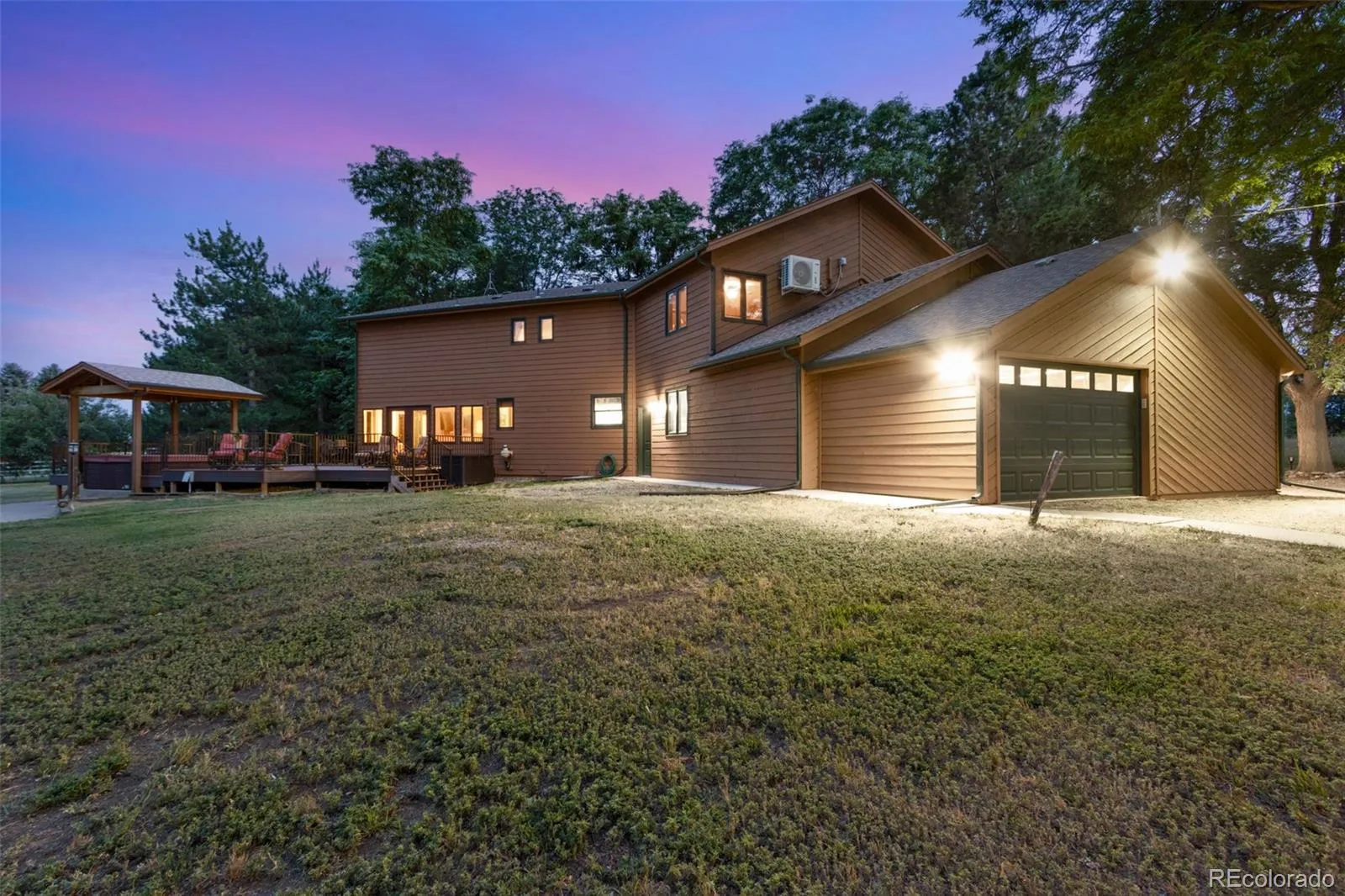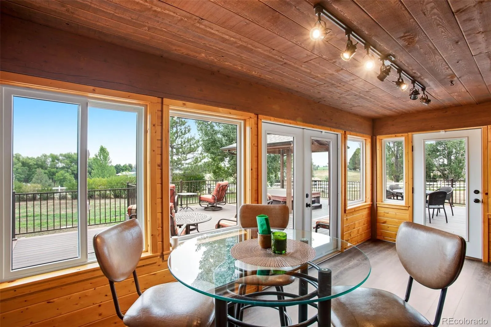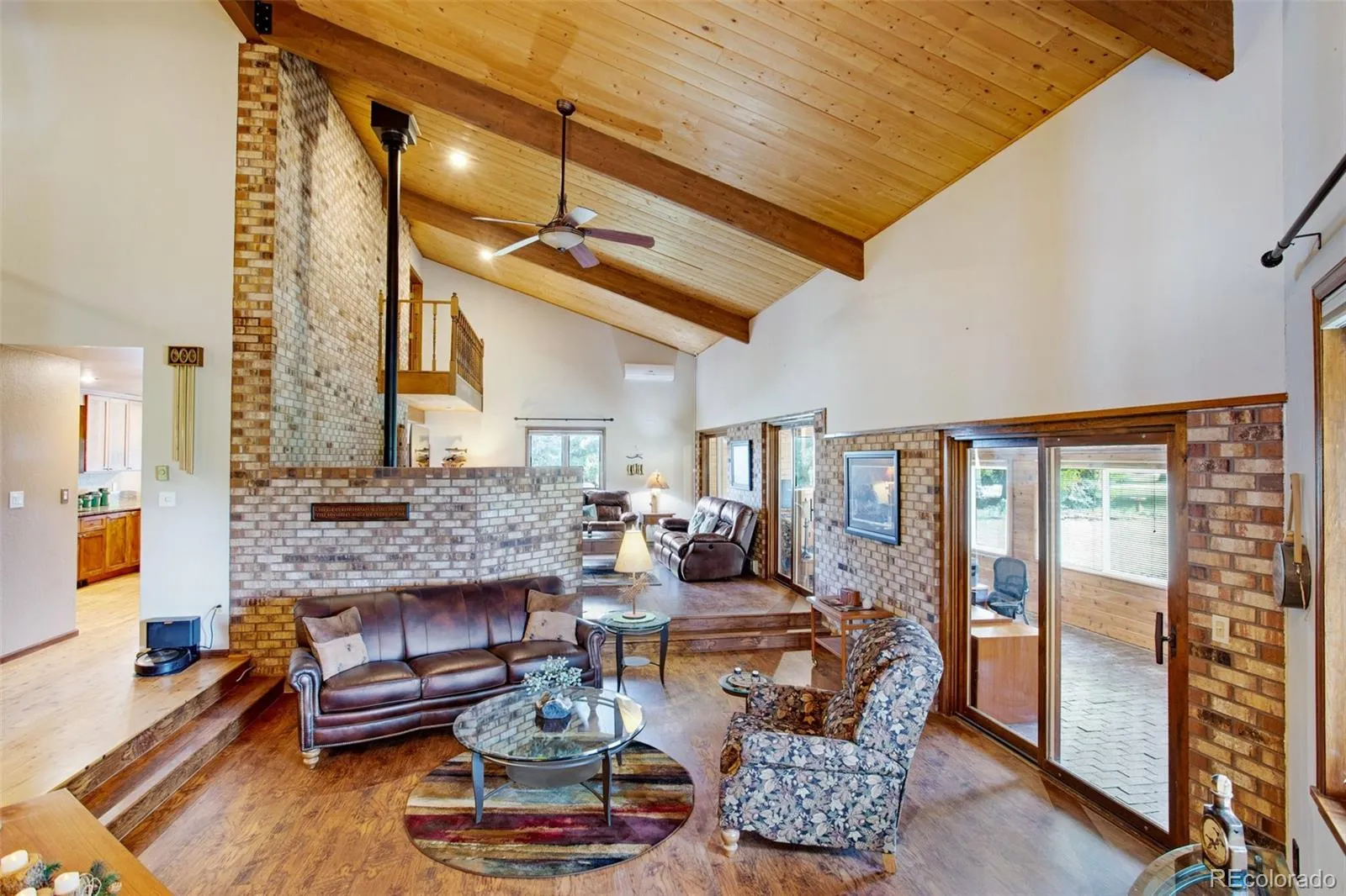 Rare opportunity! Beautiful small acreage in South Loveland perfectly set-up for horses! Situated on 3.3 private acres with mature trees, this 4179sqft 4 bed/3bath home includes a oversized attached garage + additional bay for tool/equipment storage, and a 412sqft detached workshop complete w/ heating and cooling, dust collection system, 220V and 90amp service + carport. Fully fenced pasture w/ 2 horse pens, 2 horse stalls + 422sqft barn, heated auto waterers, power and water. As you enter the home you are greeted with expansive 25′ vaulted ceilings w/ T&G and solid wood beams above, and Australian Cypress floors under your feet. Wonderfully updated kitchen features knotty alder cabinets w/ soft close, granite counter tops, induction cook top, new appliances, and pantry. (2) finished and temperature controlled sunrooms. (2) pellet stoves + (6) mini-split units provide plenty of heat and cooling throughout. Vaulted ceiling in primary bedroom w/ balcony. Finished basement includes additional storage and bedroom. Last, but NOT least, you will love the massive composite deck w/ covered hot tub (included)! Backup propane generator w/ dedicated tank also stays . Fantastic location w/ quick access to I25 from 402 and less than 10min to grocery stores, Home Depot and more!