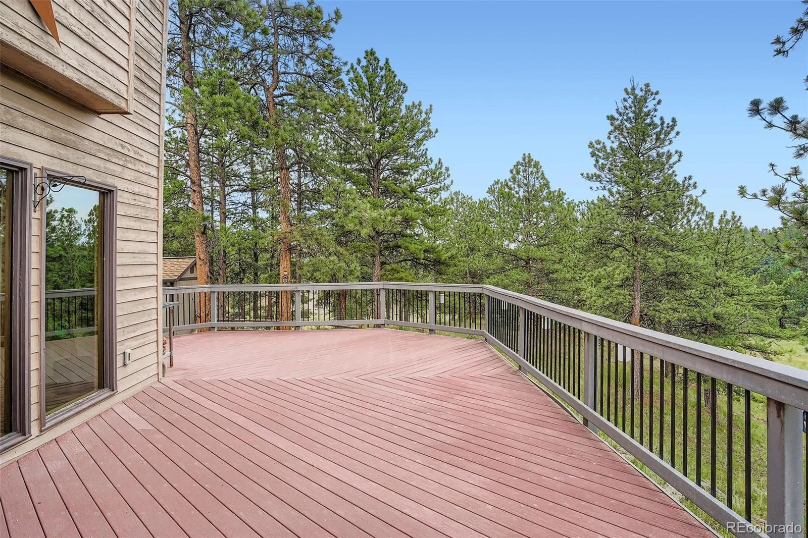 Welcome to 13342 Douglass Ranch Road in Pine, CO, where Colorado mountain living is at its finest! Situated in the exclusive Douglass Ranch subdivision, this exceptional home offers over 5 private, gentle acres with beautiful meadow views. Perfectly located just minutes from Staunton State Park and Highway 285. This property blends convenience and tranquility. Brand new carpet, interior painting, new water heater in August 2025 and $110k spent on all new windows in 2024. Inside, you’ll find a chef’s kitchen with high end appliances, Brazilian hardwood floors, Hallman custom stove shipped in from Italy and abundant natural light throughout. Cozy to any of the fireplaces and enjoy the views from every window. The upper level features a primary suite with a luxurious five piece bath, complete with a charming clawfoot tub and walk in closet. A cozy sun drenched loft, two additional bedrooms, and bath complete this level. The spacious lower level includes a family room and a large non-conforming 4th bedroom/office or workout room that is ideal for guests or extra space. Watch the wildlife migrate by from two large decks complete with a hot tub. Entertain from the large play area with a fire pit that is perfect for picnics, parties, horsehoe’s & cornhole or a quiet evening under the stars. Outside, enjoy a detached workshop built in 2023, a fenced dog run and Satellite GPS invisible fence. Keep your toys and extra cars in the additional oversized two-car garage with attic storage. This property is an entertainer’s dream, perfect for vollyball, a driving range, or even disc frisbee. Come home to a serene retreat full of possibilities. MOTIVATED SELLERS & PRICED UNDER MARKET VALUE!