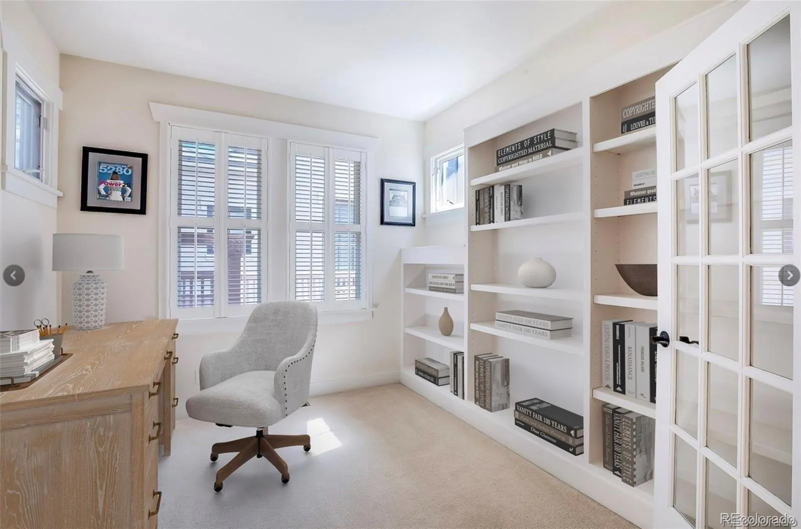 www.11776Perry.com – PRICE IMPROVEMENT – Located directly across from Bradburn Green park in the idyllic Bradburn Village, this Craftsman-style home was previously featured on the cover of 5280 Magazine and includes a carriage house! Don’t miss your chance to own one of the first, and few, truly custom homes in this neighborhood. Recent upgrades include NEW STUCCO FACING W/NEW EXTERIOR PAINT, NEWER ROOF and REFINISHED WOOD FLOORS. The inviting covered front porch with wood beams welcome you into a home filled with natural light, hardwood floors, and beautiful millwork throughout. The spacious open floor plan connects the living room—complete with built-ins and a gas fireplace—to the elegant dining room and updated kitchen. The kitchen features new Quartz countertops, white shaker cabinets, stainless steel appliances, a gas range, and direct access to a private patio and garden area, perfect for entertaining. The main floor office with French doors and built-ins is ideal for a secluded and quiet work space. A stylish powder room, mudroom, and oversized laundry room with utility sink and dog door add convenience on the main floor. Upstairs, a luxurious primary suite includes a walk-in closet, and a newly renovated spa-like bathroom with heated floors, a large walk-in shower, towel warmer, and extra storage. Two additional bedrooms with large closets and a full bath complete the second level. The finished basement offers a large bonus room, a fourth bedroom, a ¾ bathroom with slate flooring and storage room. A carriage house with a private entrance located above the garage is stylishly appointed with floor-to-ceiling bookcases, and features a full bath—ideal for a home office, wellness area, guest suite or nanny’s quarters. Bradburn Village truly offers it all with a neighborhood pool, tennis/basketball court and clubhouse conveniently located to dining and retail along with access to recreation centers, trails and open space.