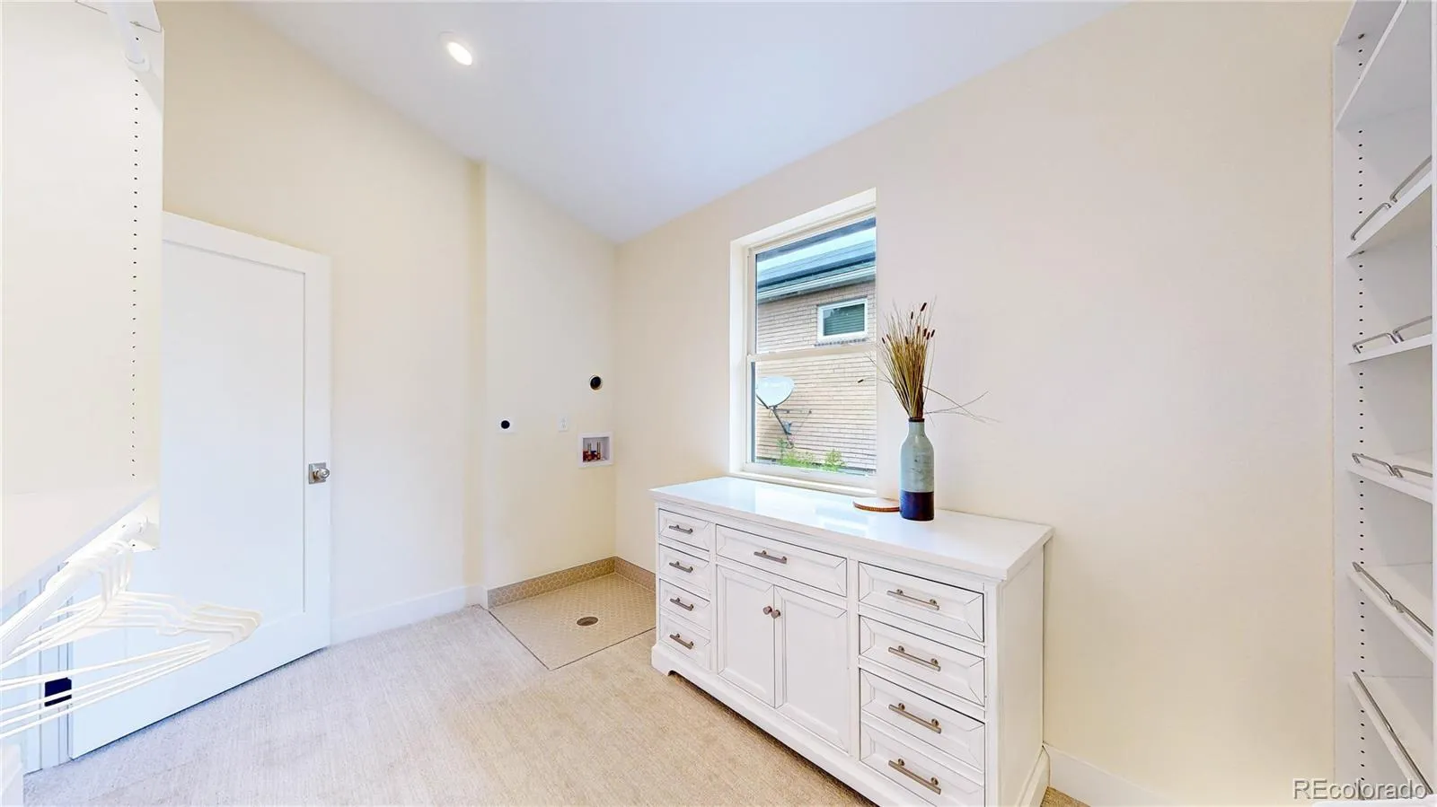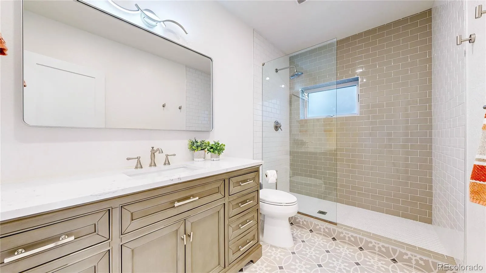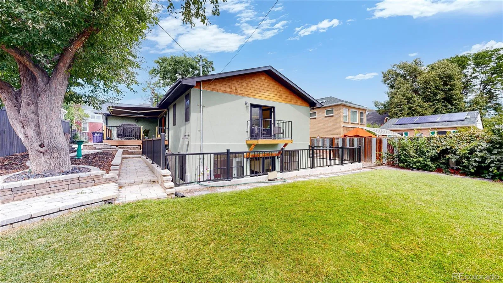The interior square footage will surprise you when you tour this charming brick bungalow nestled in the highly sought-after Mayfair neighborhood of Denver. This beautifully remodeled home blends classic character with modern updates, offering an ideal urban retreat with a MAIN FLOOR PRIMARY SUITE and en-suite washer dryer. Inside, you’ll find stunning vaulted ceilings and hardwood floors throughout with abundant natural light that enhances the warm and inviting atmosphere. The kitchen features stainless steel appliances, quartz countertops, soft close cabinets and gas stove with pot filler perfect for cooking or entertaining guests around the oversized quartz center island. The main level includes the primary suite with juliet balcony, walk in closet, en suite bath and primary suite washer/dryer in closet. Not to worry, the house boosts an additional full sized laundry room. Also on main level another spacious office/bedroom for guests or work from home. The fully finished basement adds additional living space with a large den or game room, WALK OUT basement patio, 2 more bedrooms larger full size laundry and bonus theater room to watch movies. Main level siding doors lead outside to a private backyard oasis with mature landscaping grass area for pets to play and a spacious trex deck covered in a retractable awning. Garage boosts an EV charger and additional features include tankless H20 heater, Solar Panels and dual level A/C and heat. Relax and watch the sunset on your covered front porch. Right around the corner is beautiful Mayfair Park and a strip mall with Italian restaurant, sports bar, coffee shop, Chinese Food, Yoga Studio, Pizza and Liquor Store. Easy commute to Cherry Creek or downtown Denver. This home offers the perfect balance of tranquility and convenience.
