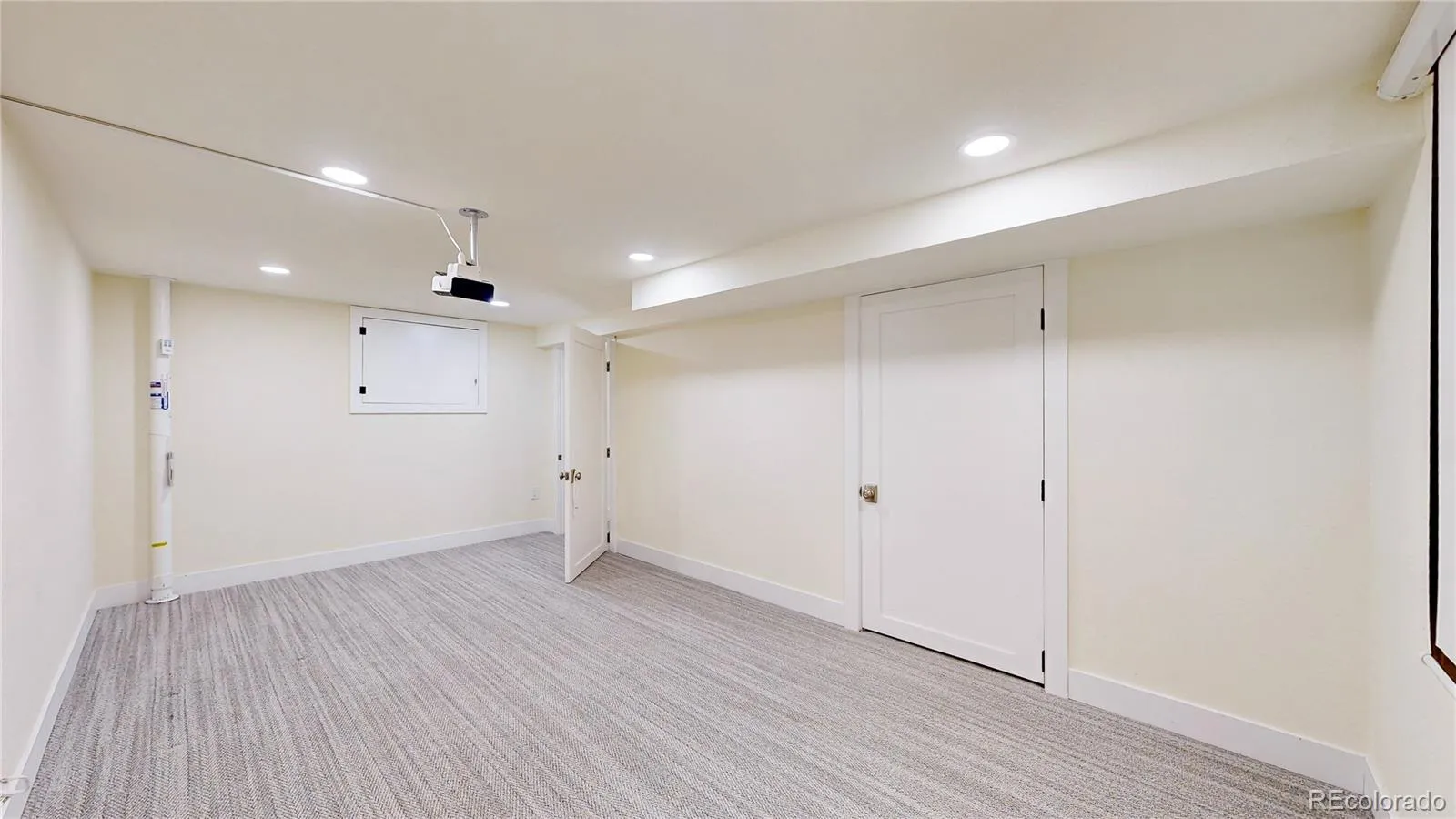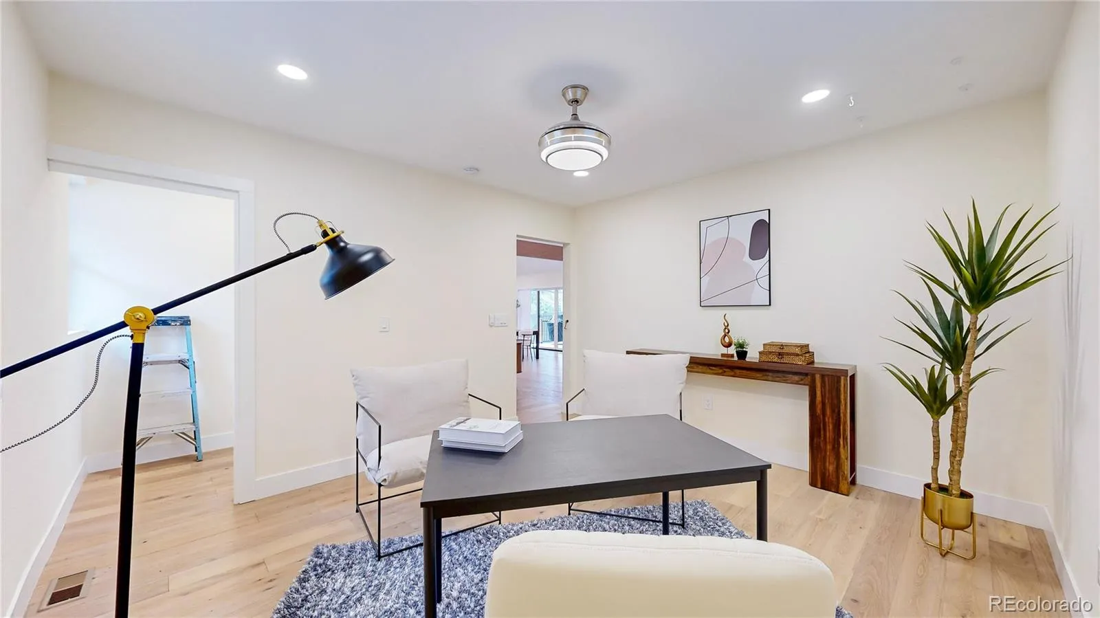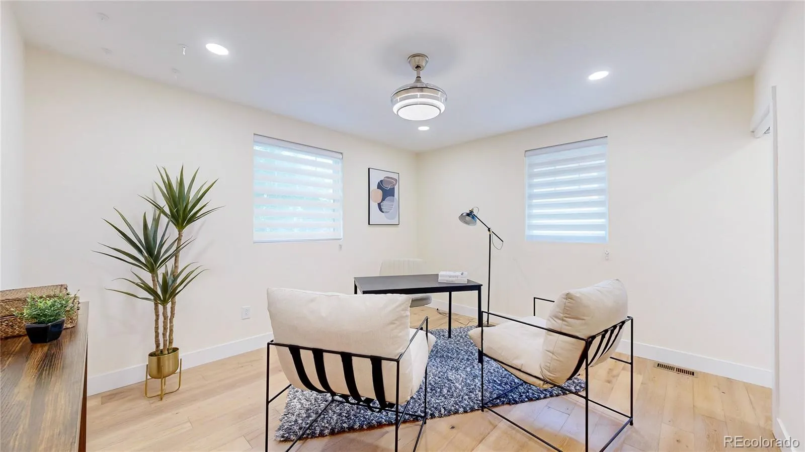 The interior square footage will surprise you when you tour this charming brick bungalow nestled in the highly sought-after Mayfair neighborhood of Denver. This beautifully remodeled home blends classic character with modern updates, offering an ideal urban retreat with a MAIN FLOOR PRIMARY SUITE and en-suite washer dryer. Inside, you’ll find stunning vaulted ceilings and hardwood floors throughout with abundant natural light that enhances the warm and inviting atmosphere. The kitchen features stainless steel appliances, quartz countertops, soft close cabinets and gas stove with pot filler perfect for cooking or entertaining guests around the oversized quartz center island. The main level includes the primary suite with juliet balcony, walk in closet, en suite bath and primary suite washer/dryer in closet. Not to worry, the house boosts an additional full sized laundry room. Also on main level another spacious office/bedroom for guests or work from home. The fully finished basement adds additional living space with a large den or game room, WALK OUT basement patio, 2 more bedrooms larger full size laundry and bonus theater room to watch movies. Main level siding doors lead outside to a private backyard oasis with mature landscaping grass area for pets to play and a spacious trex deck covered in a retractable awning. Garage boosts an EV charger and additional features include tankless H20 heater, Solar Panels and dual level A/C and heat. Relax and watch the sunset on your covered front porch. Right around the corner is beautiful Mayfair Park and a strip mall with Italian restaurant, sports bar, coffee shop, Chinese Food, Yoga Studio, Pizza and Liquor Store. Easy commute to Cherry Creek or downtown Denver. This home offers the perfect balance of tranquility and convenience.