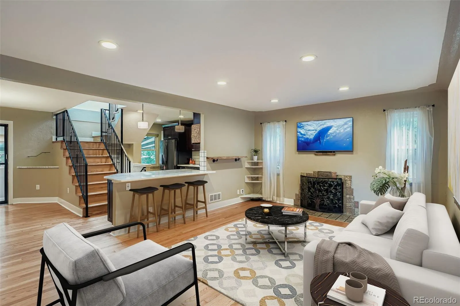 Welcome to your dream home in the heart of Denver’s historic Park Hill neighborhood, where tree-lined streets and a vibrant community await. This stunning 5 bedroom, 4 bathroom Tudor blends timeless charm with modern upgrades, offering the perfect balance of elegance, comfort and style. Nestled within walking distance to the Denver Zoo and Museum of Nature & Science, this home is surrounded by global eateries, City Park’s free summer concerts, and the exciting transformation of the nearby Park Hill Golf Course into one of Denver’s largest public parks, featuring walking trails, dog park, disc golf, athletic courts and playgrounds. Step inside to discover beautifully refinished hardwood floors on the main level, with a cozy living room with wood-burning fireplace adorned with original stone surround. The renovated kitchen has smudge-proof stainless appliances, gas range and sleek quartz countertops. Adjoining dining room and attached sun room has direct access to private backyard. The entire upper level is dedicated to the primary suite, complete with sitting area, built-in bookshelves, abundant storage, a walk-in closet, and gorgeously updated bathroom. The lower level offers an additional family room with a hidden fireplace, if you choose to uncover, plus more bedrooms, bathrooms and laundry. The outdoor space is a true highlight, fully fenced for privacy, surrounded by peach, plum and cherry trees bearing fruit – all perfect for entertaining! Enjoy a stamped concrete patio with built-in outdoor TV, projector screen, speaker system, and heated pond with fish! A wet bar with beverage fridge adds much needed convenience to your outdoor gatherings. 2 separate garages (3 car space total) , one of which fully finished with extensive storage and a covered patio for additional entertaining space. Don’t miss your chance to own this unique, historic home!