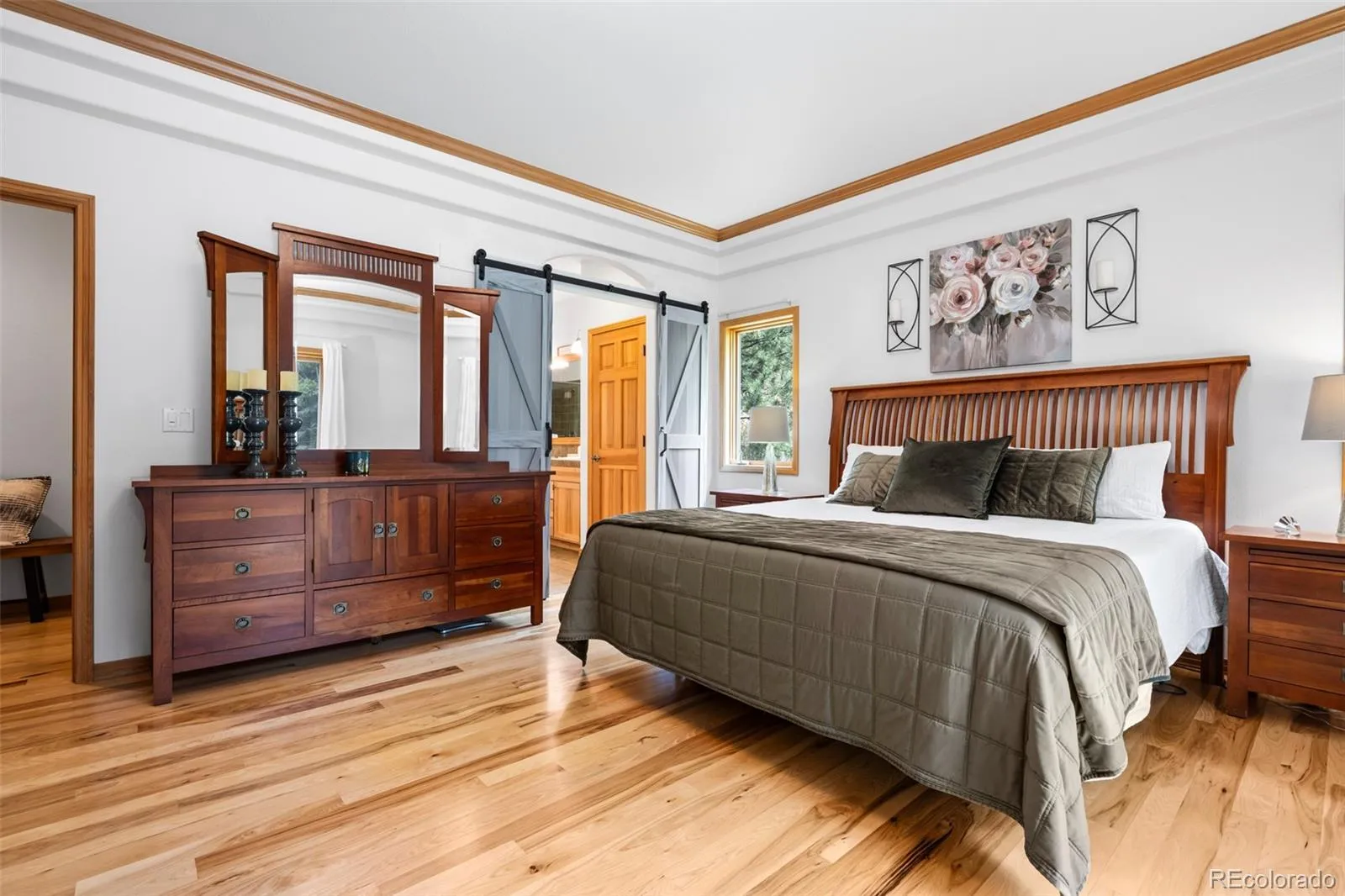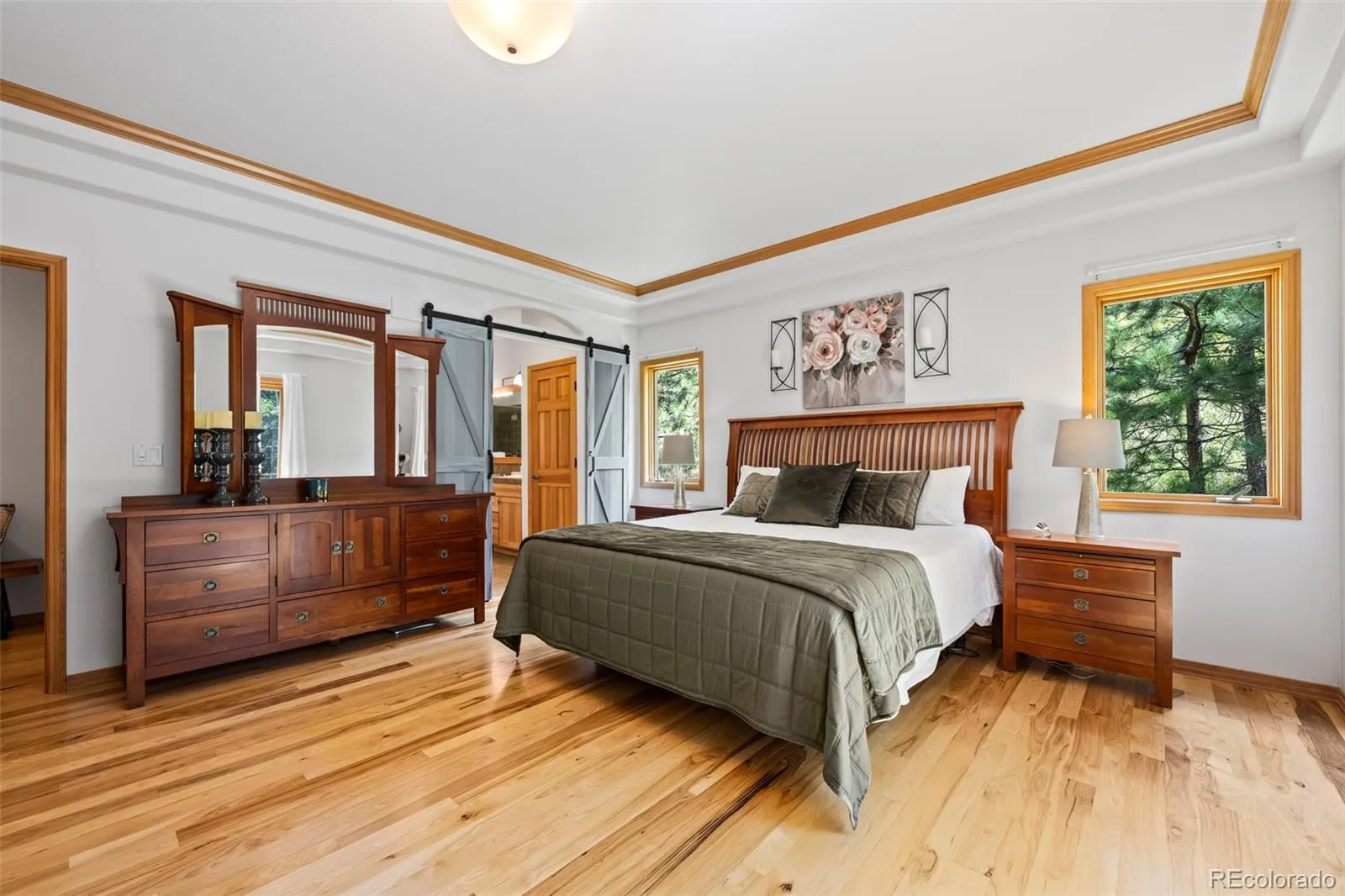 The spacious primary suite is a true retreat, featuring a fireplace, a spa-like 5-piece en suite bath with a large soaking tub, a walk-in shower with dual showerheads, and dual vanities. The oversized walk-in closet connects to the laundry room for ultimate convenience. A mudroom off the 3-car garage (a rarity in Evergreen) keeps daily life organized, while a dedicated office provides the perfect work-from-home space.