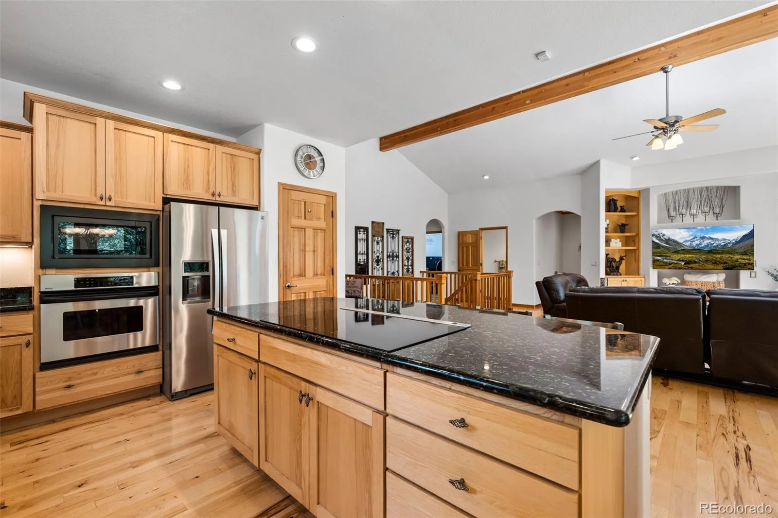 Step inside to discover rich hardwood and slate/tile flooring on the main level, a vaulted ceiling that enhances the sense of space, and expansive windows that bring in natural light and frame the beautiful surroundings. The main floor centers around a spacious great room, where a beautiful stone fireplace creates a warm and inviting focal point. The heart of the home is the gourmet kitchen, complete with slab granite counters, stainless steel appliances, a large island with seating, and a pantry—ideal for both entertaining and everyday living.