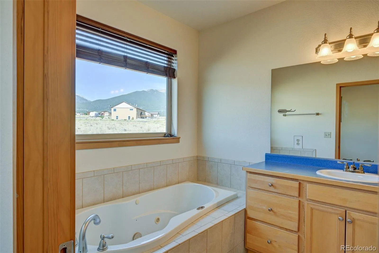 This beautiful and bright custom home enjoys stunning views of Mt. Princeton and the Sawatch Range, has many upgrades and improvements, 2 Solar Systems, and is move-in ready. Entering the home into the large open living area with vaulted ceilings you immediately notice the great views through the huge picture windows. With lots of room for entertaining family and friends, the floor plan flows effortlessly from the living room to the kitchen and dining area. The stone wood burning fireplace is a beautiful focal point and ties in nicely with the kitchen island. New carpet was recently installed throughout the home. The exterior was painted in 2023. Two solar systems serve this property. The 2.7 kw Photovoltaic Solar system provides ample power for this home while the solar thermal system preheats water for both domestic use and the radiant in-floor heating system. The Navien boiler was installed in the fall of 2024. The spacious primary suite enjoys a large bathroom with jetted tub and a well organized walk-in closet. Two bedrooms on the other side of the home are also nicely sized. An upstairs bonus room would make an excellent office, workout studio, craft room, or extra bedroom. The paved driveway hardly needs to be plowed because snow melts so quickly on the blacktop, and the insulated garage has plenty of room for two cars plus toys, tools, and the mountain life necessities. The stamped concrete patio out front and out back add to the custom touches and make for nice places to sit outside and enjoy the buena vistas. A new flagstone walkway was just installed to connect the covered front patio to the driveway.