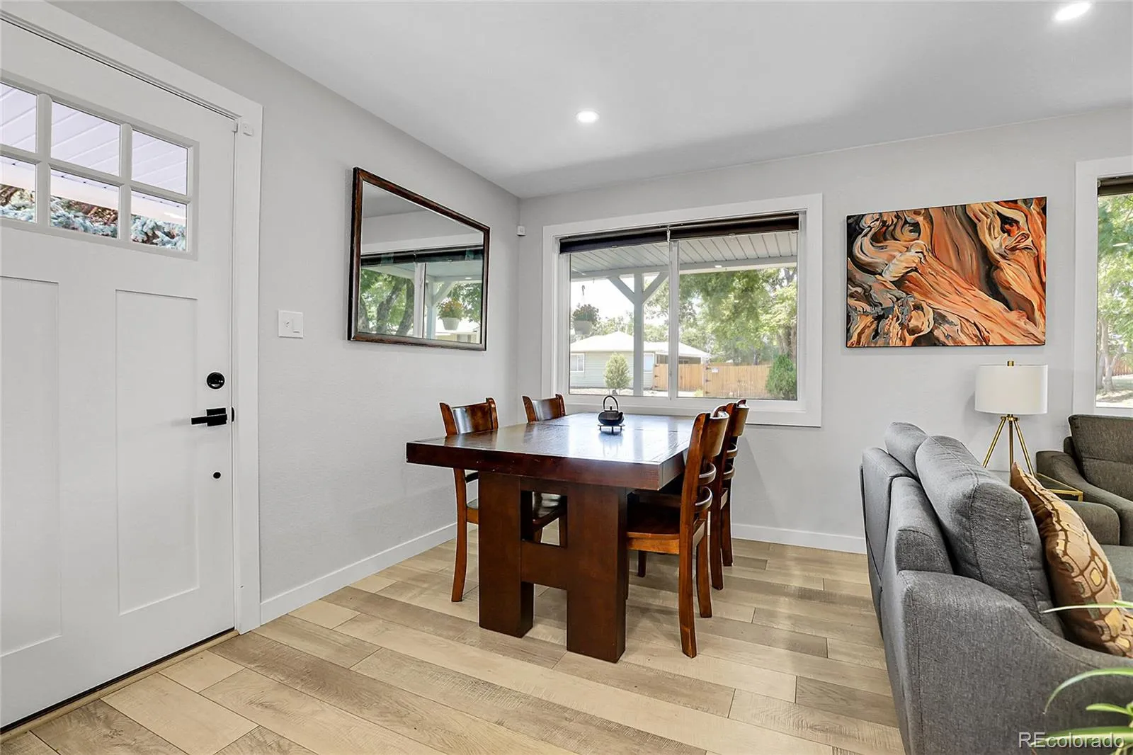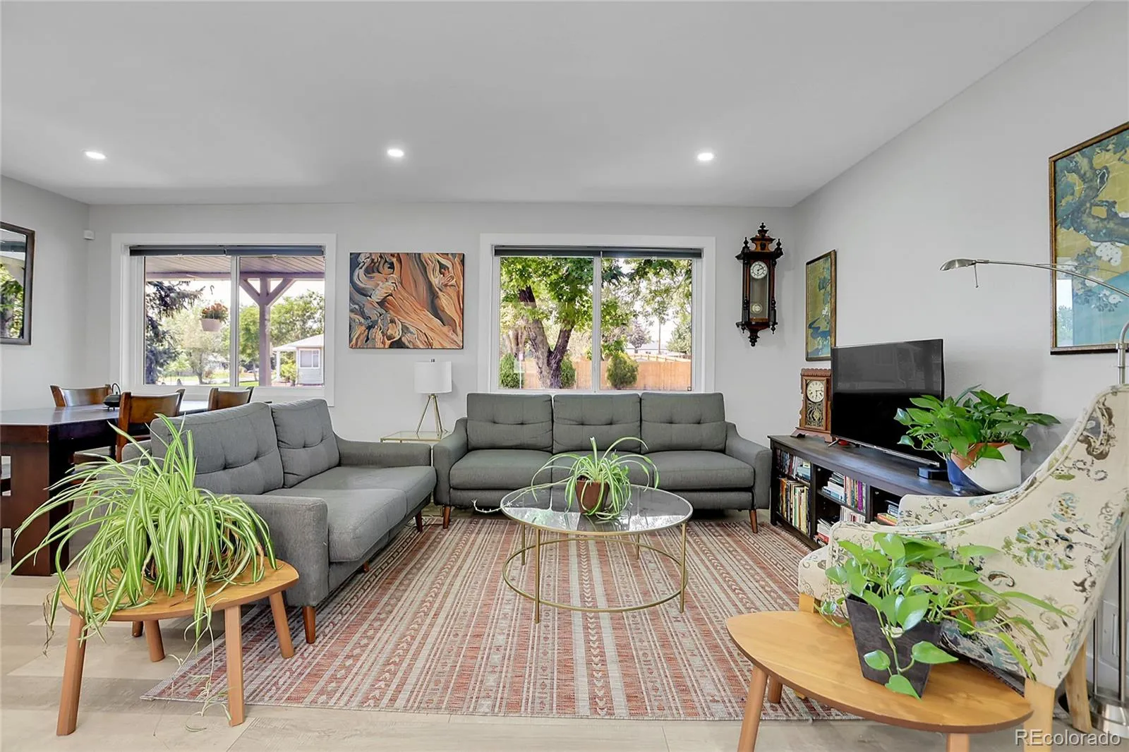 This fully renovated 2022 Athmar Park gem showcases designer finishes and a brilliant use of space, creating a home that feels open, airy, and larger than expected. Sunlight streams through expansive windows and a kitchen skylight, illuminating the beautiful laminate floors and thoughtful layout that seamlessly connects the living, dining, and kitchen areas.