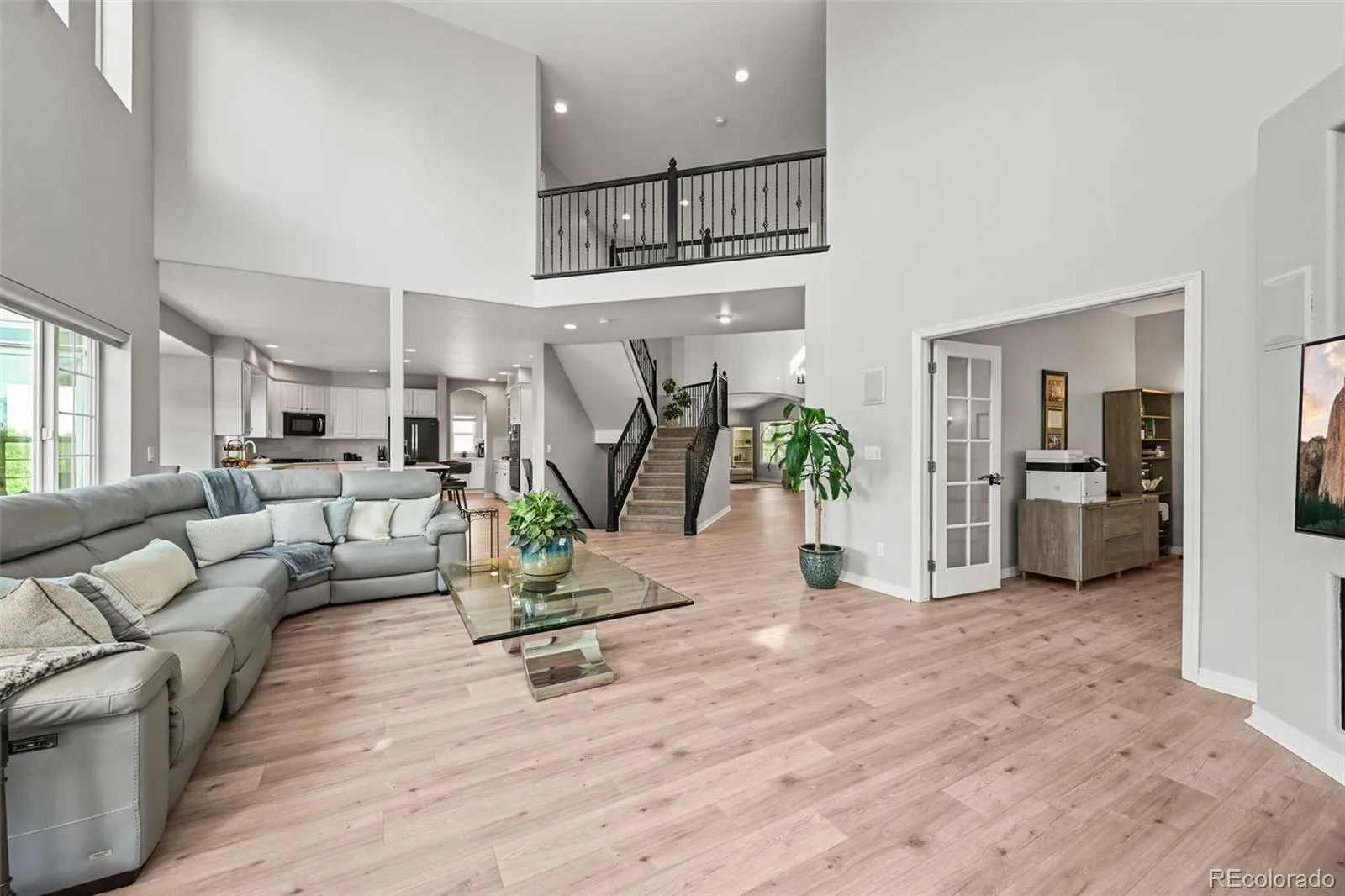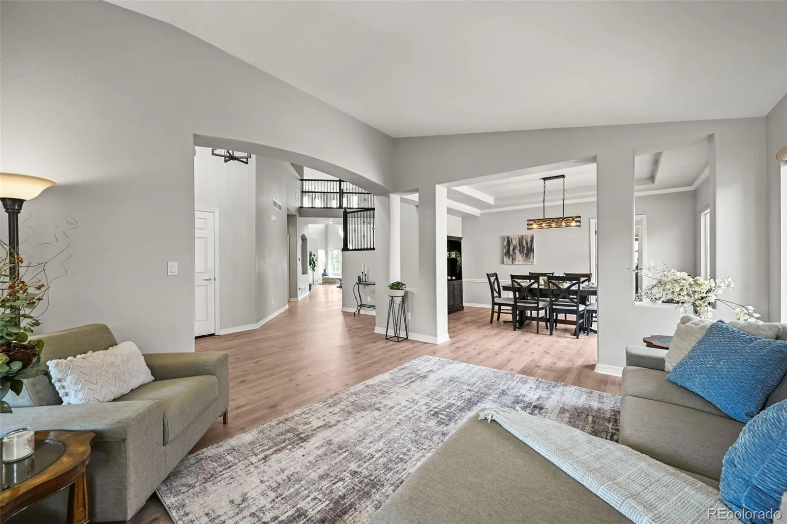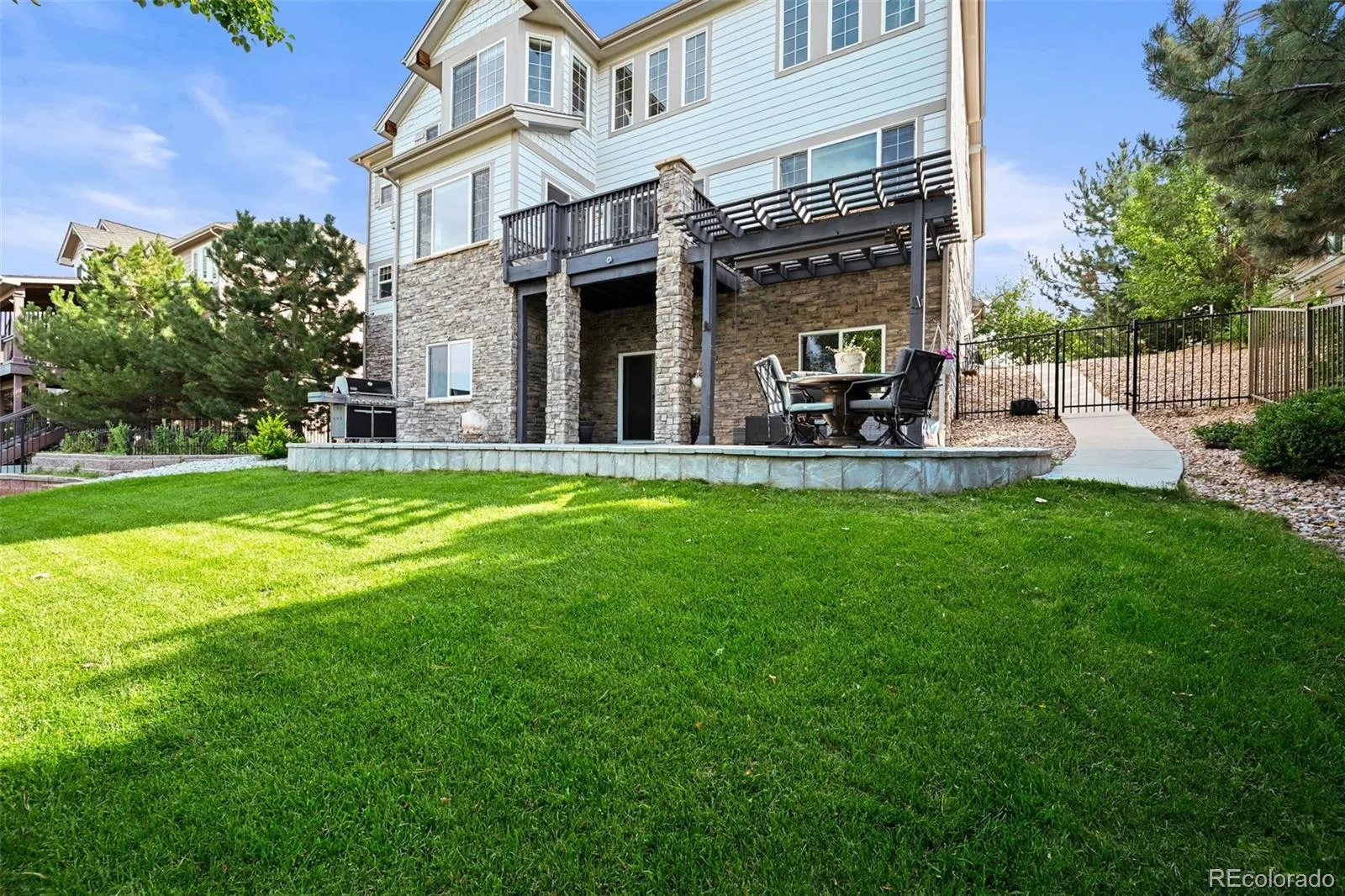 MOTIVATED SELLER OFFERING $15K in CONCESSIONS! This beautifully updated 5BR/5BA home is perfectly positioned backing to tranquil open space. The grand foyer welcomes you while stunning LVP floors are throughout the main level. The living room features a vaulted ceiling and abundant natural light, flowing into an elegant dining room with a tray ceiling. The updated kitchen with custom cabinetry, quartz countertops, a large island, & a cozy breakfast nook is a chef’s dream. Just off the kitchen are a butler’s pantry & walk-in pantry for ample storage. The kitchen opens to the family room with two-story ceilings, large windows framing peaceful views, a cozy fireplace, and built-in surround sound—ideal for entertaining or relaxing. Other highlights include an office with French doors, powder room, laundry with additional cabinetry, and a spacious three-car garage. Upstairs, the primary retreat is a luxurious sanctuary with vaulted ceilings, sitting area, and expansive windows overlooking open space. The spa-like five-piece en suite features a soaking tub, walk-in shower, dual vanities, & a large walk-in closet. Two bedrooms share a Jack n Jill bath, while another bedroom, hall bath, and versatile loft provide extra space for family or guests. The fully finished walk-out basement offers a wet bar, a large family/entertainment room, a guest bedroom, and a ¾ bath, plus plenty of storage. The home’s thoughtful design balances openness with privacy, creating comfortable living areas for every need. Outside, enjoy a private backyard oasis with a large deck overlooking the open space and stone patio below with pergola. The lush grass lawn, mature trees, & sleek metal fencing create a serene private outdoor retreat perfect for relaxing or entertaining. Conveniently located near Southlands Mall, quick access to E470 and DIA, & in the award-winning Cherry Creek School District, this home combines elegance, functionality, & an unbeatable location, a rare find.