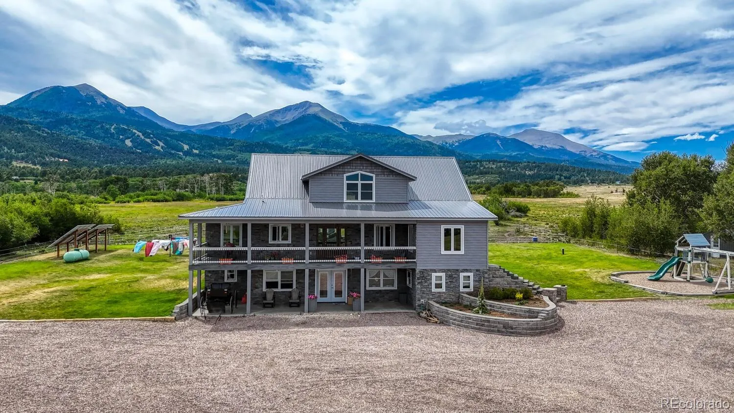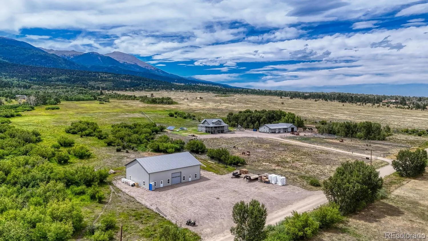 Located off Muddy Road on Westcliffe’s sought-after west side, this one-owner, Amish-built home delivers peace, space, and unmatched views. Spanning 4,960 square feet, the home was thoughtfully designed to capture the full sweep of the Sangre de Cristo Mountains from nearly every room. Middle Taylor Creek meanders through the property, adding to the quiet charm of the lush lawn, play area, and open fields. With 5 bedrooms, 4 baths, an office, and generous living space, there’s room for everyone. The lower level includes a full kitchen and separate entrance, ideal for guests or rental use. The main level impresses with vaulted ceilings, oversized windows, and open living spaces that bring the outdoors in. A spacious mudroom and laundry area boost functionality. The land is fully fenced and cross-fenced with two pastures, a paddock, a horse barn, and a second barn with radiant heat and concrete floors. A cozy bunkhouse with its own septic system offers added flexibility.