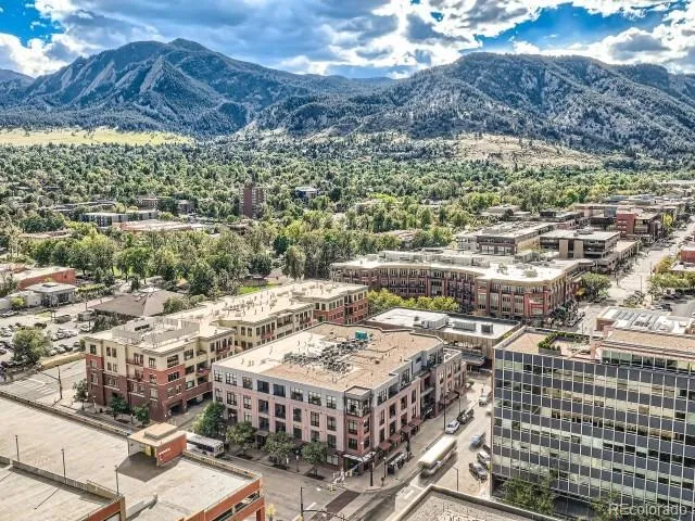 Embrace luxury living in the heart of Boulder! A true industrial-style unit @ One Boulder Plaza with the best floor plan in the building! 1496 sq ft! This will make an excellent unit to enjoy the Sundance Festival coming to Boulder! Experience all that Downtown offers just steps away from popular Pearl Street Mall, fine dining, shopping, trails, farmer’s market and so much more! Glance up the street from your spacious patio to see the mountains or catch an occasional parade. Rich with amenities such as bamboo floors, spacious chef’s kitchen, stainless steel appliances, extra high ceilings, open living/dining areas, custom fireplace made of Italian marble, generous covered deck for entertaining. Enjoy full height wall shelving to display your fine art and possessions, and floor to ceiling windows for plenty of light and fresh air to come in. Pamper yourself in a custom 5-piece bath with steam shower and soaking tub, large primary bedroom & walk-in closet. Extra space for an office area or murphy bed plus ample storage throughout or add a wall to close it off. Secure building monitored 24 hours w/elevator, underground parking and storage. Convenient deeded parking space right off the elevator. Perfect lock & leave home or rental investment with easy access to the airport! LOAN might be assumable! Call for details!