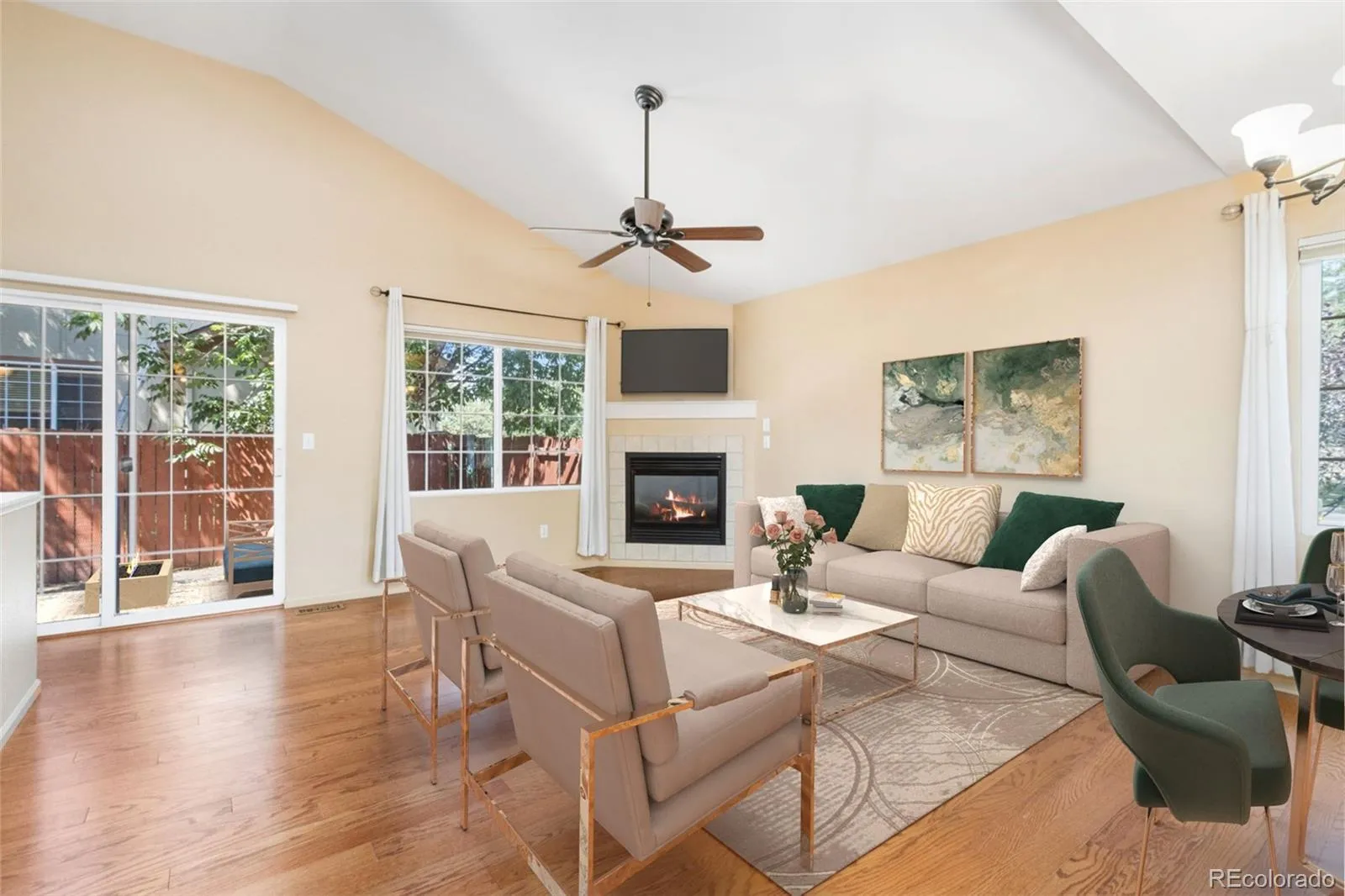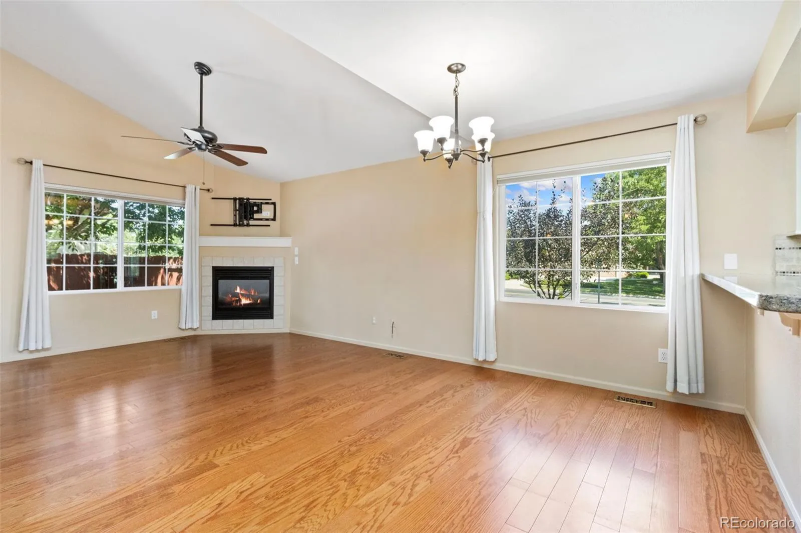 **Now offering a 1-year home warranty.** Welcome to your dream ranch home, beautifully nestled on a generous south-facing lot that bathes in glorious Colorado sunshine. With new exterior paint that enhances its curb appeal, this residence invites you to step inside and discover a world of modern comfort and style. As you enter, you’ll find yourself in an open-concept floorplan that seamlessly connects the living areas and bedrooms across both levels of the home. The modern kitchen, a true chef’s paradise, features updated cabinets, a sleek breakfast bar, and stainless-steel appliances, including a brand-new Bosch dishwasher. The expansive main-level living area is designed for relaxation and gatherings, showcasing vaulted ceilings that create a sense of grandeur. A cozy fireplace serves as the heart of the space, providing warmth and ambiance, while the inviting dining area sets the stage for memorable meals with family and friends. On the main level, the primary retreat offers a private oasis, complete with an en-suite bathroom and an access door to the secluded backyard. Venturing downstairs, you’ll discover a finished basement that expands your living options. Here, a spacious bedroom and full bath provide an ideal setup for family or guests. The oversized living area equipped with speakers makes it perfect for movie or game nights with loved ones. Outside your private backyard retreat awaits summer BBQs and entertaining under the stars. With easy access to I-25, you’ll appreciate the proximity to all that Northern Colorado has to offer – from vibrant local shops and dining to outdoor adventures. This charming ranch home is more than just a place to live; it’s a lifestyle waiting to be embraced!