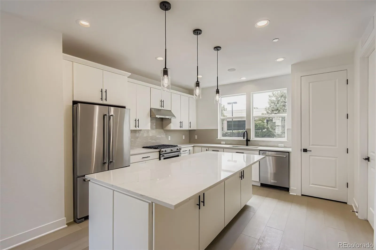 Brand New Toll Brothers Home offering low-maintenance luxury living! This Larimer is complete and ready for move-in offering a versatile first-floor space with direct access to professionally landscaped private yard, along with a covered balcony that extends off the great room. Interior finishes include a neutral backsplash, modern cabinets, KitchenAid appliances and quartz countertops throughout. Located in the top-rated Cherry Creek School District. Take advantage of our special financing with rates up to 3% below national average and schedule your tour today.