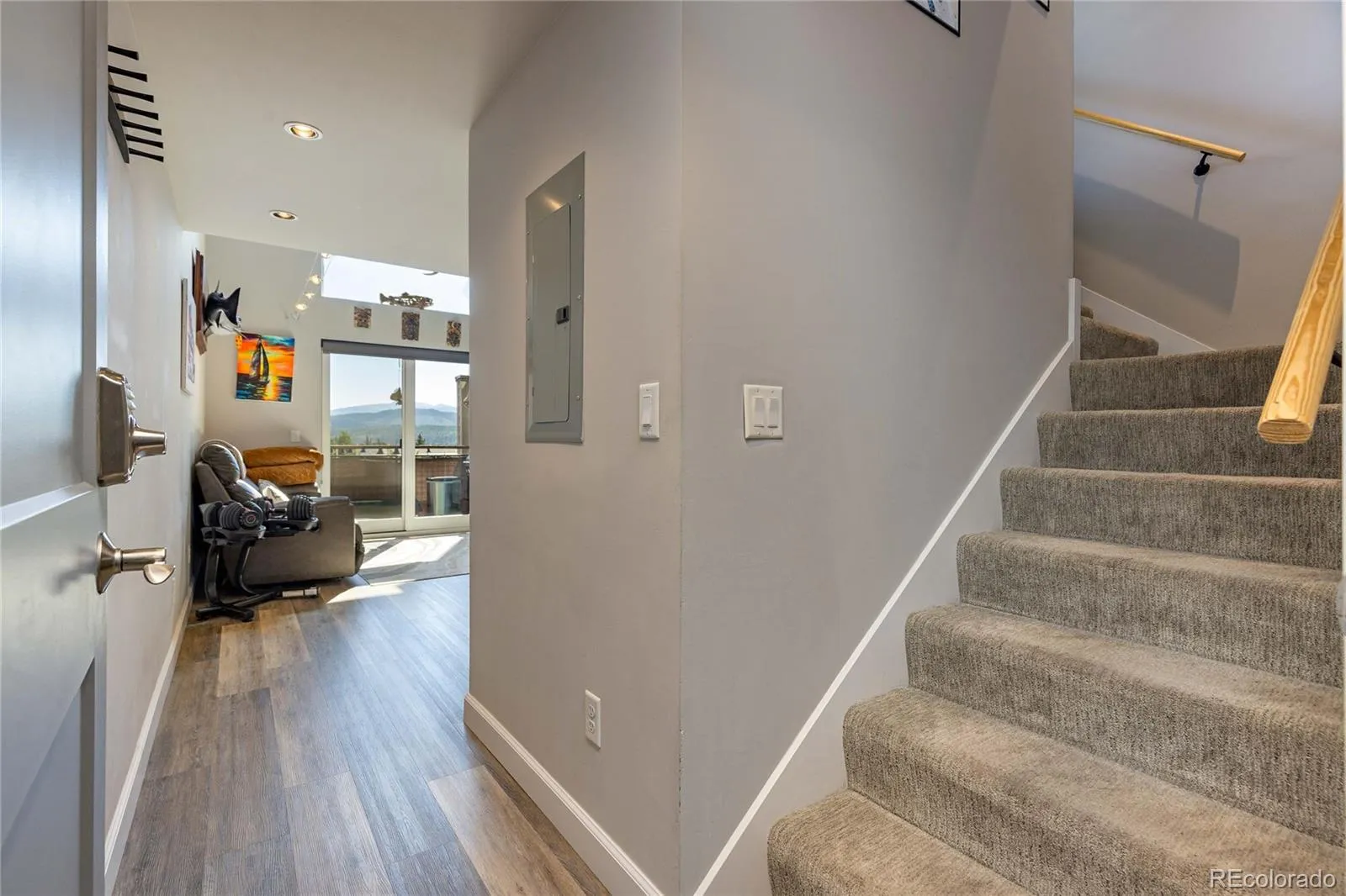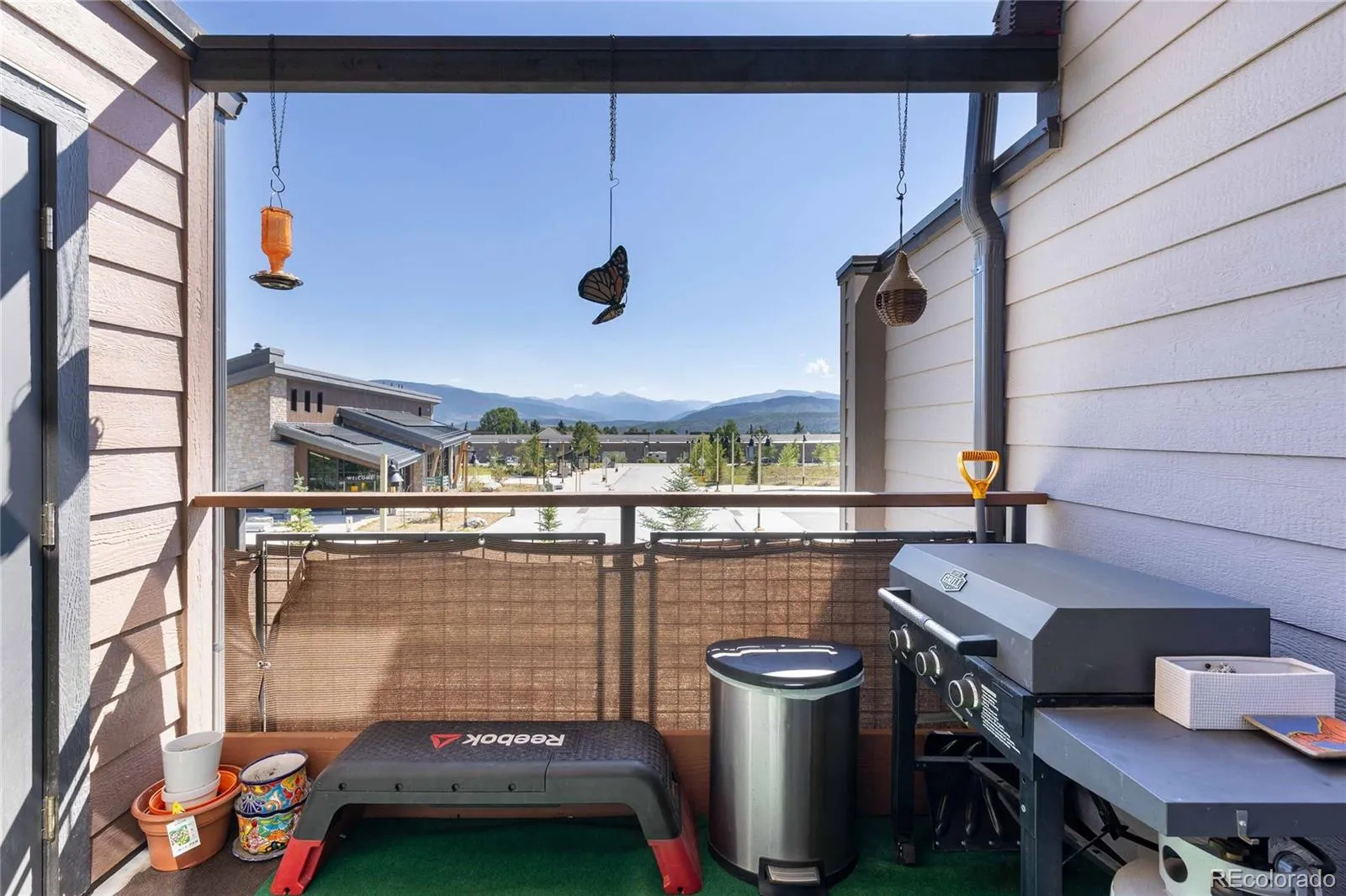 Bright Corner Condo with Sweeping Mountain Views & Prime Frisco Location…Soak in panoramic views of two of Colorado’s finest 14ers, Greys and Torreys, from this sun-filled, vaulted-ceiling corner condo in the heart of Frisco. Just steps from groceries, breweries, and BaseCamp’s vibrant scene, it blends mountain serenity with in-town convenience. The kitchen features sleek modern appliances, a full-size refrigerator, and custom quiet-close cabinetry. Enjoy peaceful nights thanks to Norman blackout blinds, added insulation, and QuietRock soundproofing between units. Beautiful modern flooring enhances the main living space, while the upper-level primary suite offers a walk-in closet and ample room to unwind. THREE exterior storage closets provide generous space for skis, bikes, and all your gear. Step outside for immediate trail access or relax and take in the views—this home is designed for those who want the best of mountain adventure and everyday ease.