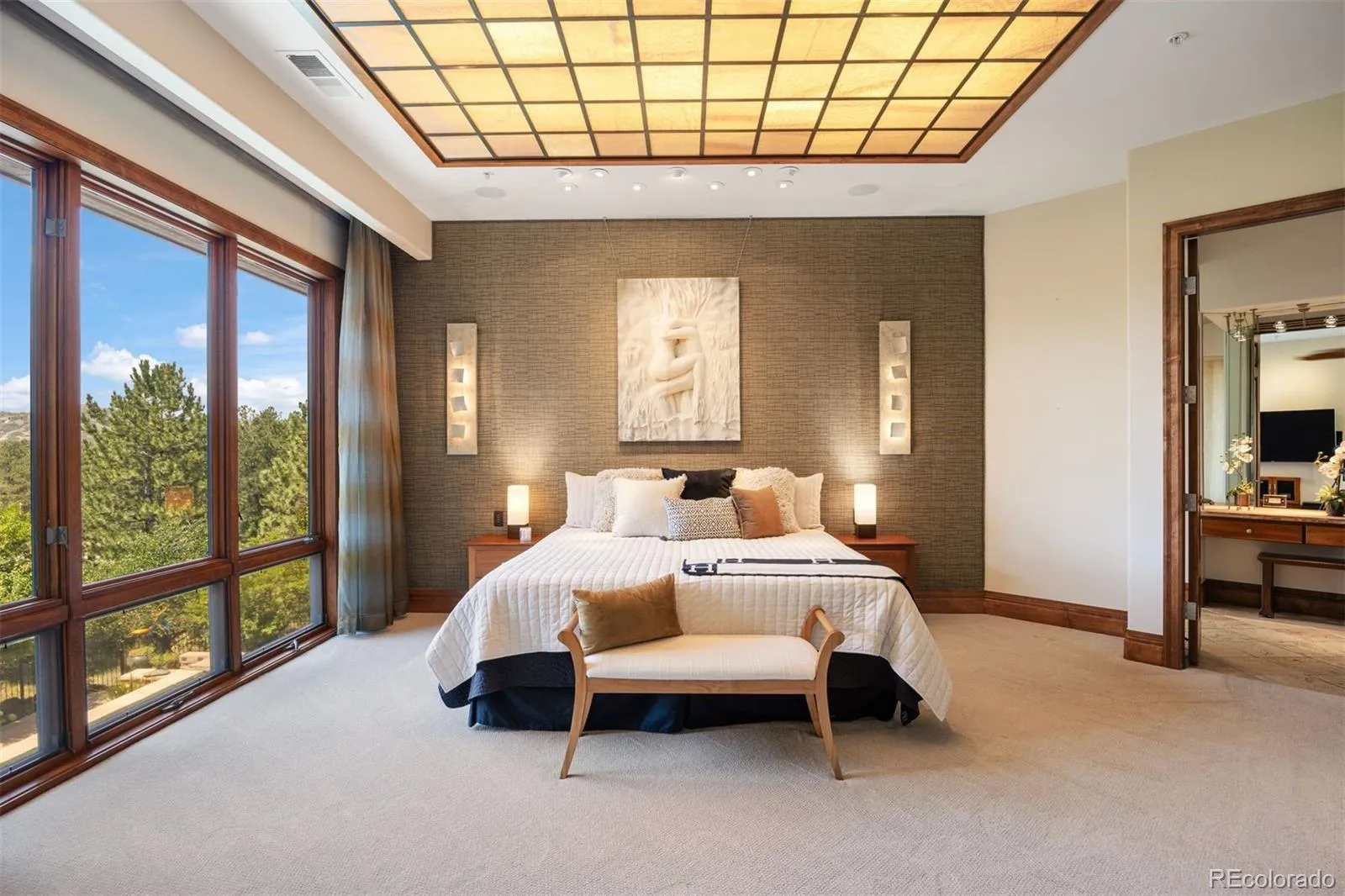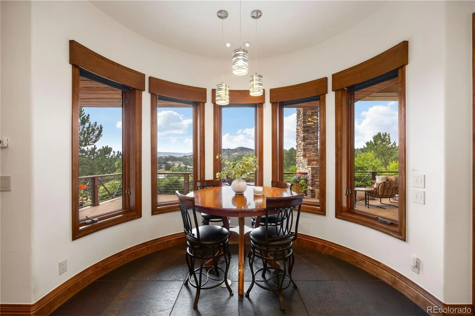 Perched above the 6th fairway of The Country Club at Castle Pines with a view trifecta, 1062 Cypress Way is a masterfully designed estate brought to life with a level of detail that is both refined and enduring. From the moment you enter through the grand foyer, panoramic views of the golf course, shimmering lake, and mountains beyond draw you outside. The great room beckons with vaulted ceilings, a striking glassless double-sided fireplace, rich wood beams, and large windows. Made to entertain, the dining room offers an elegant space, while the gourmet kitchen features top-tier appliances, custom cabinetry, illuminated stone countertops, and a cozy breakfast nook that opens to a striking tongue-in-groove covered deck and adjacent patio. The main level also hosts a beautifully appointed private office, two stylish powder rooms, and a spacious laundry room which sits adjacent to a mud room and 6-car garage. Just down the hall, the primary suite is a sanctuary unto itself. Framed by mountain views and warmed by a fireplace, the suite features a spa-like bathroom with dual vanities, a deep soaking tub, and a walk-in shower. A circular sitting area framed by a dramatic stacked stone feature wall adds versatility to the main level. Descending to the walk-out lower level, the home transforms into a personal wellness and entertainment haven. 3 generously sized bedrooms, each with its own en-suite bathroom, provide comfort and privacy for guests or family. The expansive game and recreation room—complete with a full wet bar—flows into a theater room and a custom wine cellar. The exercise room offers a sauna and opens to the pool deck beyond. A heated saltwater pool anchors the yard, surrounded by lush landscaping, a rare wrought iron fence, fire pit, and a tranquil water feature. Designed for those who seek the extraordinary, this home delivers a seamless fusion of luxury, privacy, and unparalleled beauty. COUNTRY CLUB AT CASTLE PINES GOLF MEMBERSHIP AVAILABLE TO PURCHASE!