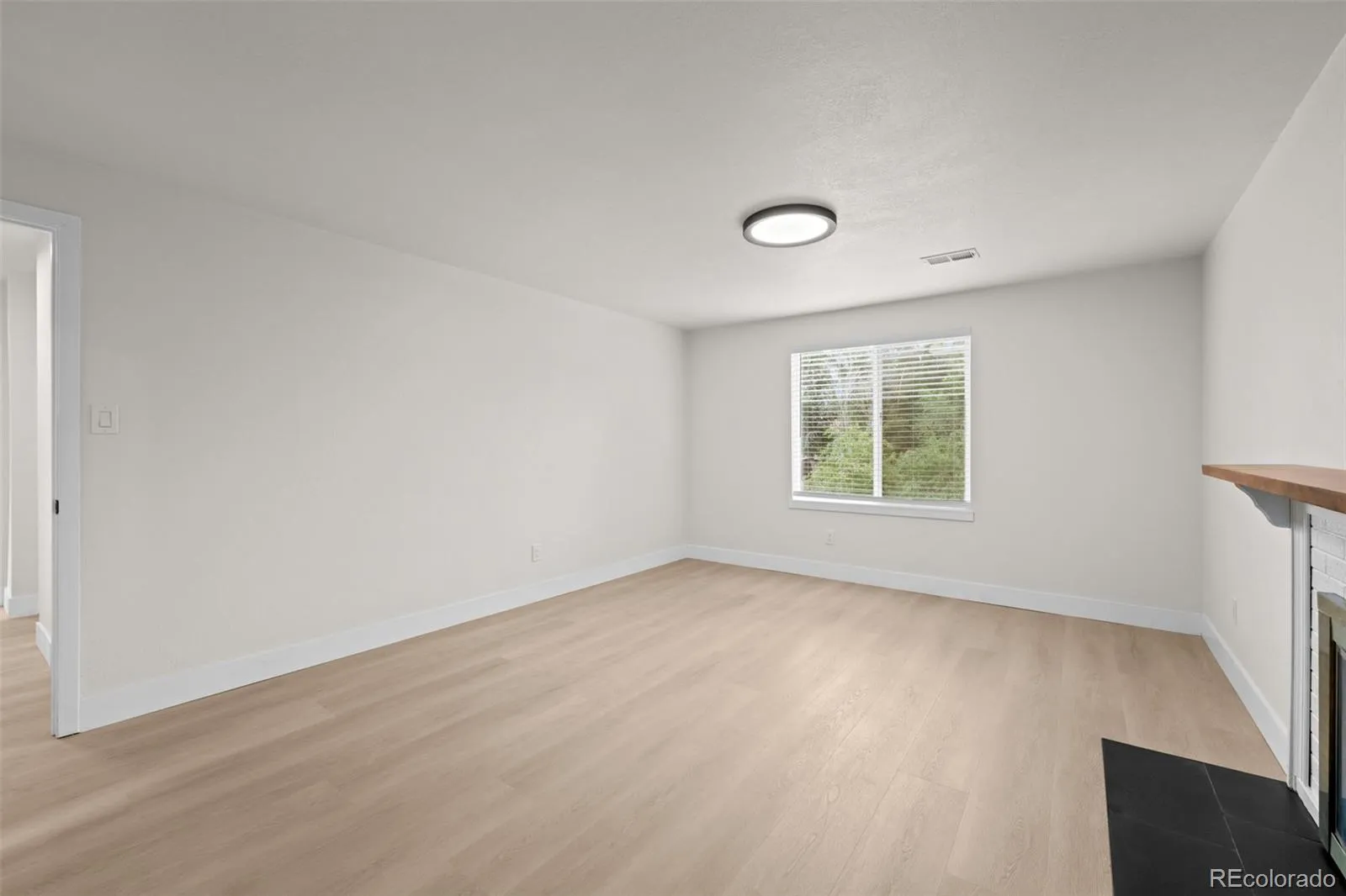 Bamboo flooring, fireplace in large living room. Formal dining space included.