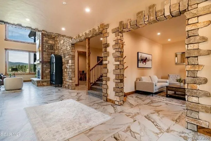 Perched high in the serene beauty of the mountains, this breathtaking 12,000-square-foot estate defines luxury living on a grand scale. Designed with meticulous craftsmanship, the home seamlessly blends rustic mountain charm with refined sophistication. Expansive stonework is showcased throughout the property — from dramatic stone walls and fireplaces to panoramic stone-filled vistas that surround the home — offering a timeless connection to the rugged landscape. Inside, soaring ceilings, exposed timber beams, and oversized windows flood the space with natural light and frame awe-inspiring views in every direction. High-end finishes, custom millwork, and premium materials create an atmosphere of unmatched quality and elegance.