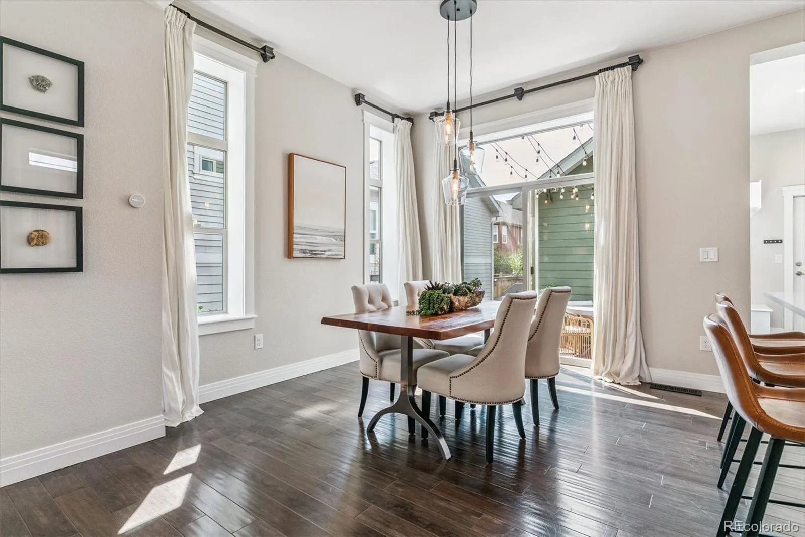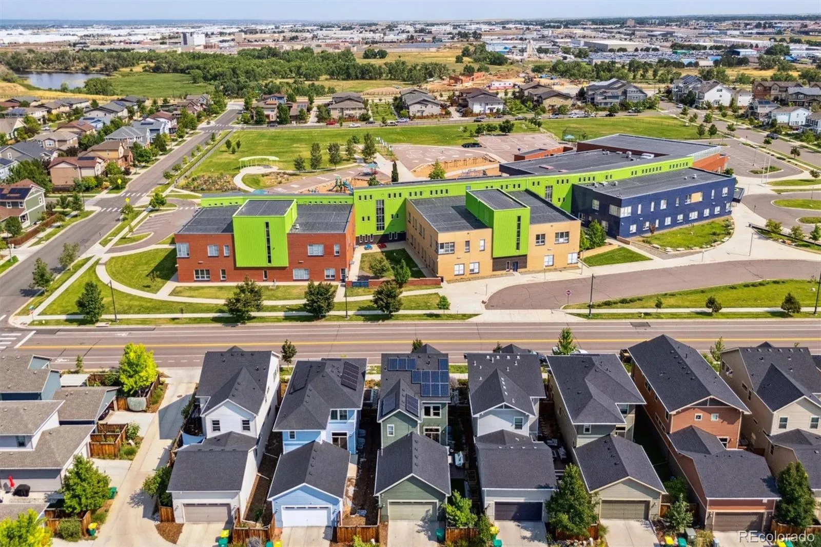 Embrace a lifestyle where sustainability meets sophistication. This meticulously designed green energy Central Park residence offers the perfect blend of eco-conscious living and modern amenities. From the moment you arrive and approach the cozy front porch to coming inside to see the designer upgrades you know you are in a special place. The main level that is bright and open with a fantastic kitchen area offers seamless indoor outdoor living. The expanded private patio and yard with turf grass and raised garden beds provides an out door oasis. Upstairs this home features a spacious primary suite with walk-in closet and gorgeous bathroom plus 2 more bedrooms and additional bathroom feature custom touches like built-in shelving and an upstairs laundry room to make your everyday life as convenient as possible. The fully finished basement adds additional living options, with a versatile family room, an additional bedroom with murphy bed, plus built-in storage or dry bar area, a convenient storage area or play room under the stairs and a full bathroom. Achieving LEED certification, this home boasts solar power integration, ENERGY STAR appliances, and advanced insulation, ensuring reduced utility costs and a minimal carbon footprint. In addition to the efficiencies this home is a healthy home with active radon mitigation system and whole house air purifier. Located across from Isabella Bird Community School which offers a gifted and talented program and situated in the vibrant community near the Stanley Marketplace, Eastbridge Town Center’s shops and restaurants, Bluff Lake Nature Center and Central Park. Plus this home offers easy access to Anschutz Medical Center, Children’s Hospital and so much more including I-70, I-225, and Denver International Airport (DIA). Commuting and exploring in Central Park couldn’t be more convenient.