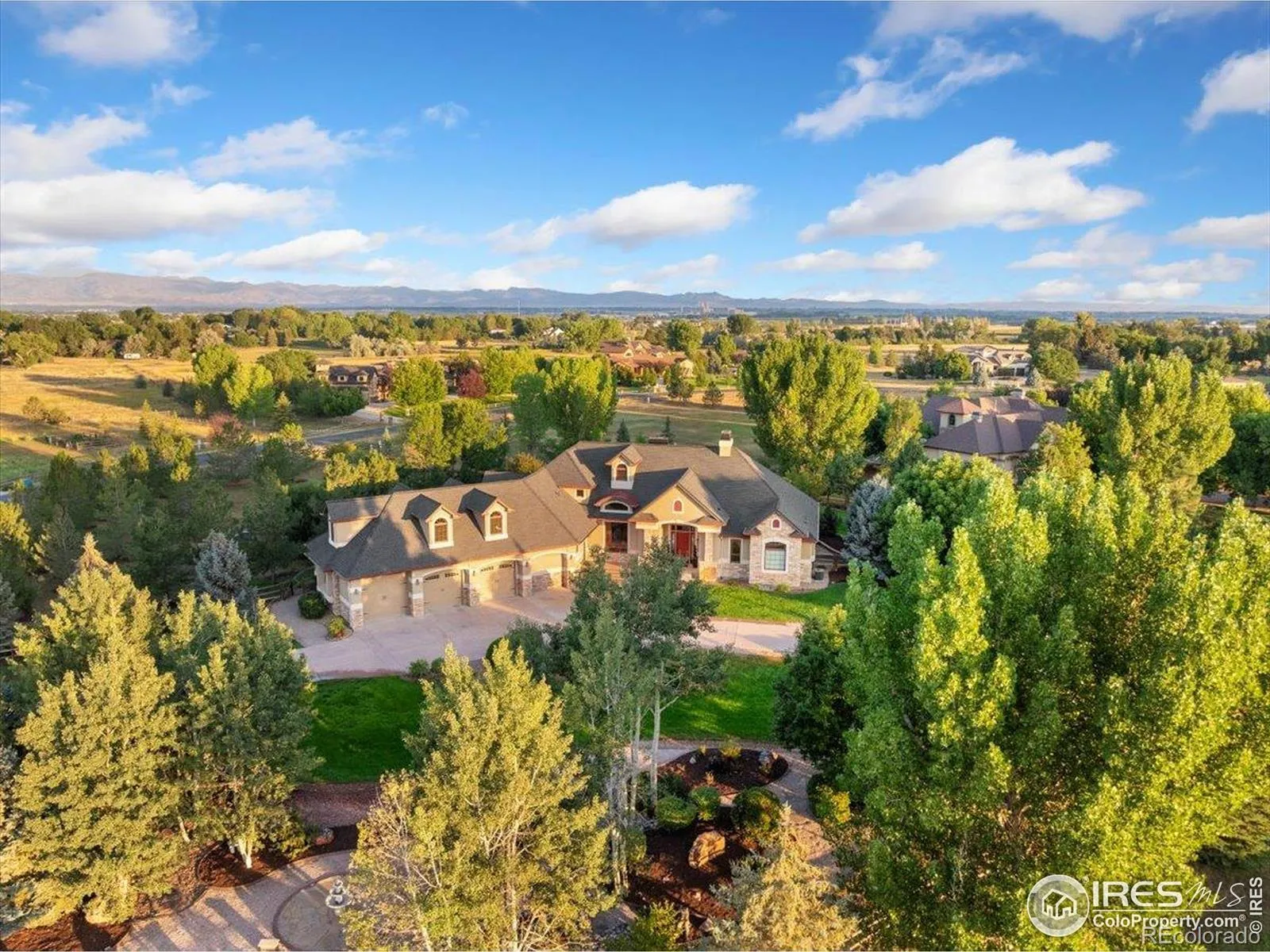 Luxury meets lifestyle in this exceptional Country Estate, offering an ideal blend of views, seclusion, connection to open space & nature only 10 minutes from Old Town Ft Collins. Seamless indoor-outdoor living awaits with more than 2600 sqft of thoughtfully designed covered terraces & sunny patios, creating an effortless extension of your home to the outdoors. Step inside to discover soaring vaulted ceilings, 4 fireplaces, newly finished real wood floors, and 8-ft solid doors made from premium materials for durability and style. The refined gourmet kitchen, with custom two-story cabinetry, a large walk-in pantry, sleek quartz counters, stainless appliances, and designer backsplash, is perfect for intimate meals or elegant gatherings. From every room on the main floor enjoy access to nature, lovely mountain vistas and unforgettable sunsets. The spacious primary suite is a true retreat featuring a stone fireplace, his and her closets, & access to a covered terrace with mountain views. The newly remodeled spa-like ensuite bath features an elegant vessel tub, expansive walk-in shower, custom cabs, and ledge stone accents. The lower walkout level features a private guest suite, spacious rec room with seamless access to the expansive patio, wet bar, state of the art theater room, and a private wine cellar. Additionally, there are two versatile rooms ideal for office, hobby or wellness room. The prof. landscaped yard is fenced, featuring fruit trees, perennials, butterfly garden, Colorado native plants, trees, and a serene waterfall creating your own peaceful park-like oasis. Additional amenities include 1275 sqft garage w RV bay, 3 HVAC systems for ultimate comfort, Class IV roof (2022), over 1000 square feet of beautifully finished bonus space with private bath and its own HVAC is perfect for visitors, in-laws, multi gen, or au pair. This estate is more than a home, it’s a retreat, crafted for those who seek Colorado’s beauty, privacy, and luxury at the highest level.