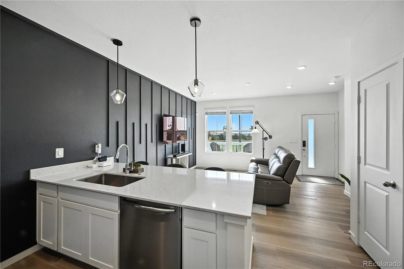 You’ll find gorgeous upgrades throughout—slab quartz countertops, luxury vinyl plank flooring, stainless steel appliances, and window coverings. The washer and dryer are already included, and the living room shines with a custom board-and-batten accent wall.
