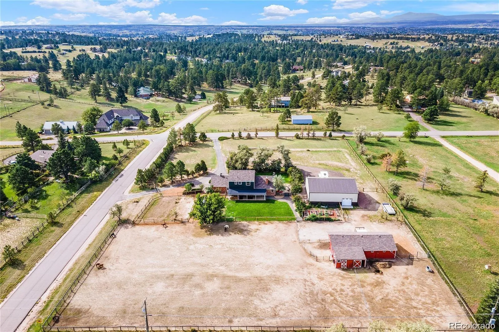 MASSIVE $230K PRICE DROP! Pack your boxes and your toys—8777 E. Summit Road in Ponderosa Hills is your “have it all” lifestyle upgrade. Set on 2.5 acres of gated, fully fenced, ER-zoned freedom with paved road access, this 3,480 sq. ft. charmer blends modern updates with timeless farmhouse character… and then takes it next level with a M-A-S-S-I-V-E 1,920 sq. ft. heated GARAGE MAHAL. This isn’t just a garage—it’s a hobbyist’s dream headquarters. We’re talking 14-ft ceilings, drive-thru access with double doors, 220V electricity, and a 50-amp RV hookup—enough space for your motorhome, toys, tools, and then some to live their best life! 🙂 Horse lover? You’re covered. The updated 5-stall barn has water, electricity, a tack room, and an attached 1-car garage, ready for your four-legged crew. Step into the sun-soaked passive solar sunroom—keeping things cool in summer, cozy in winter—and into a main level with hardwood floors, an updated kitchen with sleek stainless steel appliances, private office, generous dining, living room, laundry/mudroom and updated powder bath. Upstairs, you’ll find the Primary Suite with its newly updated en-suite bath, plus two additional bedrooms and a full bathroom. The basement is built for fun—game room, huge family space, and a non-conforming 4th bedroom. This charming home comes pre-loaded with peace of mind: A newer roof (under 10 yrs old), newer well pump/tank, brand new septic, rebuilt sprinklers, updated landscaping, barn & home were repainted in 2022, newer water heater, A/C, radon system, and NO water bill thanks to your private well. You will love the low taxes & no HOA, surrounded by being centrally located to dining, shopping, downtown, DIA and so much more! Powder chaser? You’re 2 hours from 8 world-class ski resorts. 8777 E. Summit Road offers BIG acreage, BIG garage and a BIG life! Step inside and start living it!