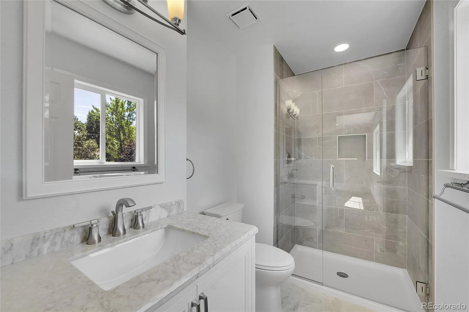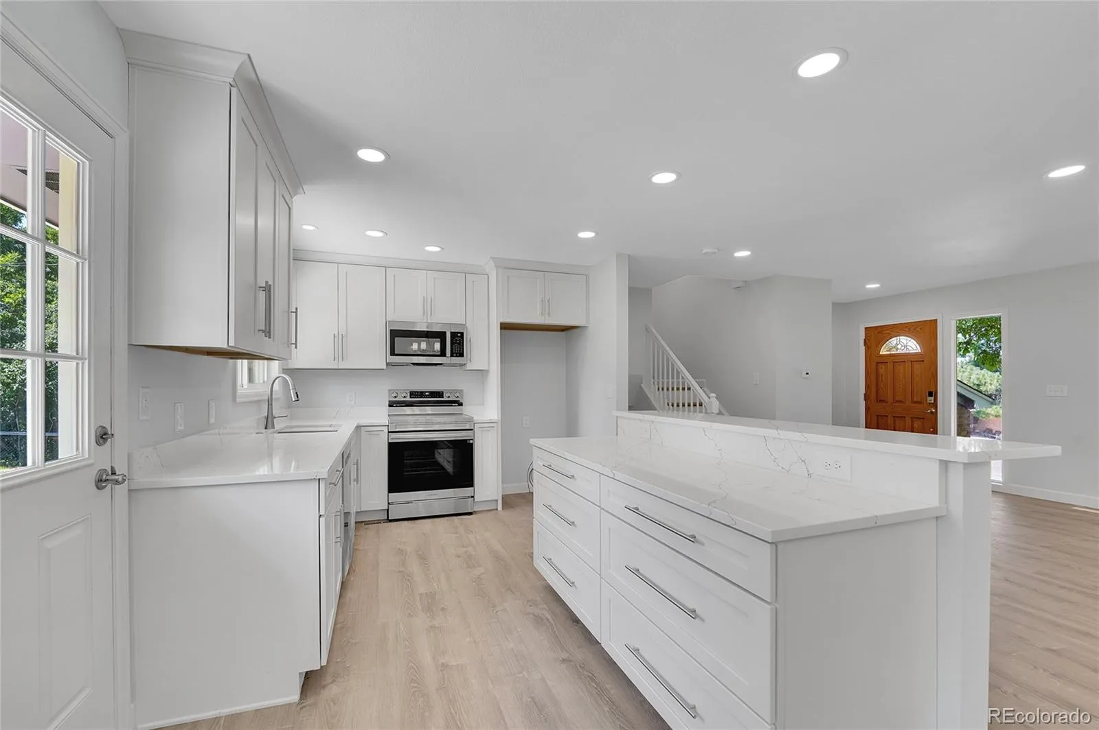 Professional quality craftsmanship and design. Exterior Features include: Automatic photocell security and accent lighting, Cat 5 wired security cameras, Garage Door Opener keypad, newer Garage Door Opener with 2 transmitters, fully insulated and drywalled garage is wired for EV (240v), newer freeze free spigots, fully fenced good sized flat back yard, full yard sprinkler system with smart wiFi controller and more. Interior Features include: Totally open main floor with new kitchen cabinets and appliances, polished Avenza quartz kitchen countertops, quality Lifeproof waterproof vinyl plank flooring (Sterling Oak), substantially updated electrical system with newer 200 amp main breaker electrical panel box, LED color changing lighting throughout, LED vanity lighting in the upper level bathrooms and the dining room chandelier were created by Progress Lighting, new 2025 HW tank, significant updated and upgraded plumbing with ball valves at all sinks, toilets, dishwasher, ice maker, line, washing machine, and sprinkler system shut off points, newer air conditioning system, easy Kwikset smart keypad with Z-Wave Tech.(front door) and security locks throughout (re-key locks yourself), new marble bathroom vanity tops, fabulous new shower and bathtub, toilets, sinks, hardware, beautiful porcelain floor and wall tiles (spares available) mirrors and exhaust fans, new shower pan with new frameless, heavy glass 80″ tall shower door, new semi-frameless glass bathtub door (both glass doors have easy clean protective coating), new ceiling fan in master suite, Artika LED lighting in the lower level bath.
