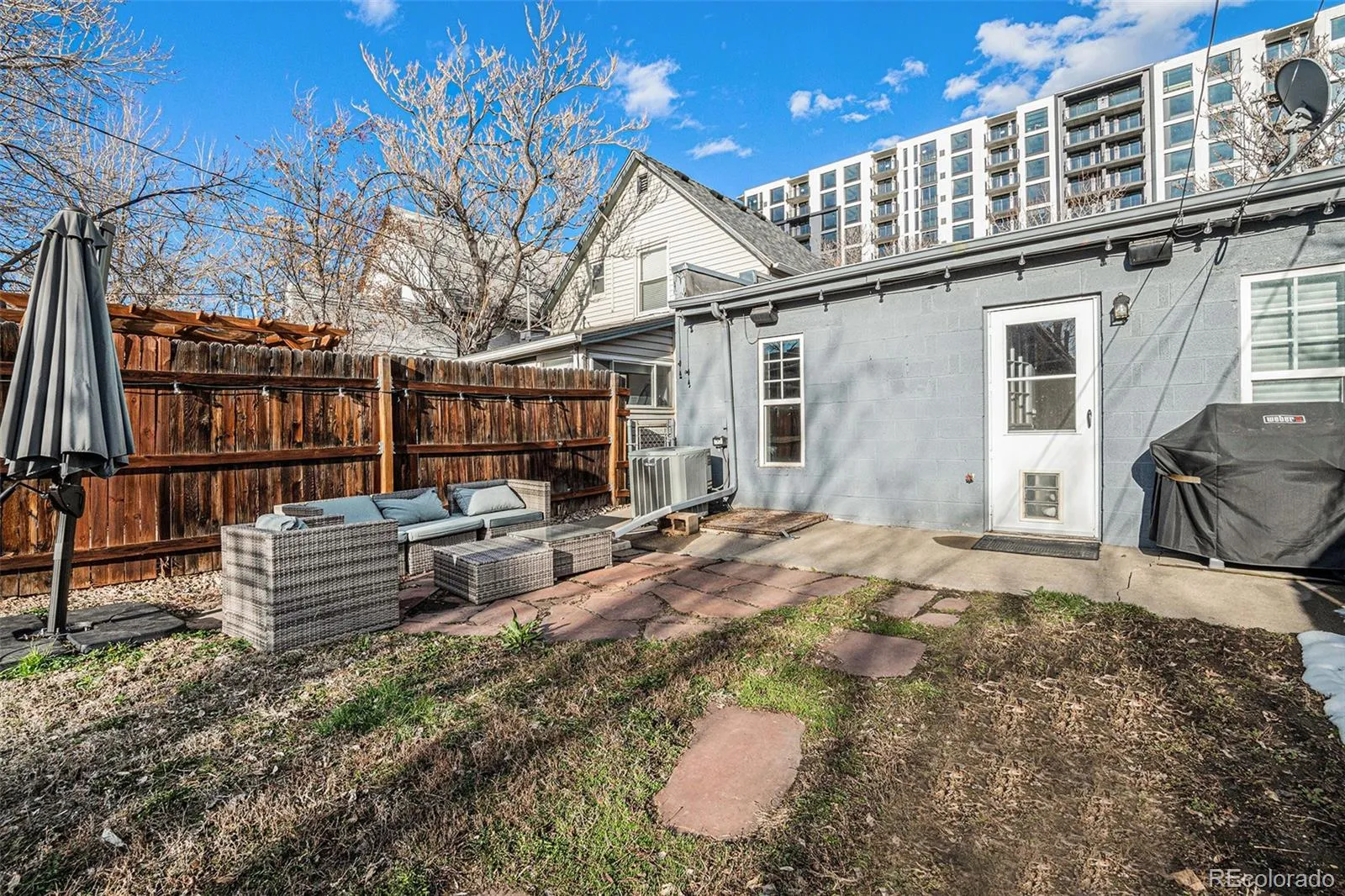 Experience the allure of this charming updated and delightful residence nestled in the highly desirable Jefferson Park enclave of Denver! Step through the inviting facade into the main living area, graced with exposed brick accents and exquisite hardwood flooring. Seamlessly integrated, the living room and dining area offer a perfect setting for entertaining and day-to-day living alike. The kitchen has been luxuriously upgraded with top-of-the-line Jenn-Air appliances and sophisticated dark cabinetry. The primary bedroom boasts its own charming touch of exposed brick, while a second bedroom and full bathroom offer both comfort and style, featuring built-in storage solutions. A convenient laundry nook and additional storage space at the rear of the home ensure practicality for everyday living. Outside, the expansive backyard, complete with a patio and storage shed, awaits outdoor enjoyment, while off-street parking spaces just beyond the back gate provide sought-after convenience. Revel in the unbeatable location, with a plethora of Denver hotspots such as Sexy Pizza Jeff Park, Zuni Street Brewing, Briar Commons, Jefferson Park and more are within walking distance. Embrace effortless access to the vibrant Highlands district, LoHi, Empower Field, and downtown Denver, all just minutes away! NEW ROOF and insulation over 27k in upgrades to roof in 2024.